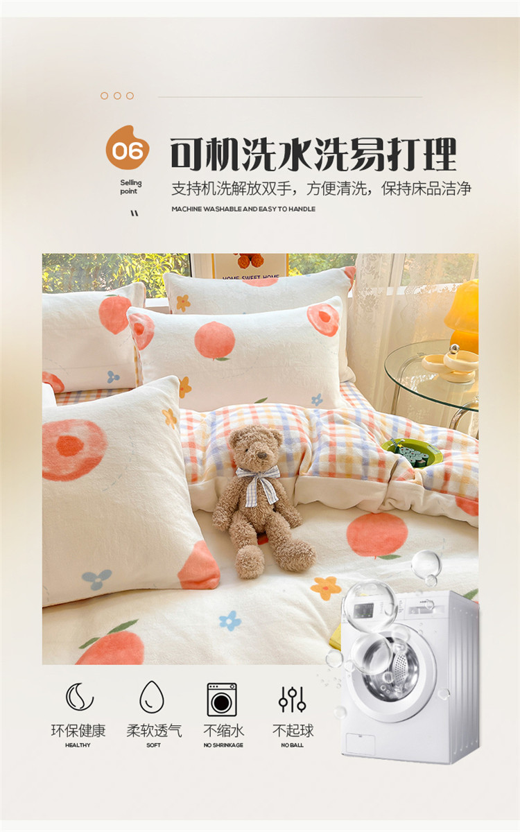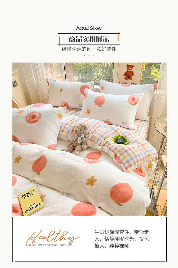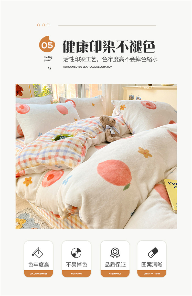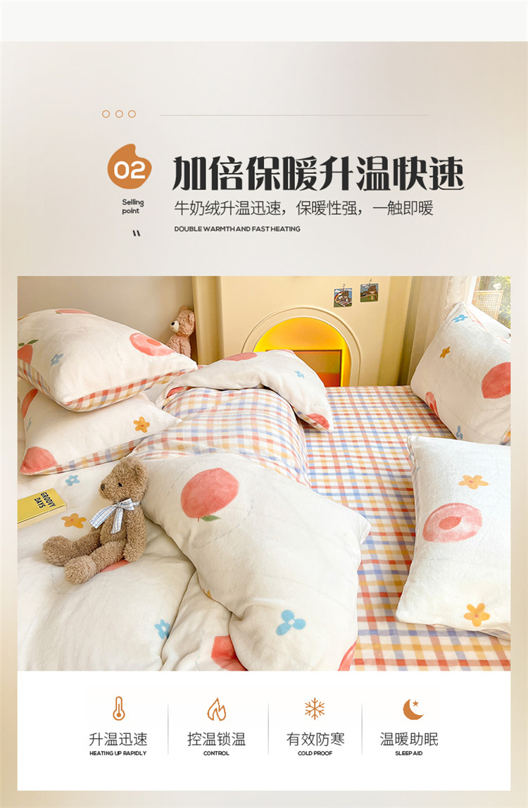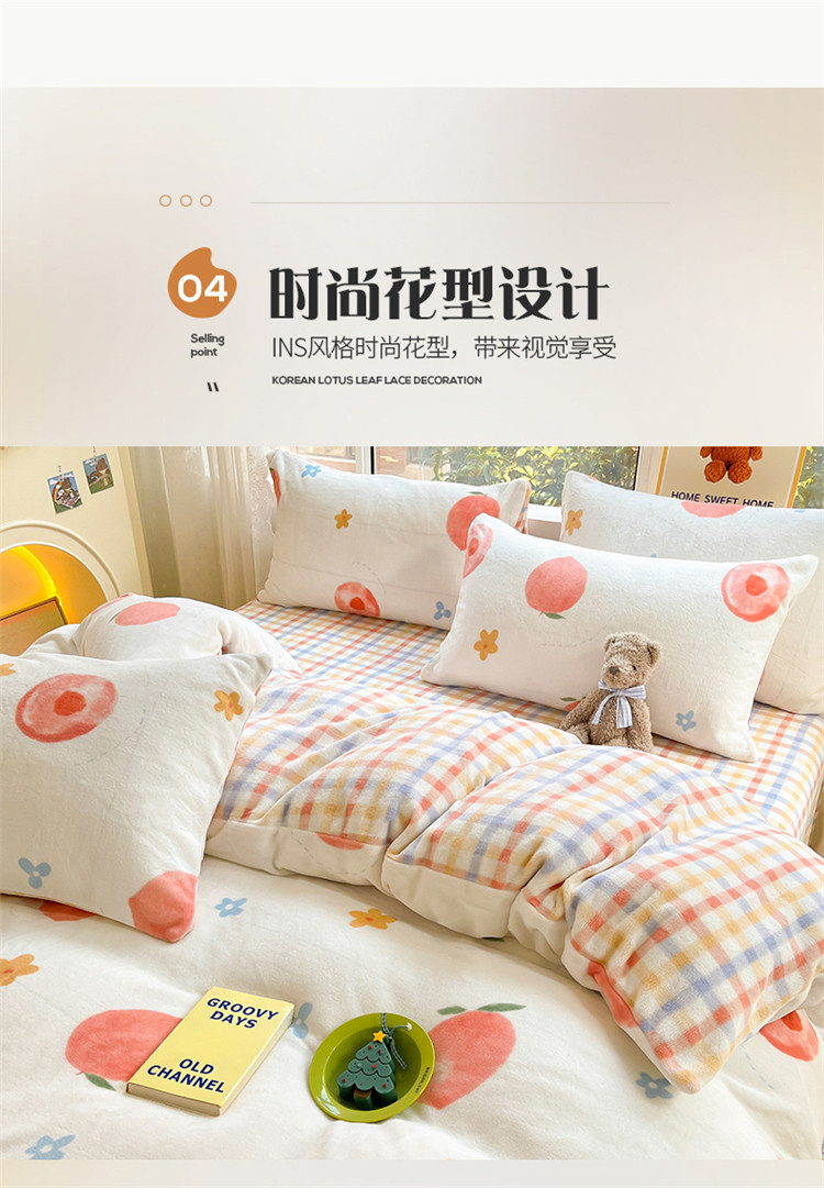 桃子家居 2022新款ins小清新韩系加厚牛奶绒系列四件套 绒-蜜桃朵朵1
