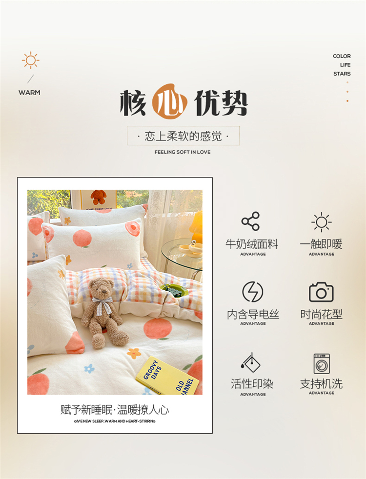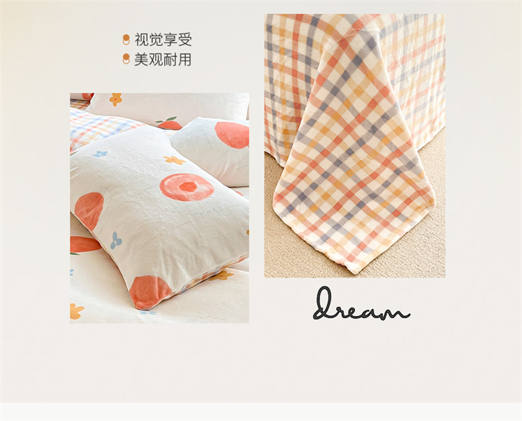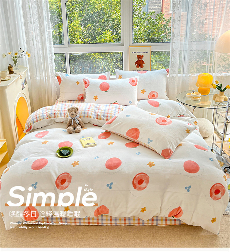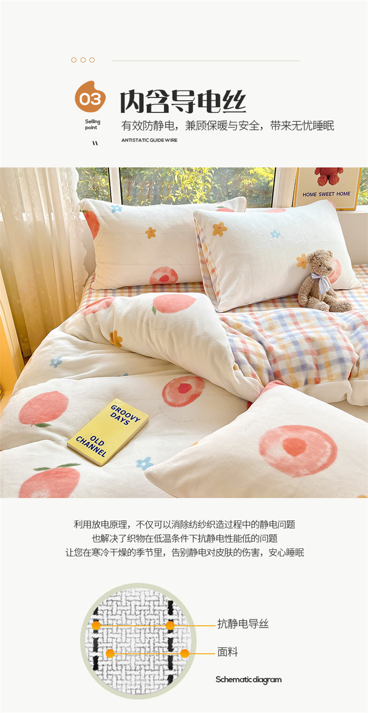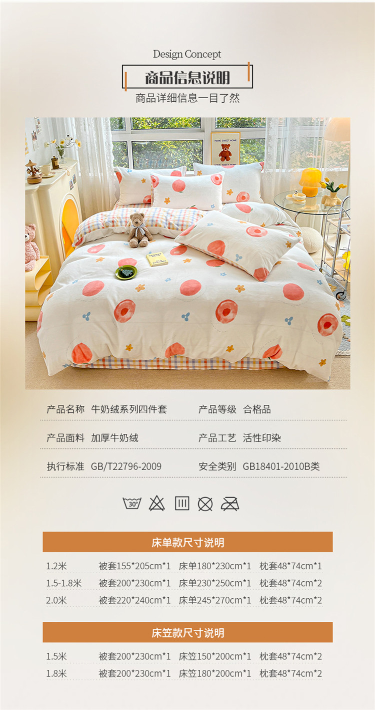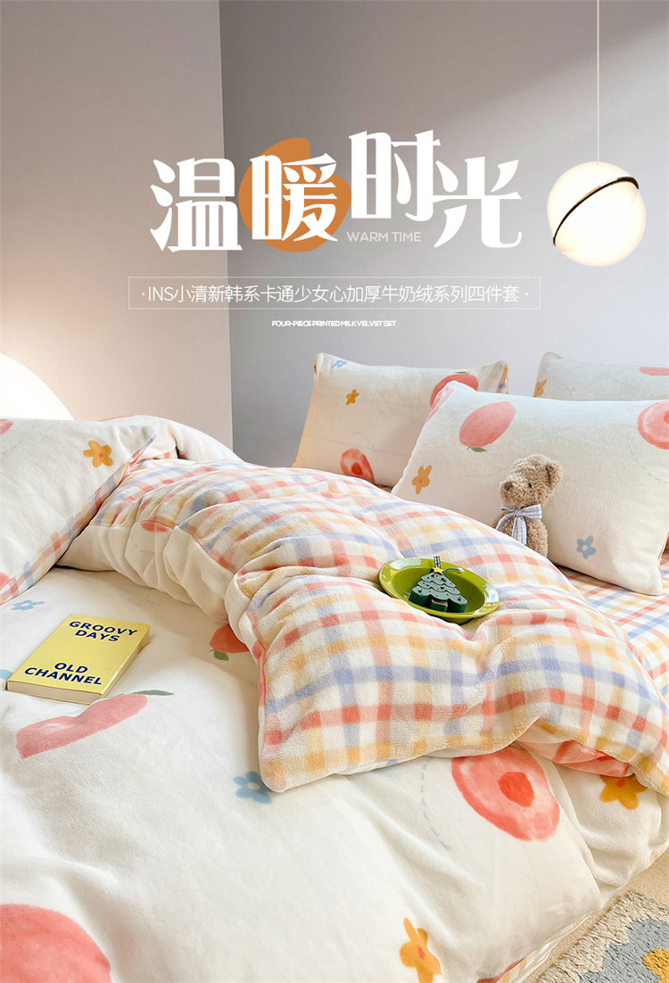 桃子家居 2022新款ins小清新韩系加厚牛奶绒系列四件套 绒-蜜桃朵朵1