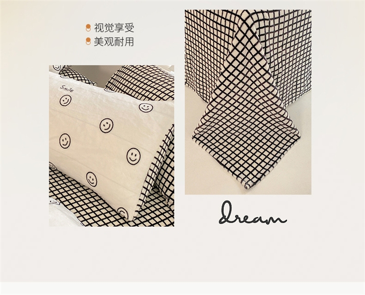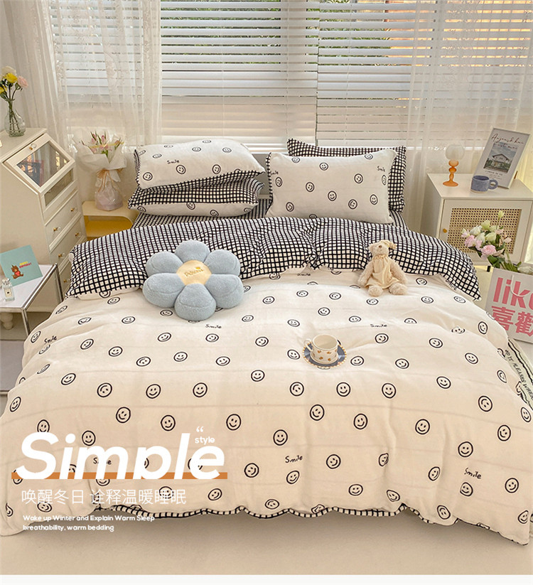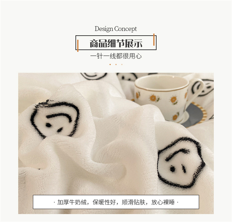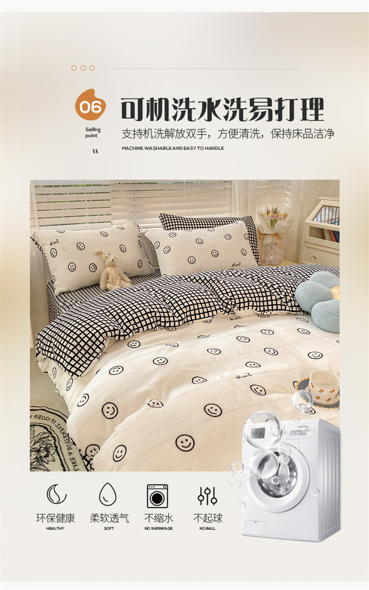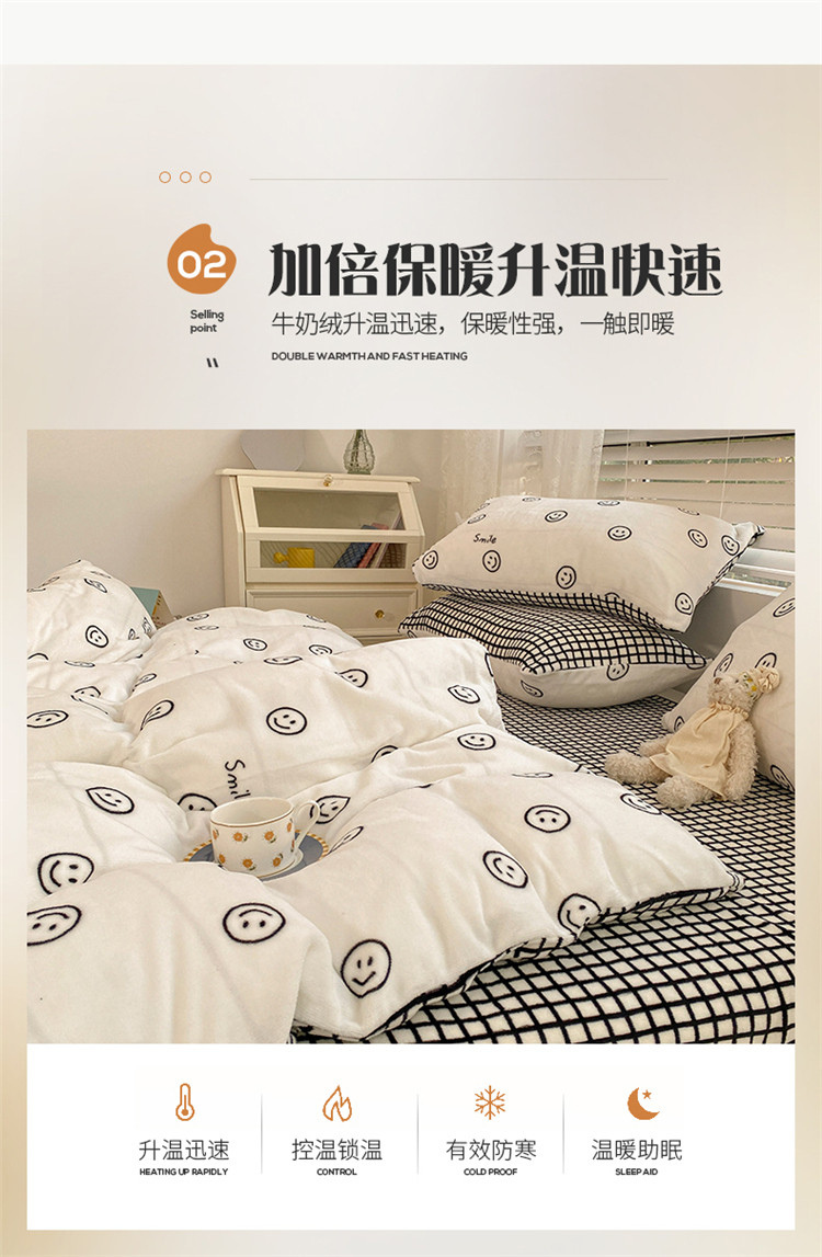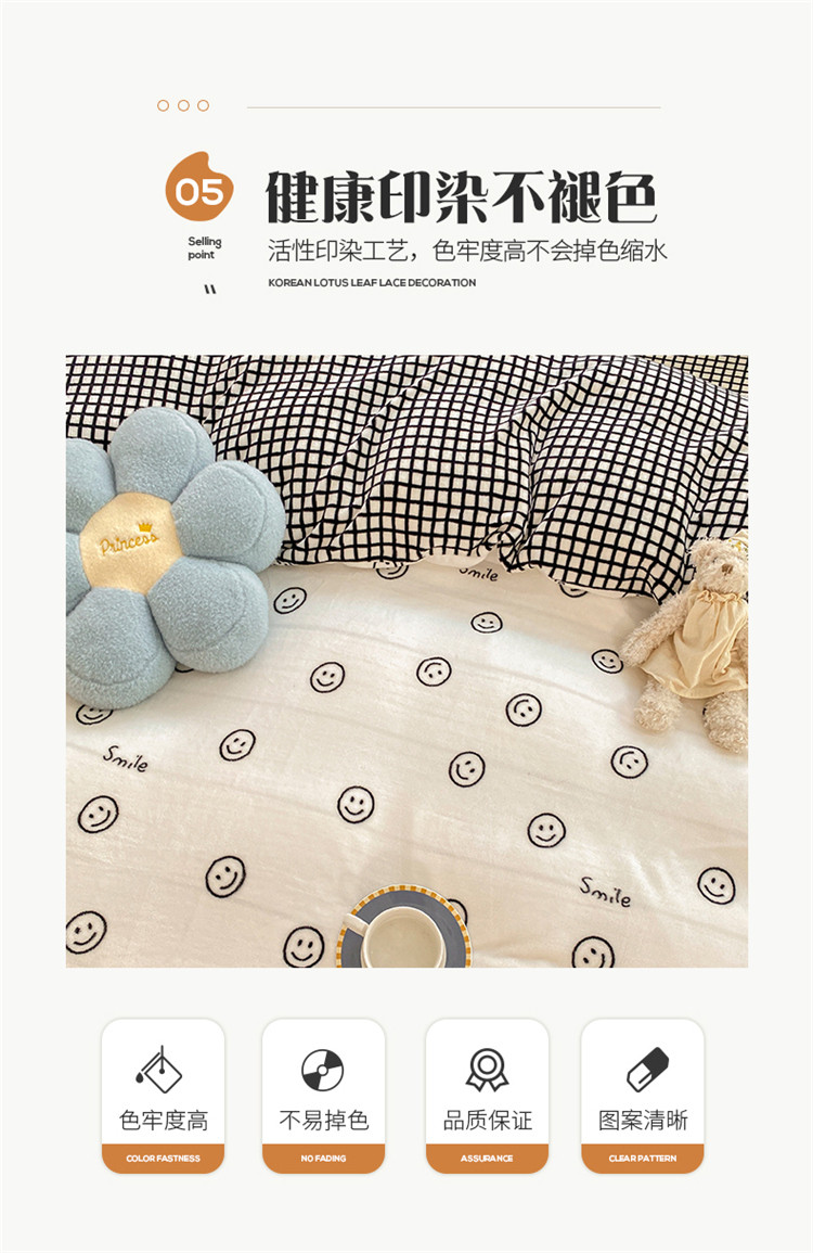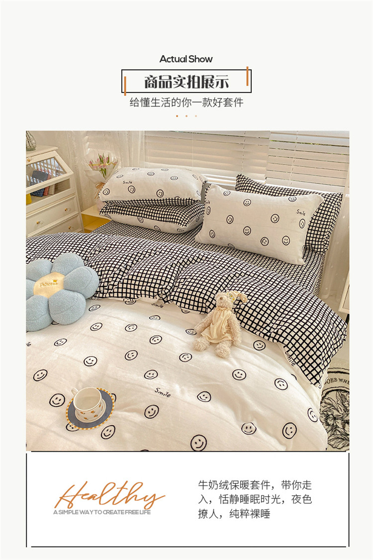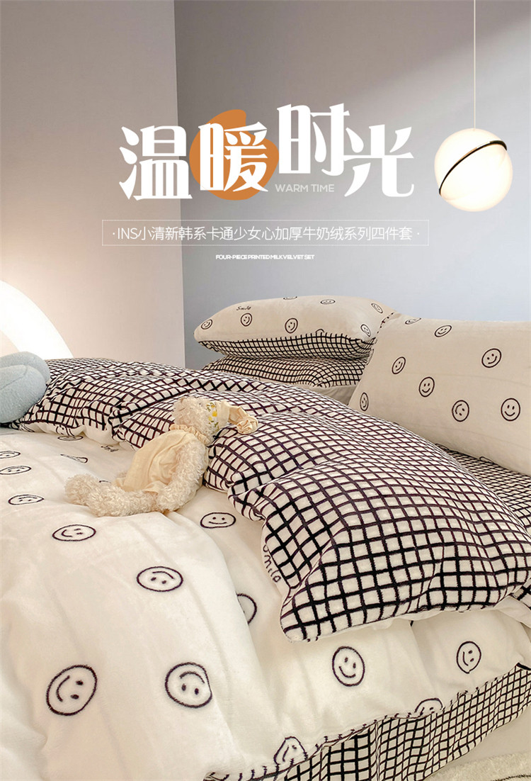 桃子家居 2022新款ins小清新韩系加厚牛奶绒系列四件套 黑糖笑脸2