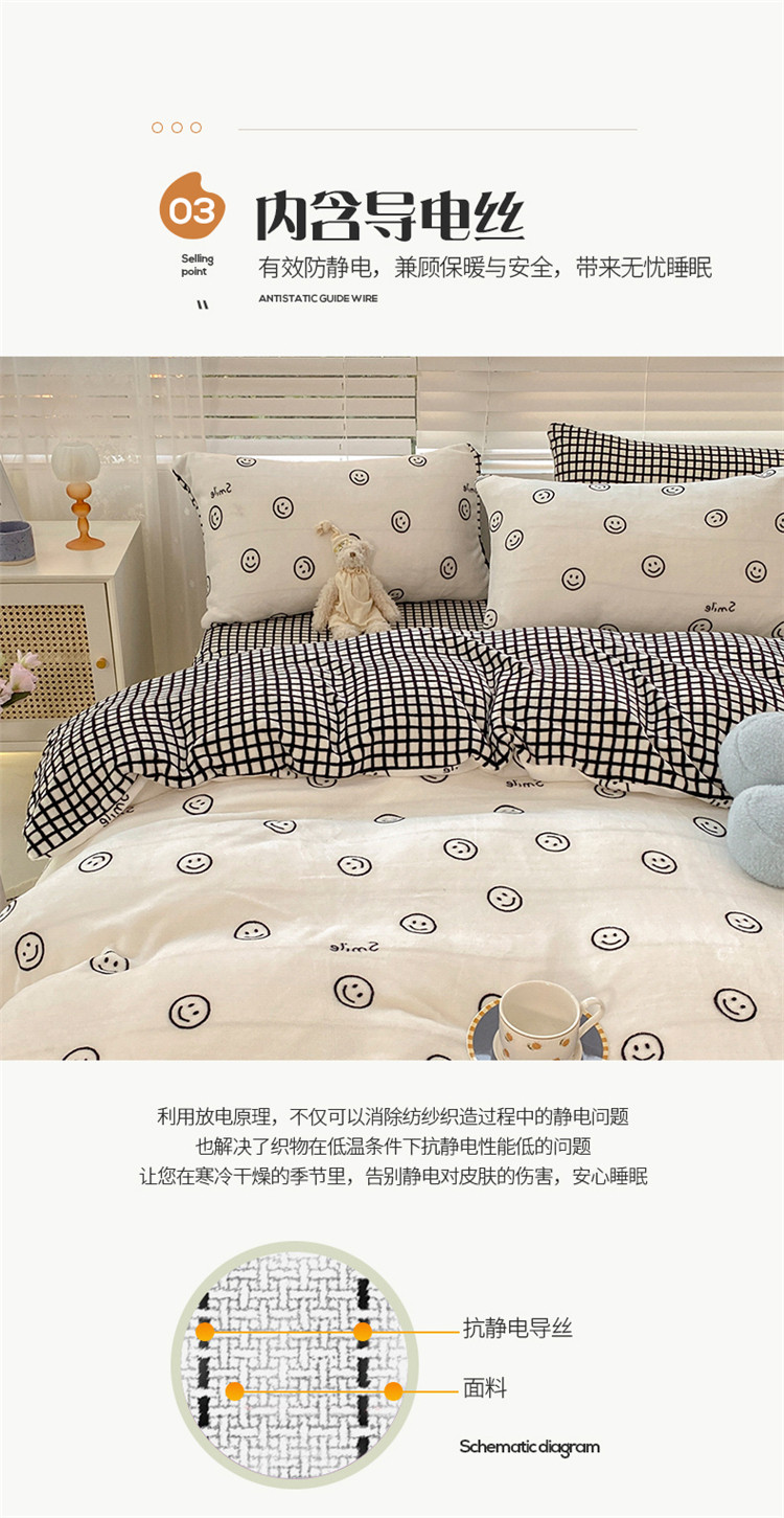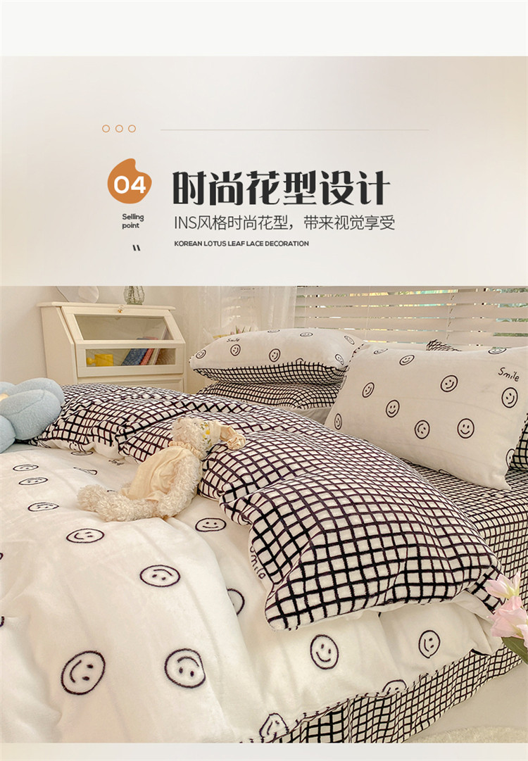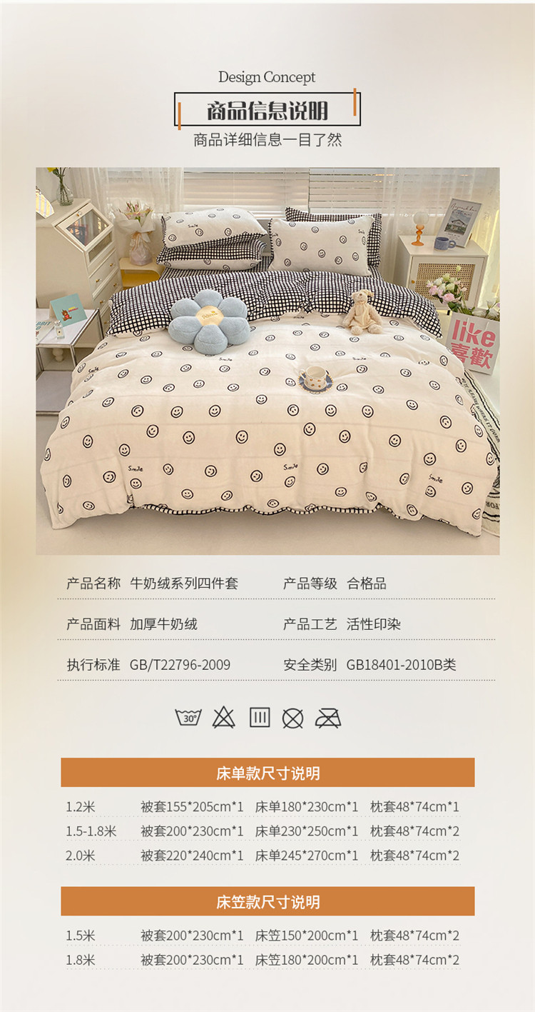 商品名称:桃子家居 2022新款ins小清新韩系加厚牛奶绒系列四件套 黑糖笑脸2