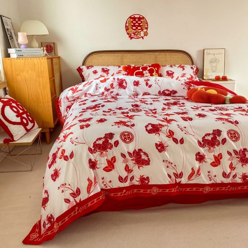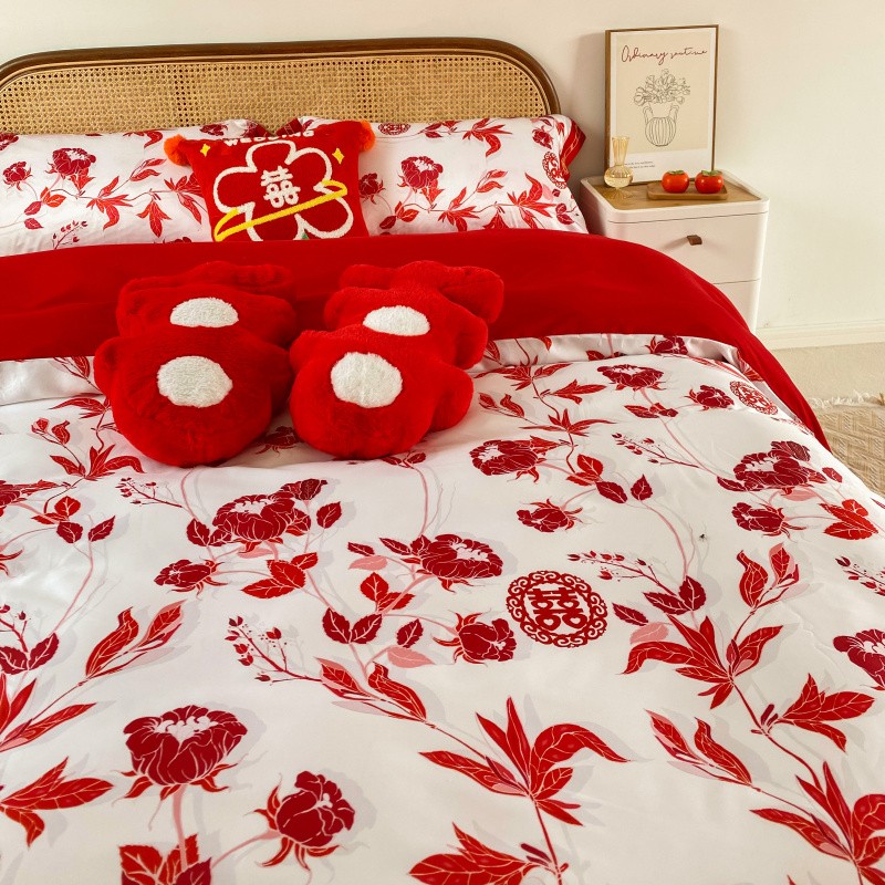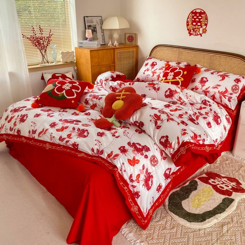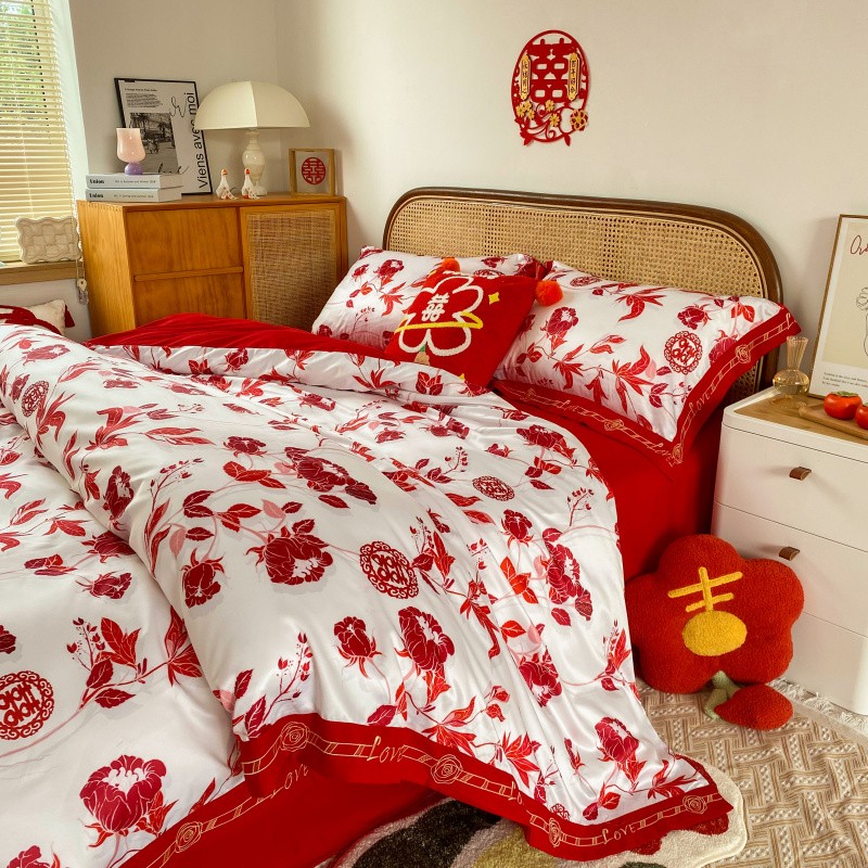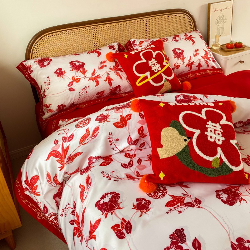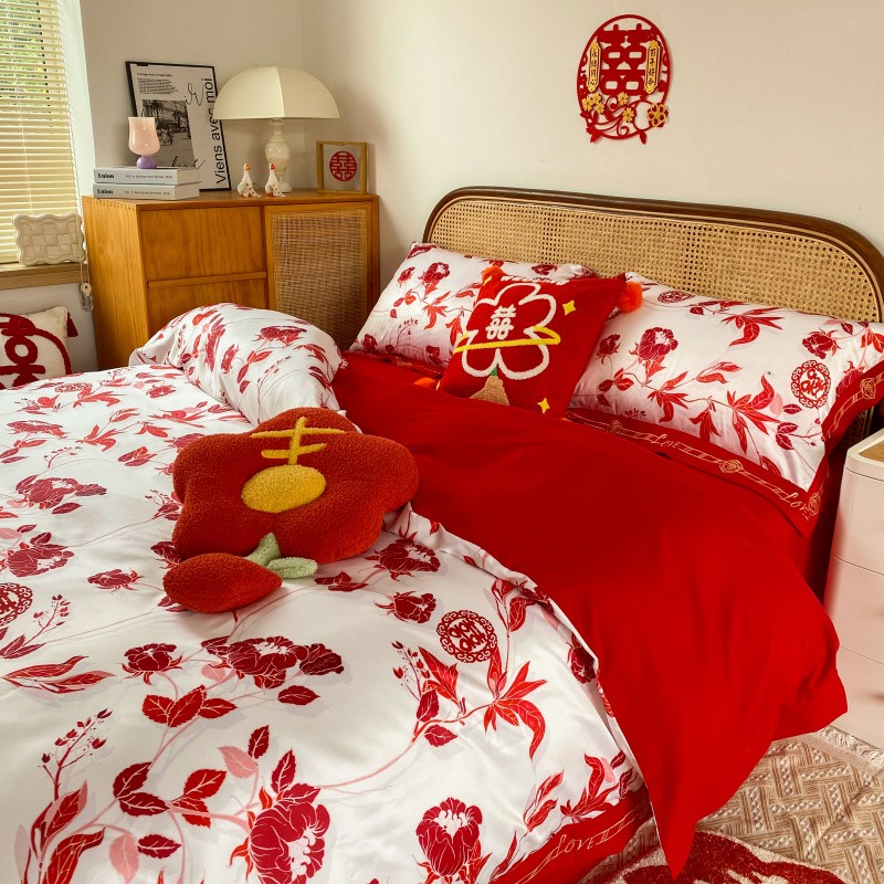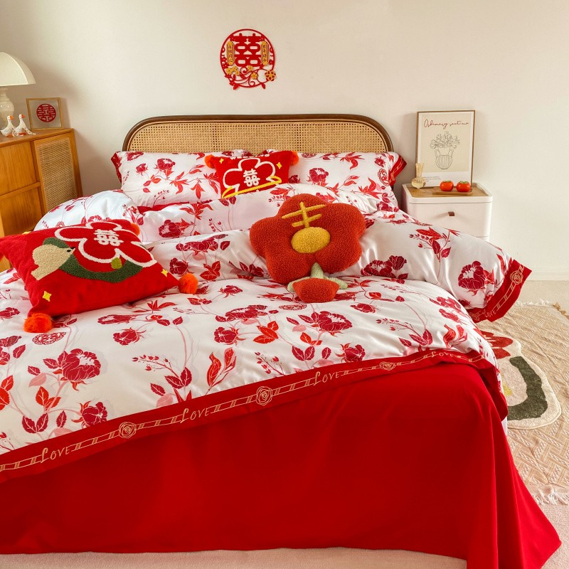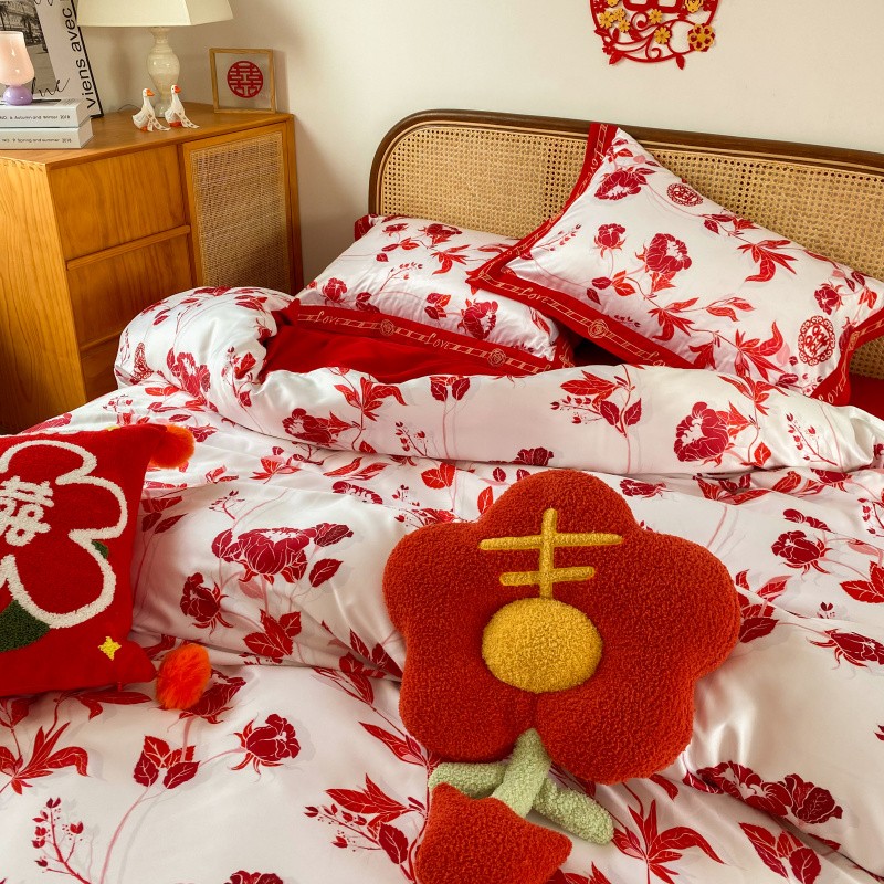 商品名称:用心2022新款高端数码印花刺绣款婚庆四件套系列2 云喜