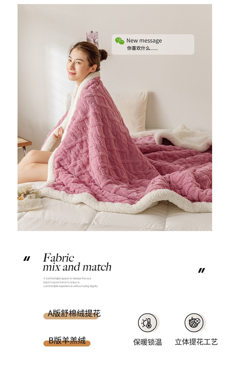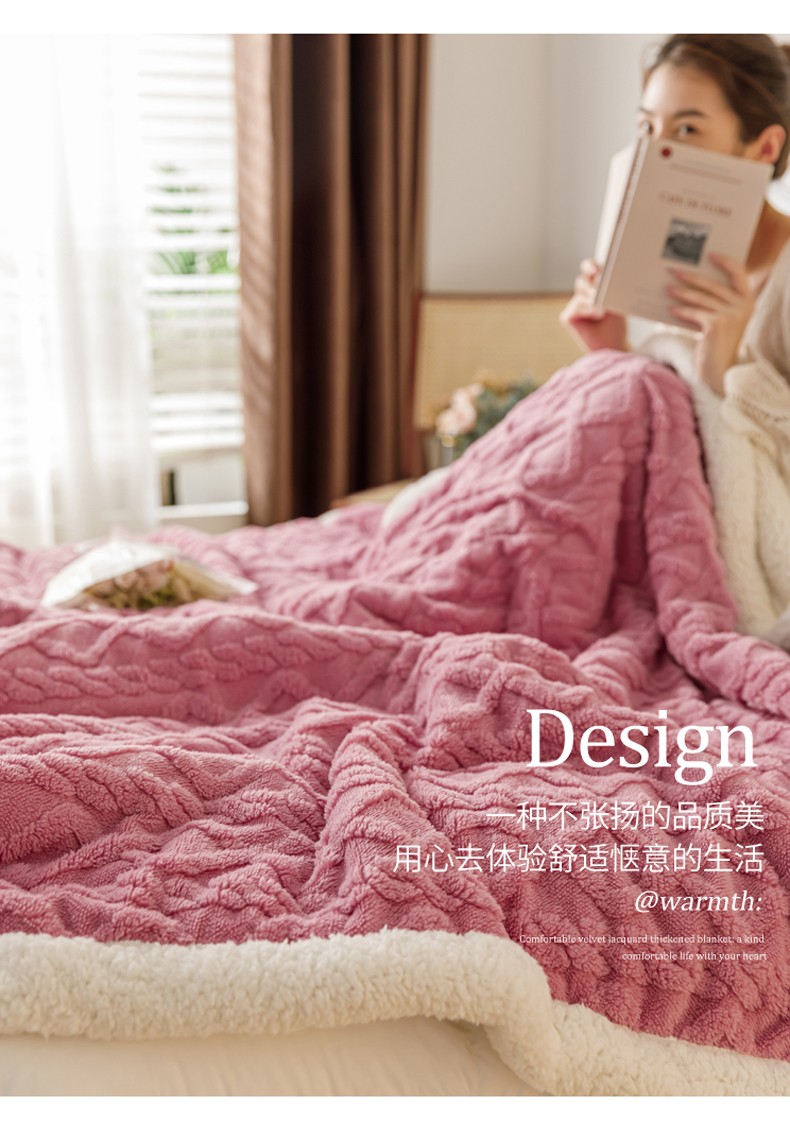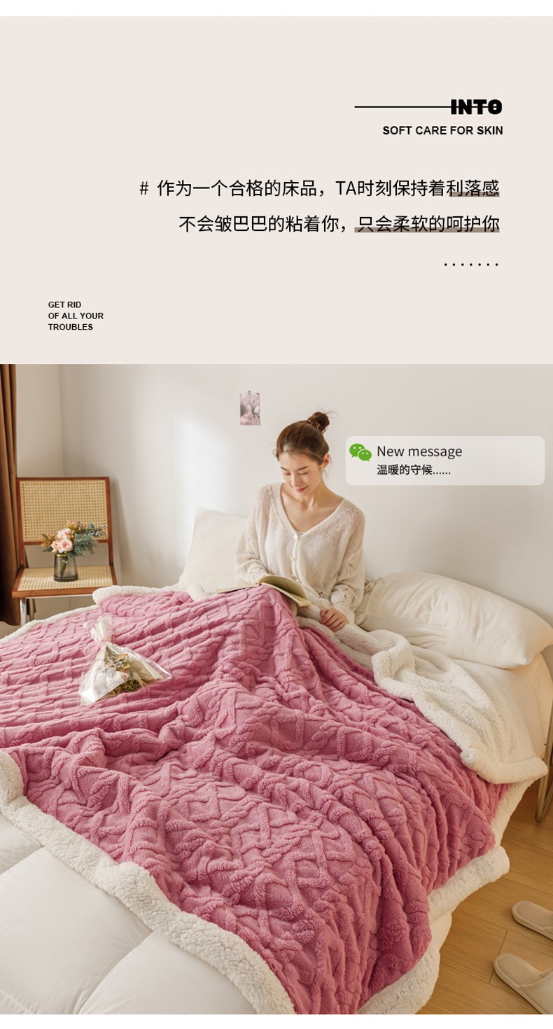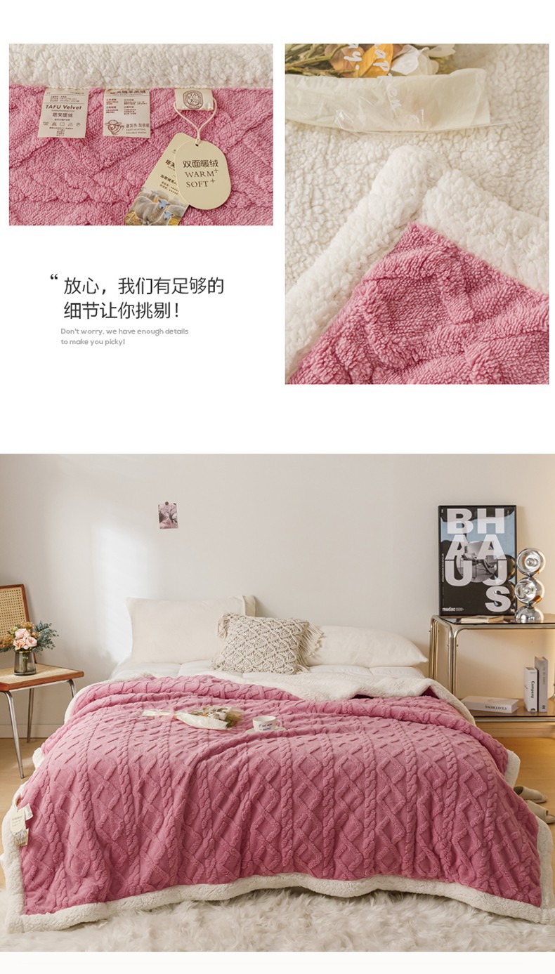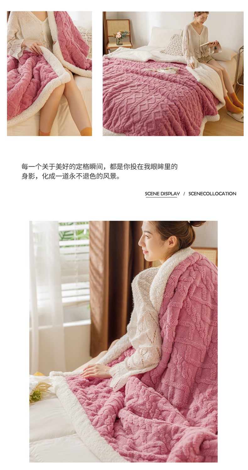商品名称:简爱-2026加厚舒棉绒羊羔绒盖毯毛毯 菱形茉格-珊瑚粉
