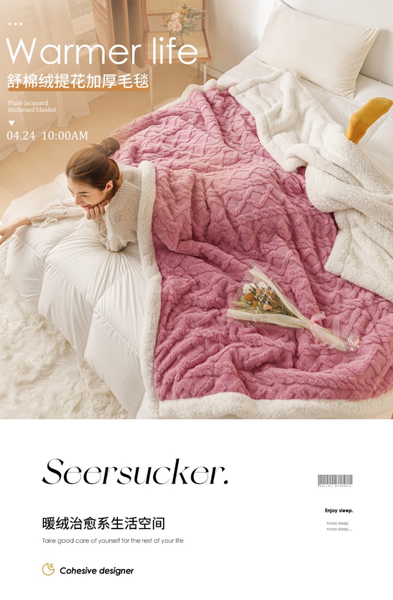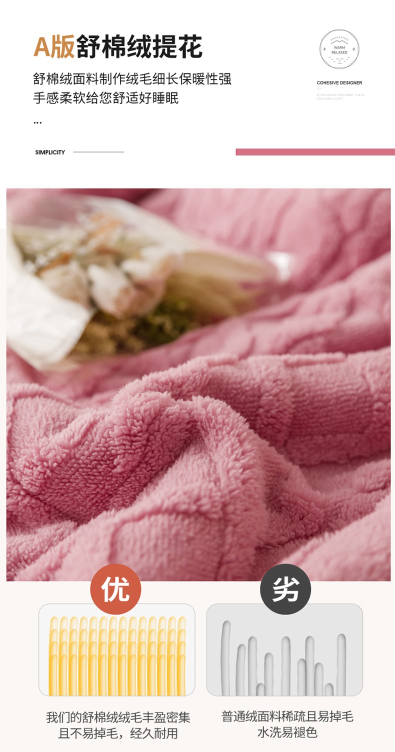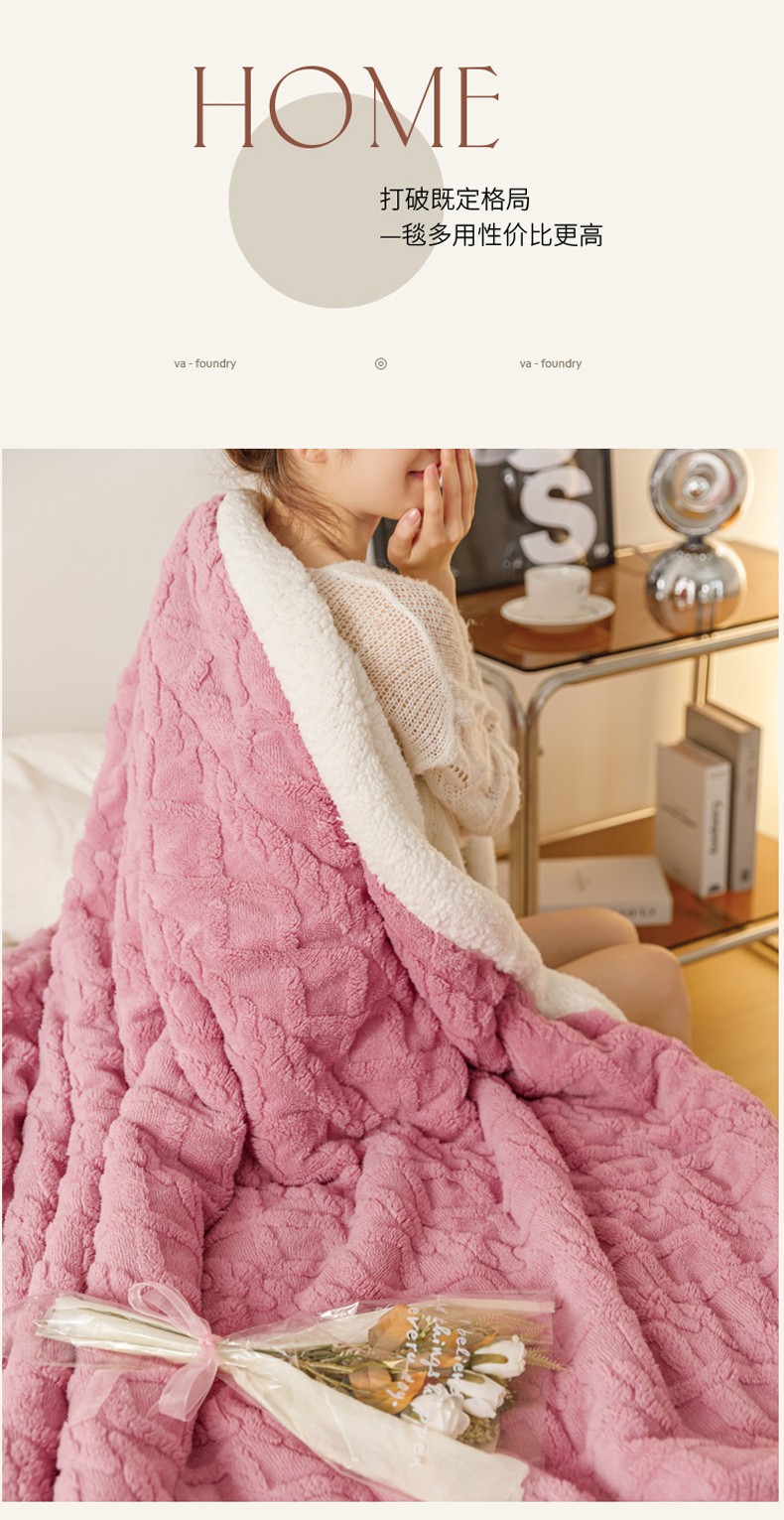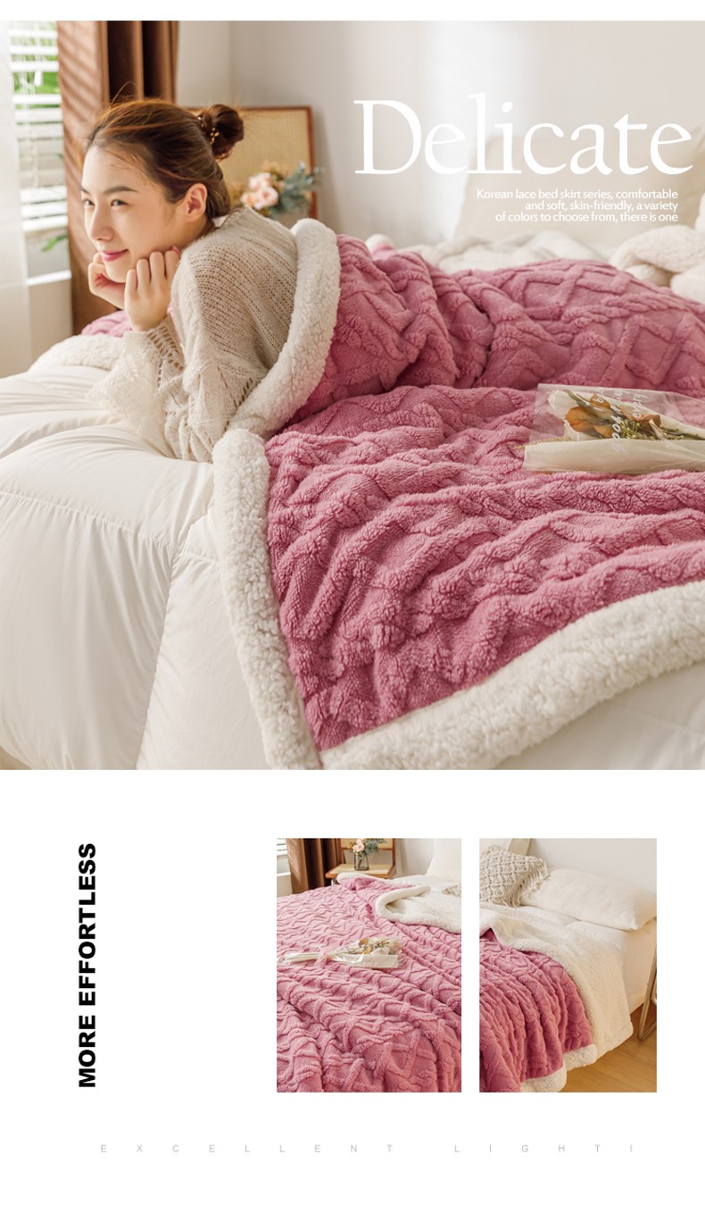 商品名称:简爱-2026加厚舒棉绒羊羔绒盖毯毛毯 菱形茉格-珊瑚粉