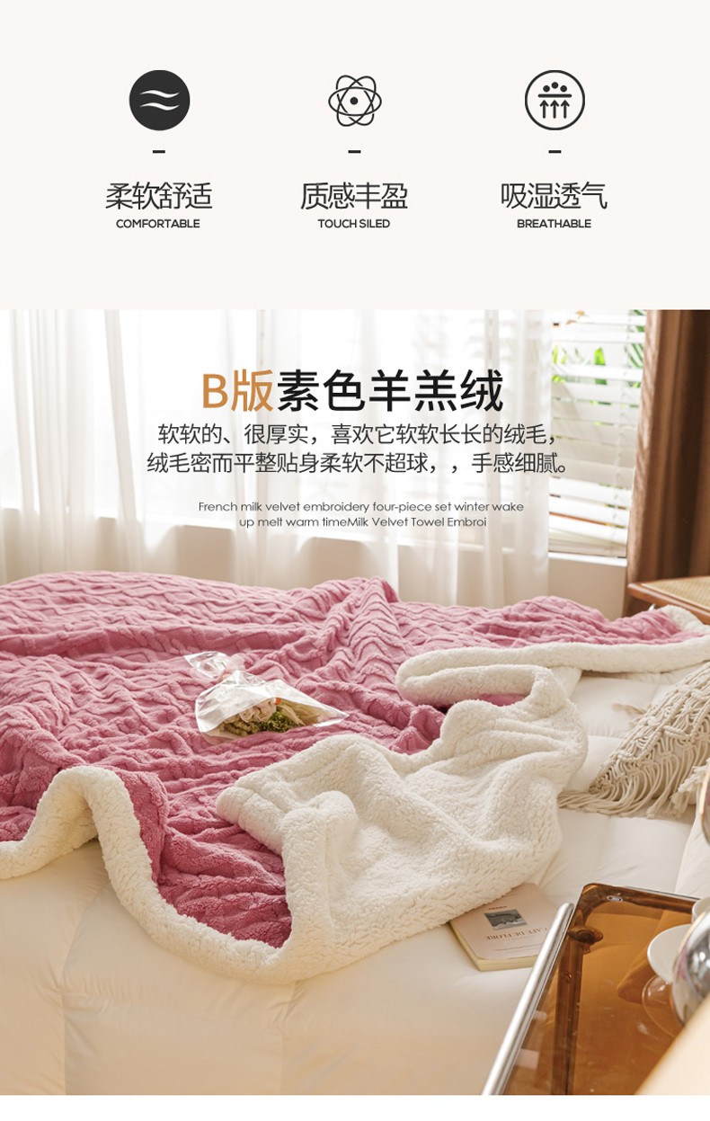 (总)简爱 2026新款法莱绒羊羔绒多功能被套毯,藏青,豆沙,鹅黄,湖蓝,酒红,咖啡,浅绿,深灰,驼色,夕阳红,银灰,玉色