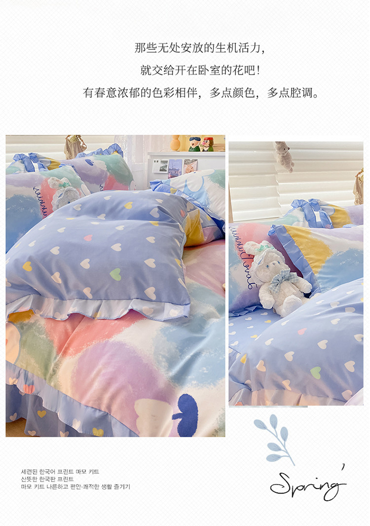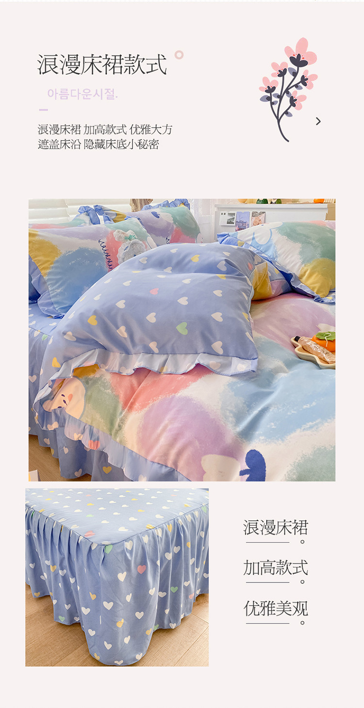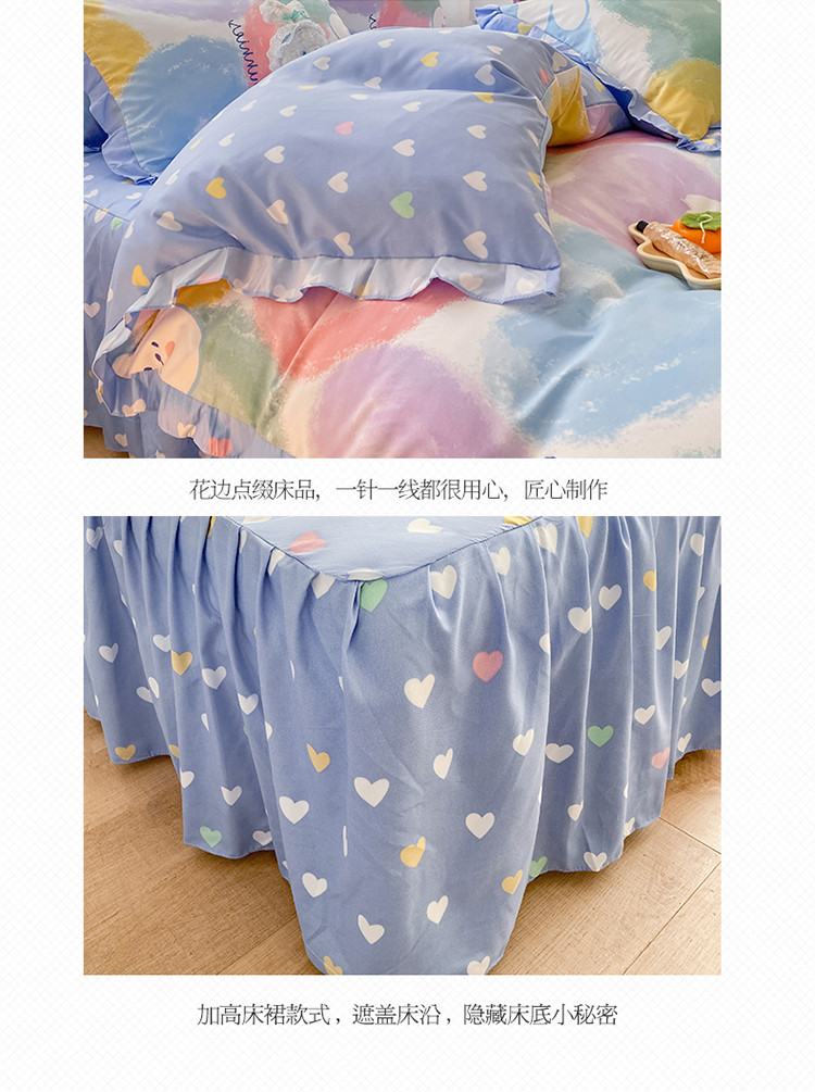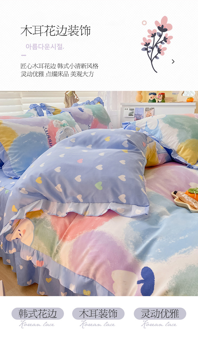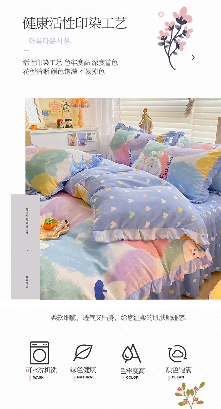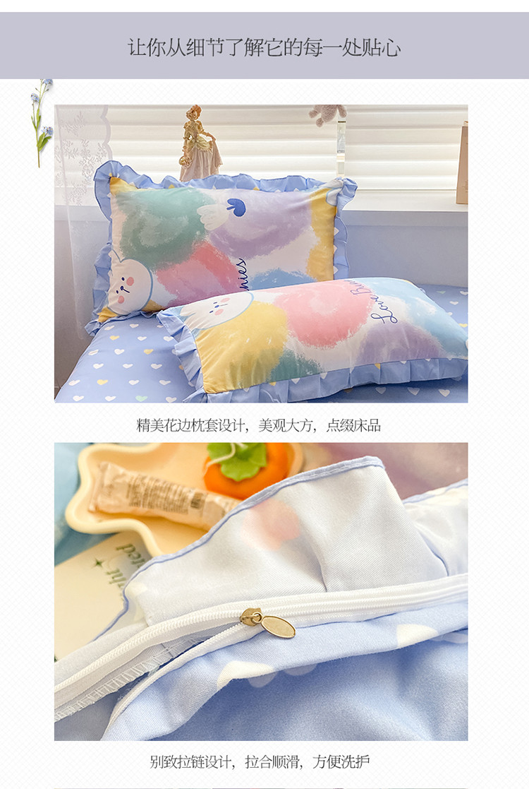 当前位置: 91家纺网 > 商品网购 > 床品套件 > 四件套 > 上尚居 2024新款小清新韩版花边磨毛四件套水洗棉爱心兔