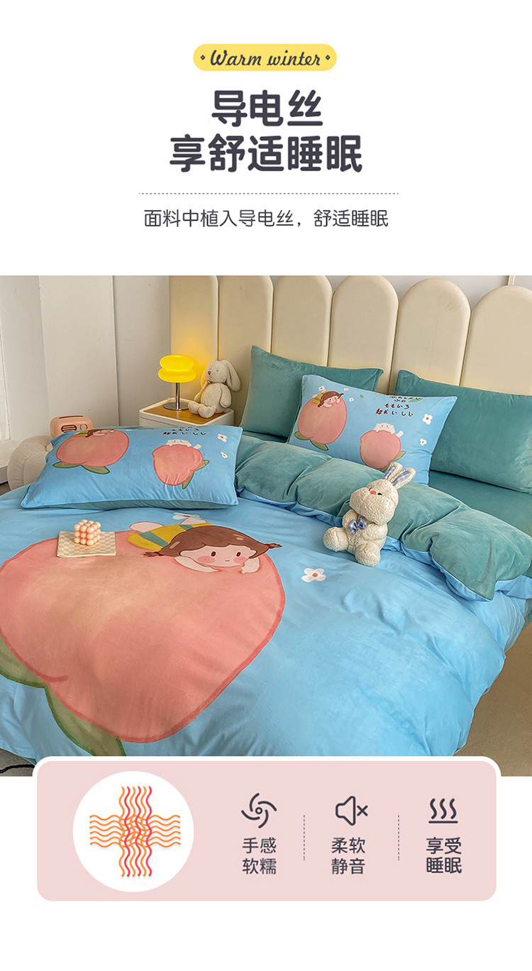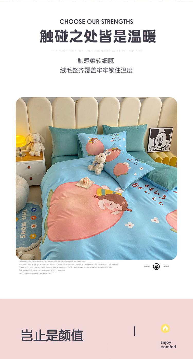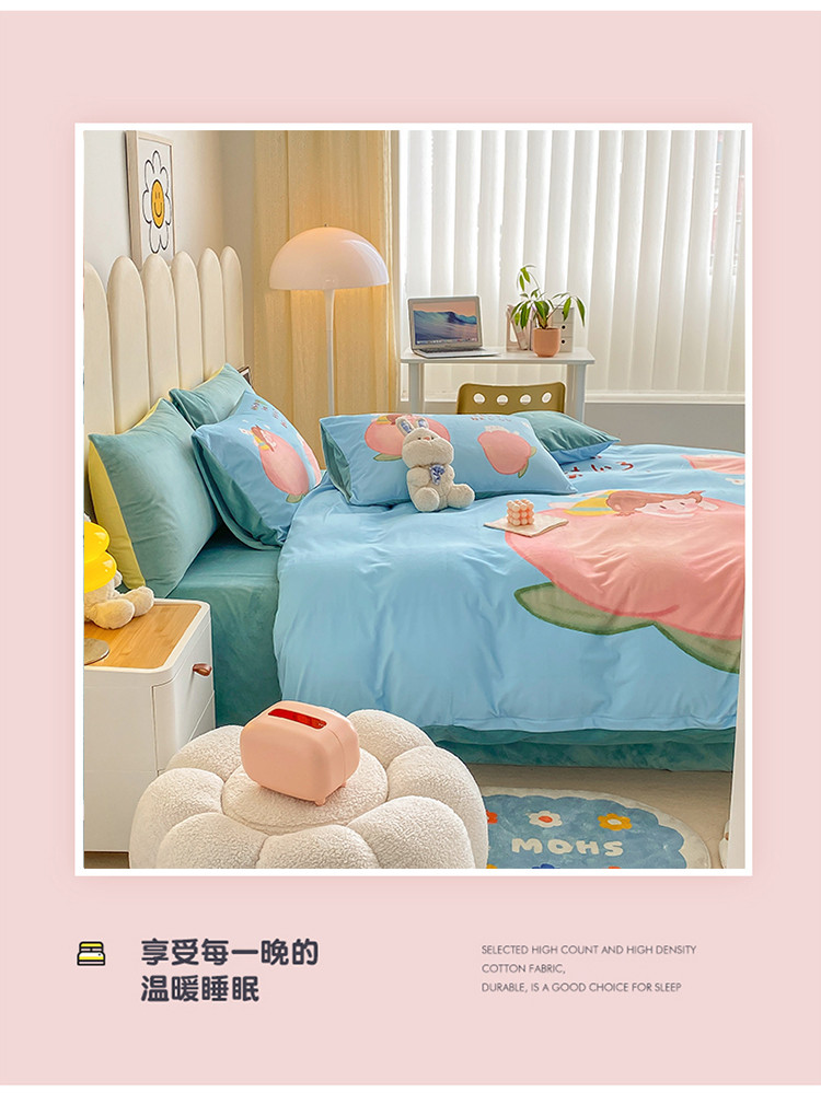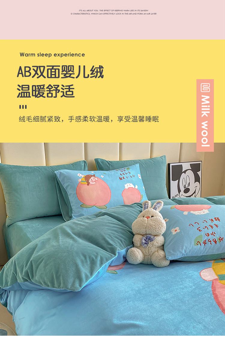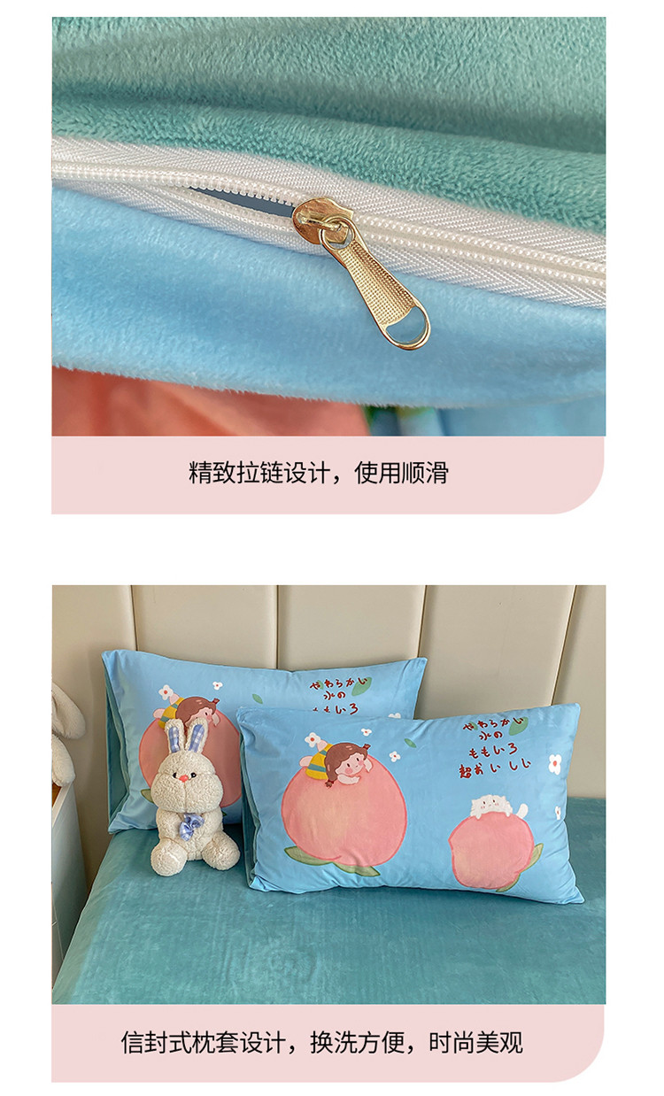 当前位置: 91家纺网 > 商品网购 > 床品套件 > 四件套 > 宝宝绒四件套 > 博雅 2022新款婴儿绒大版印花系列四件套 桃子女孩