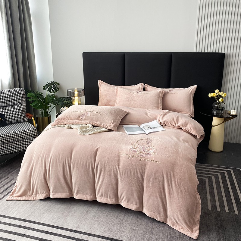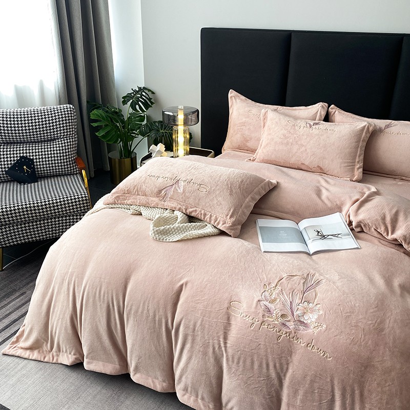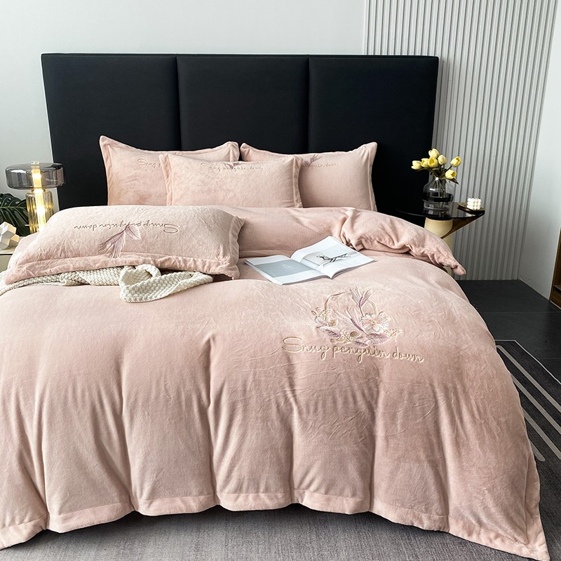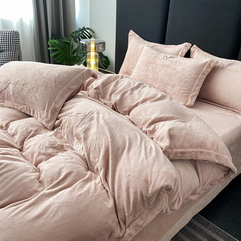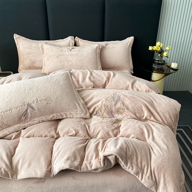 云锦 2022新款230g牛奶绒全消光四件套-含情麦麦 含情麦麦-柔粉