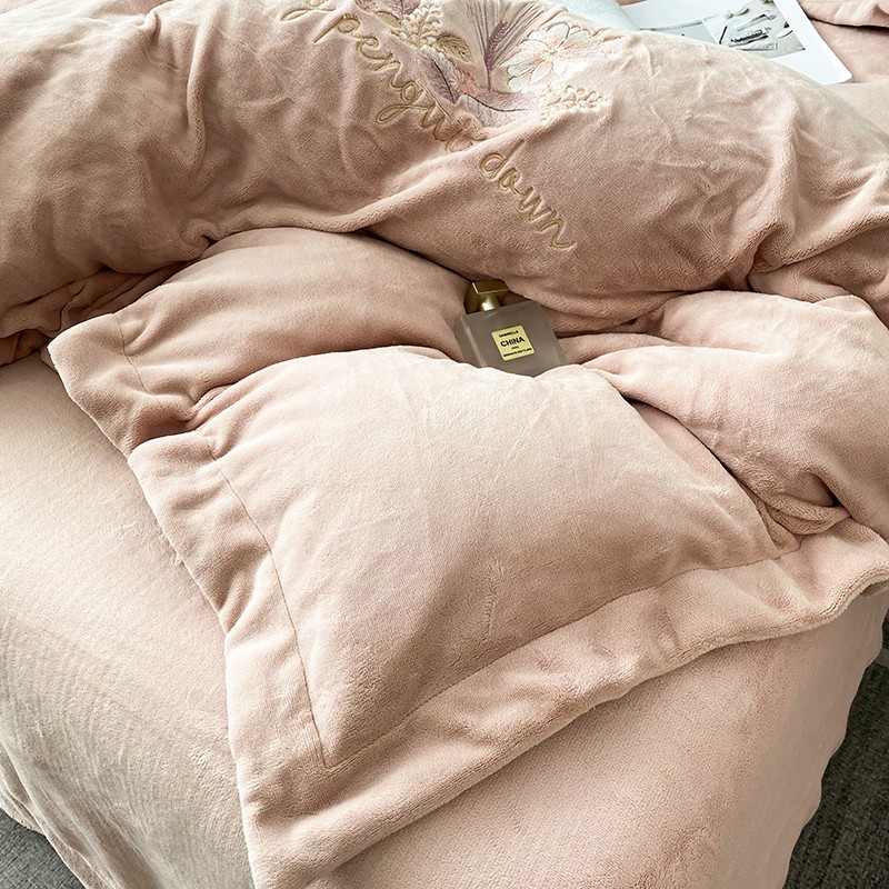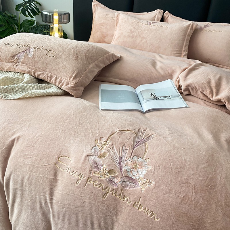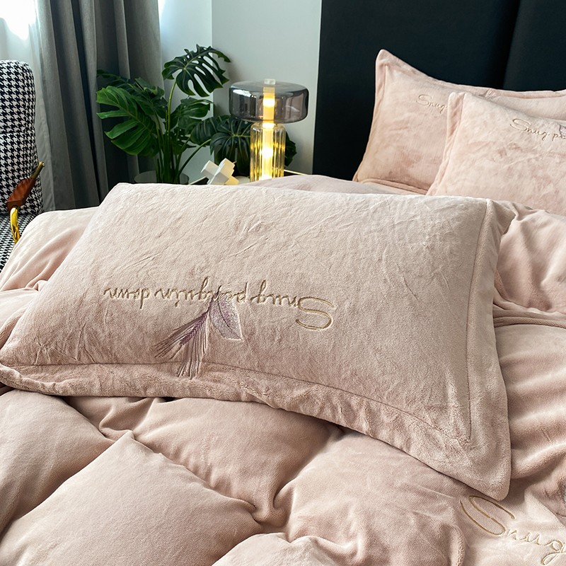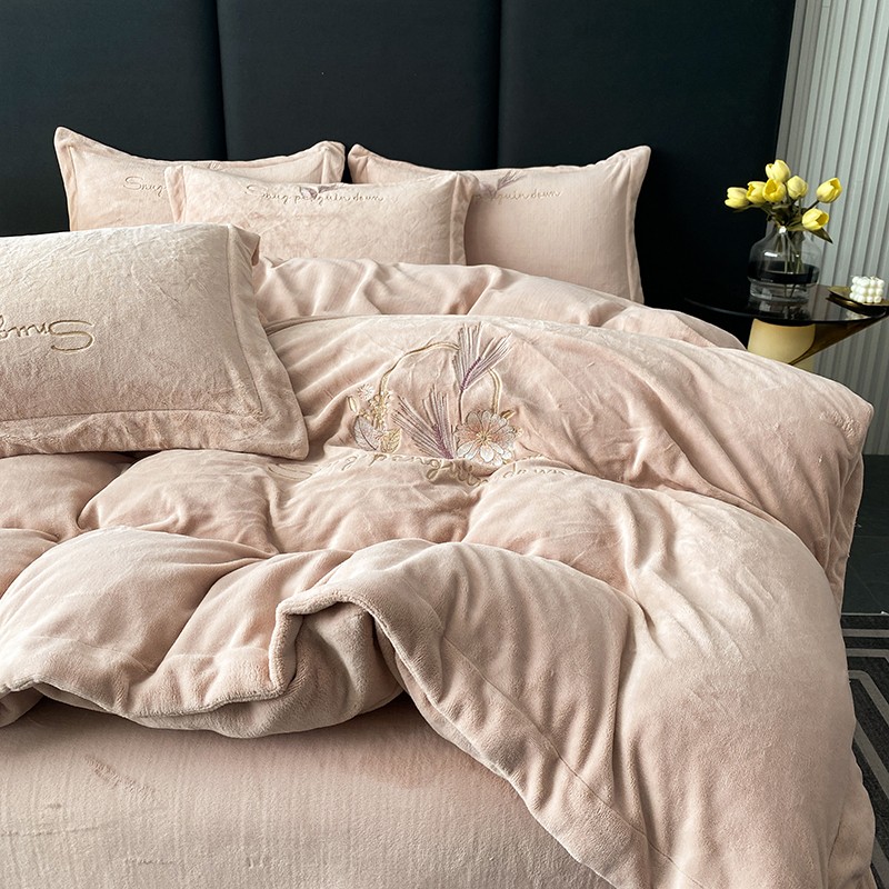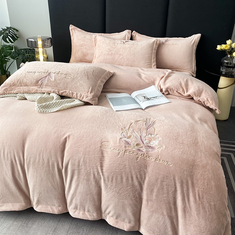 云锦 2022新款230g牛奶绒全消光四件套-含情麦麦 含情麦麦-柔粉