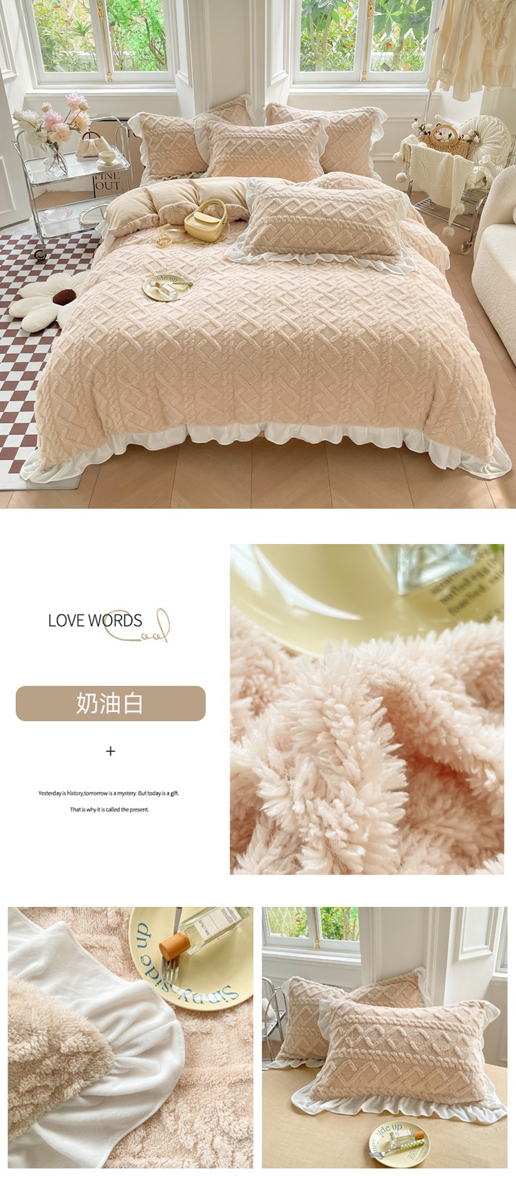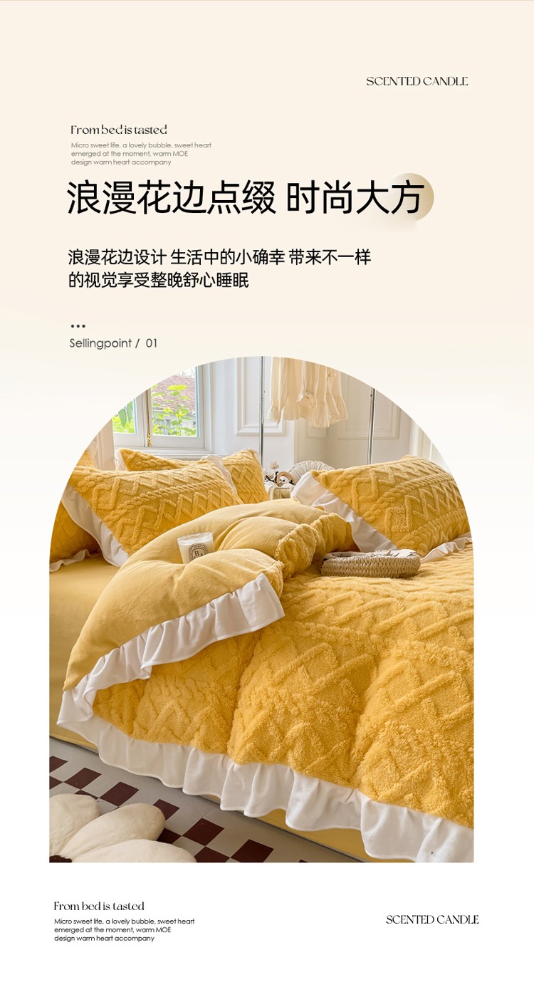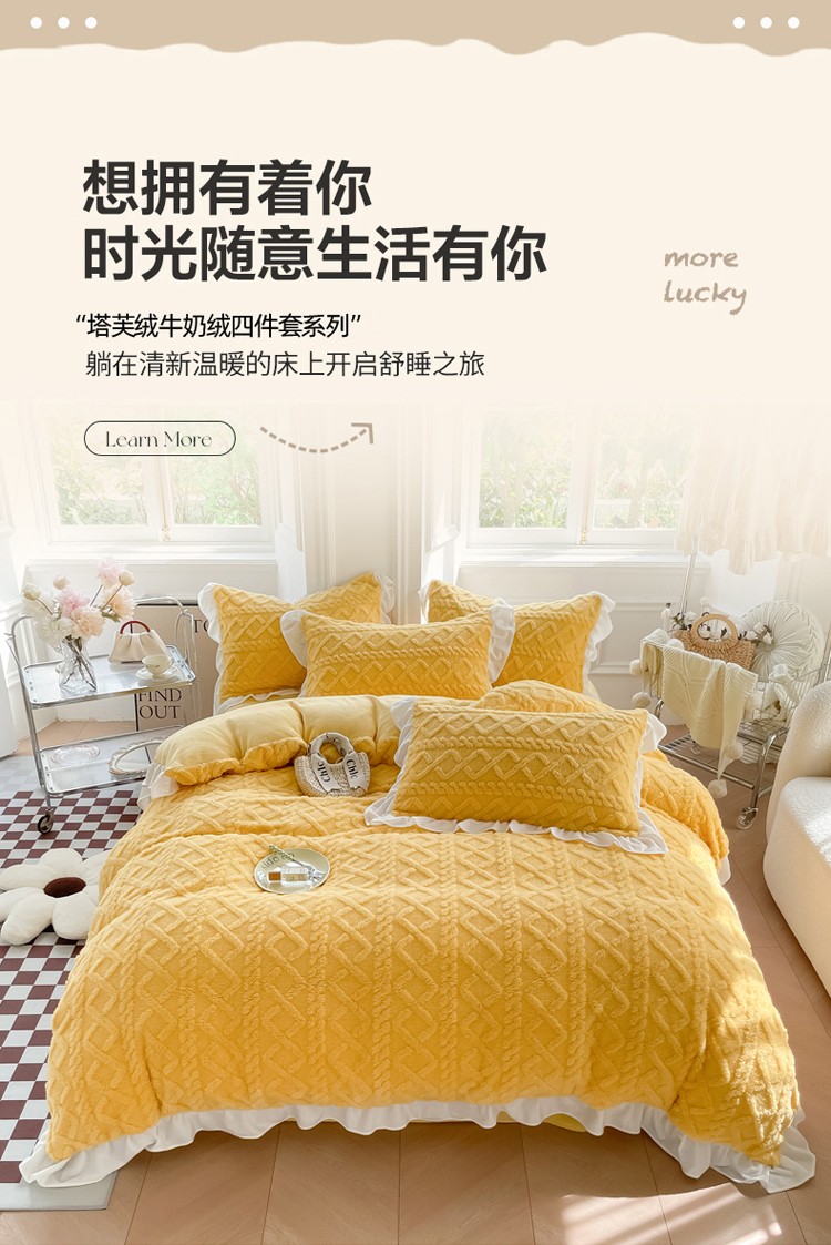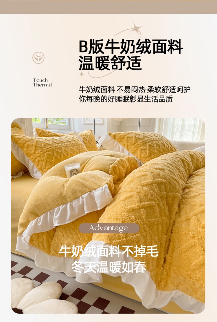 (总)米莱家纺 2025新款兔毛绒花边牛奶绒四件套,彩色圆点,繁花,粉黛,蝴蝶结,咖圆点,可爱兔,可爱熊,蔷薇