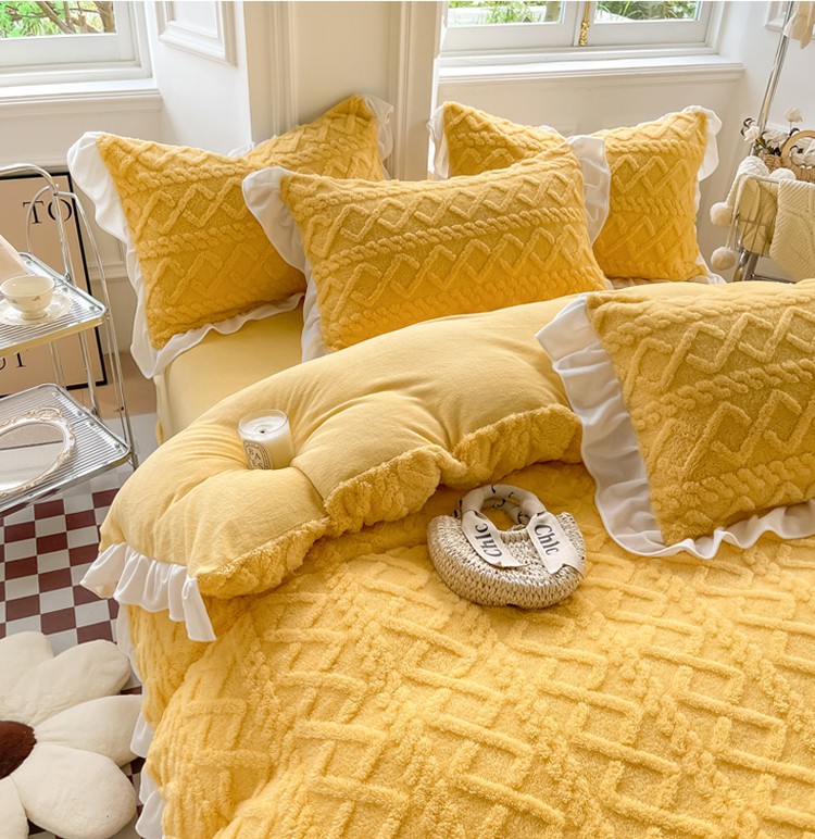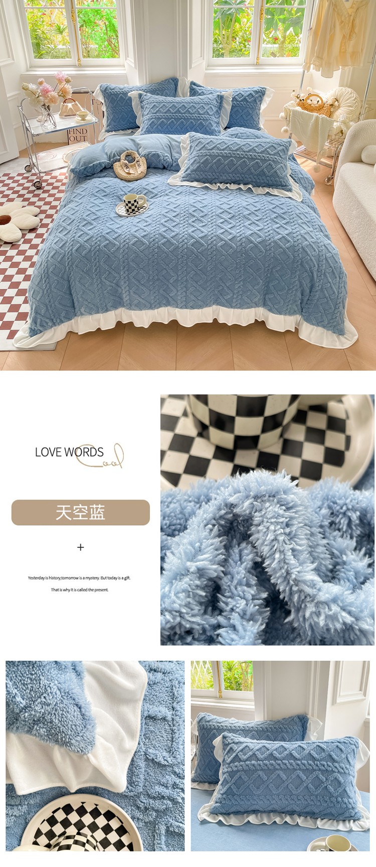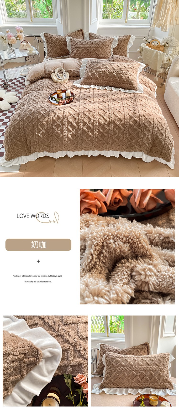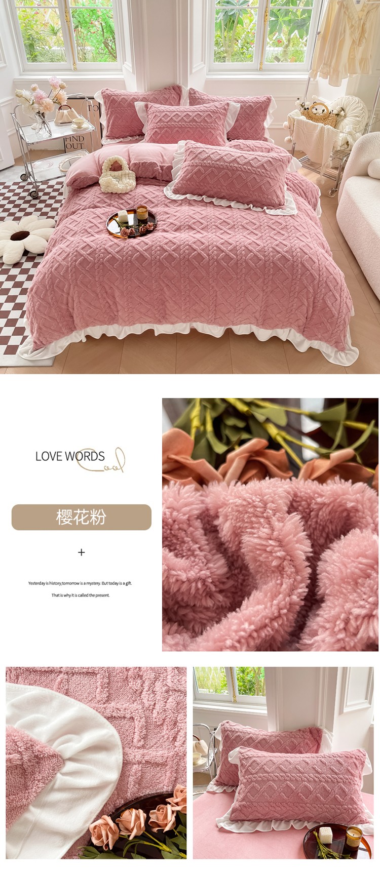 (总)米莱家纺 2025新款兔毛绒花边牛奶绒四件套,彩色圆点,繁花,粉黛,蝴蝶结,咖圆点,可爱兔,可爱熊,蔷薇