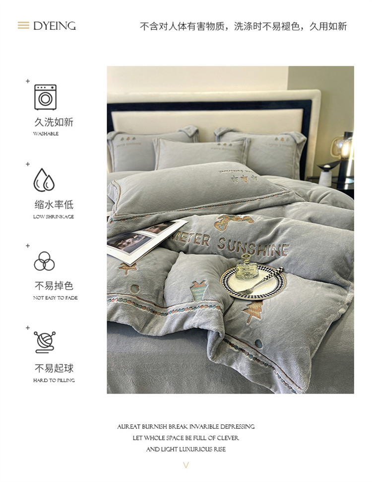 商品名称:冬季新品230克加厚牛奶绒婴儿绒珊瑚绒四件套全消光床单被套