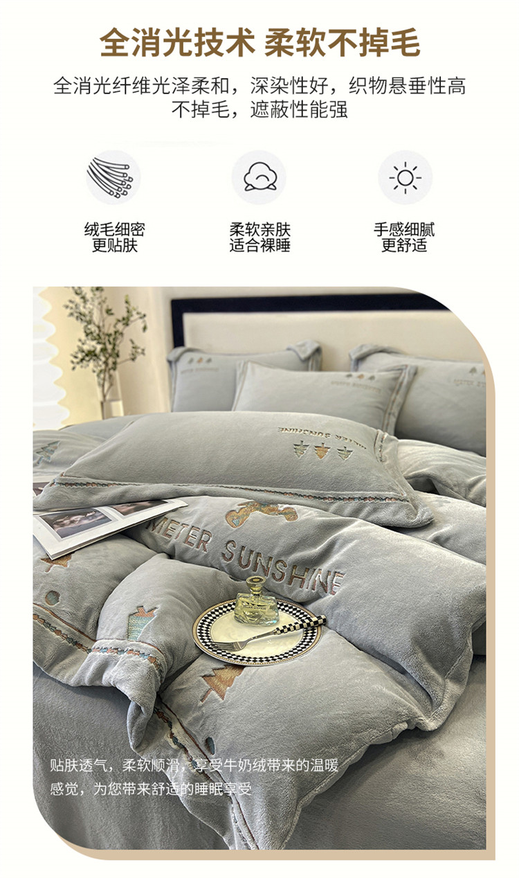 冬季新品230克加厚牛奶绒婴儿绒珊瑚绒四件套全消光床单被套