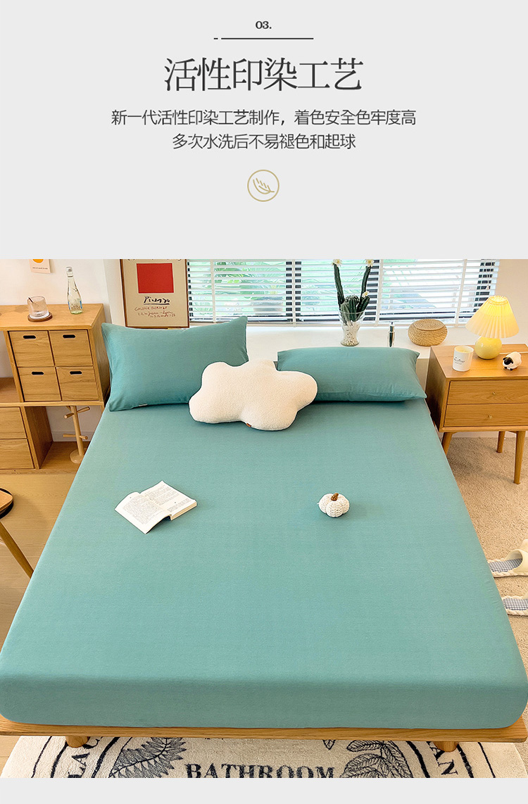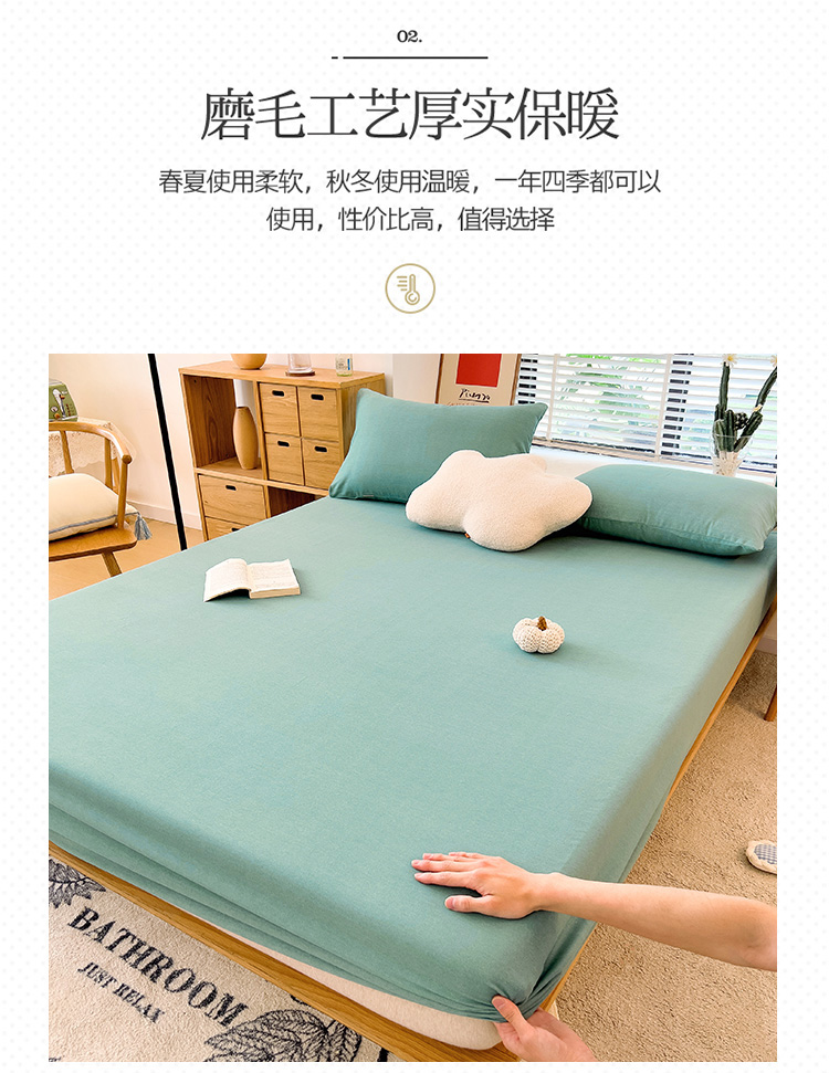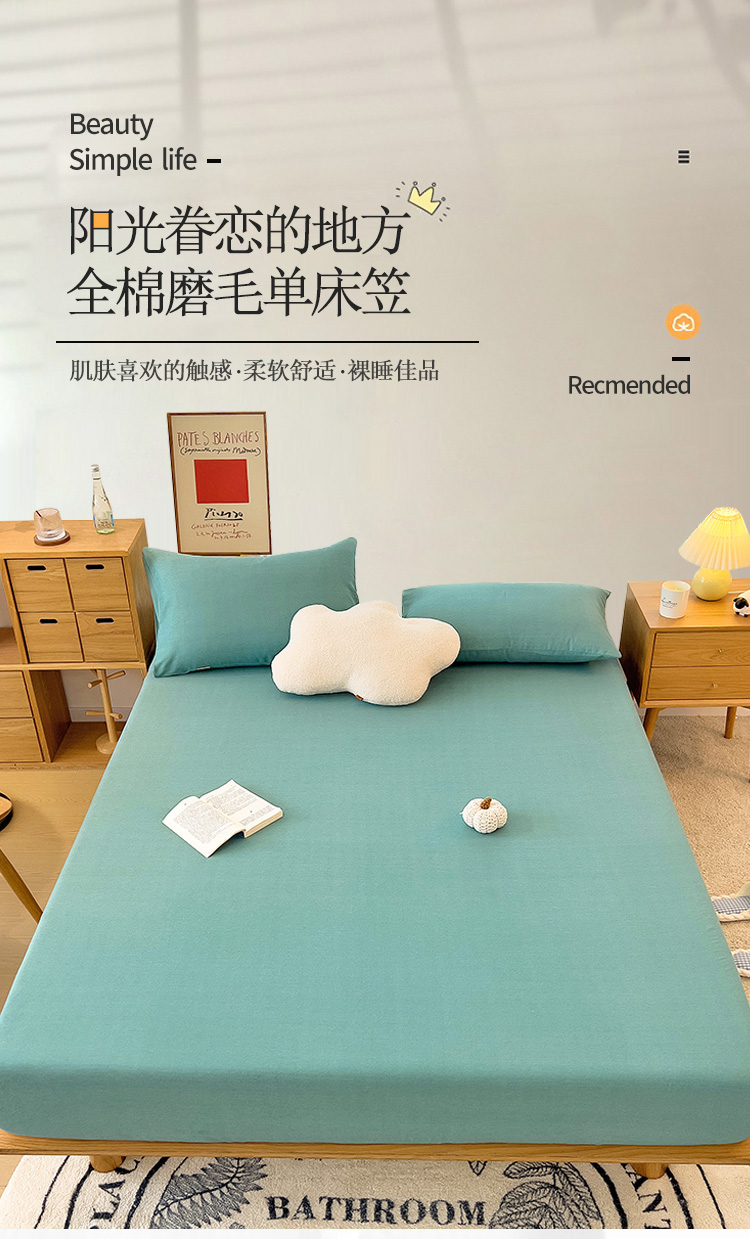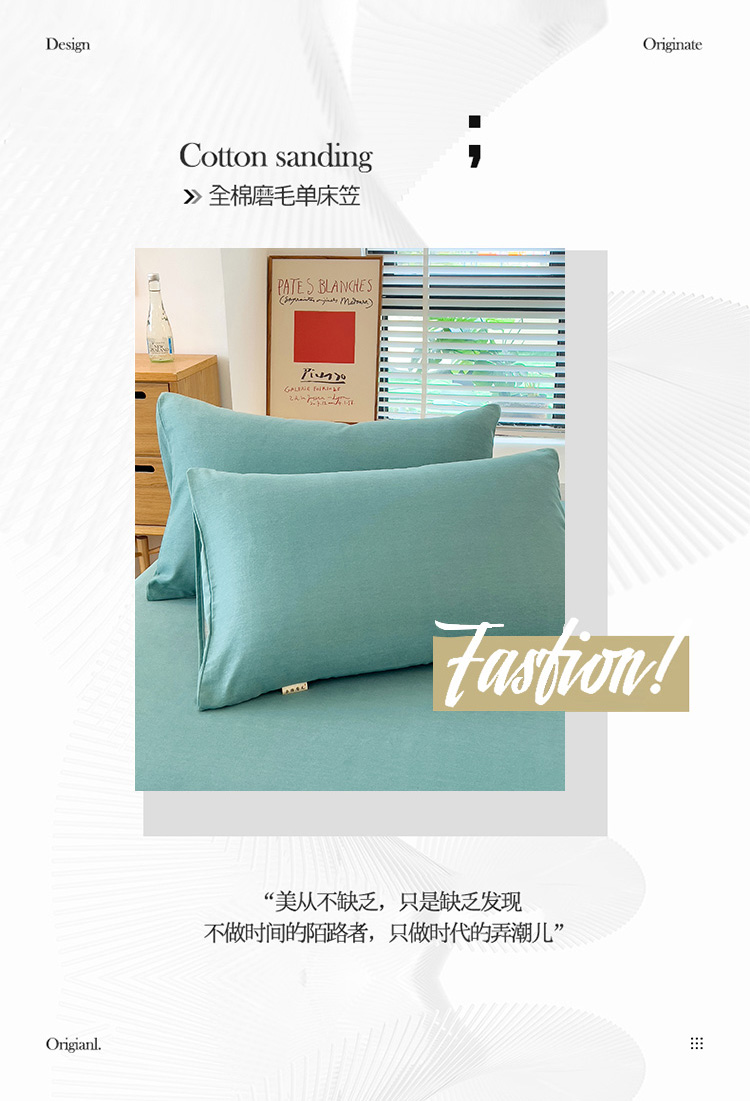 • 91家纺网 家纺一手货源 找家纺 芃成 2022新款全棉磨毛单床笠 浅绿