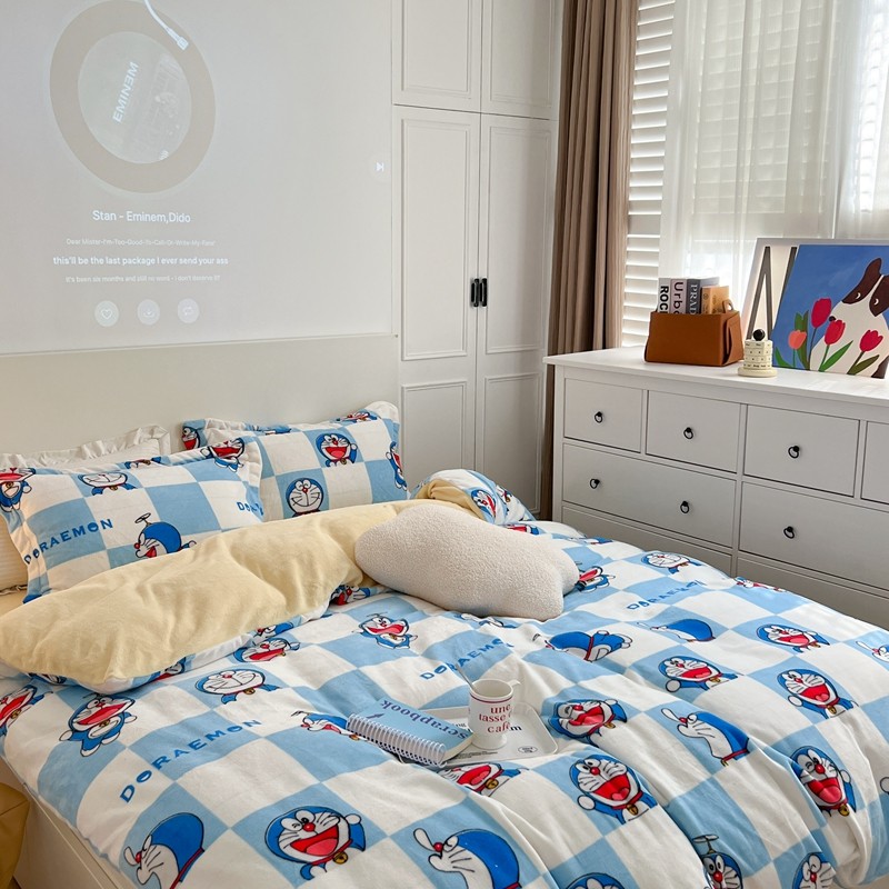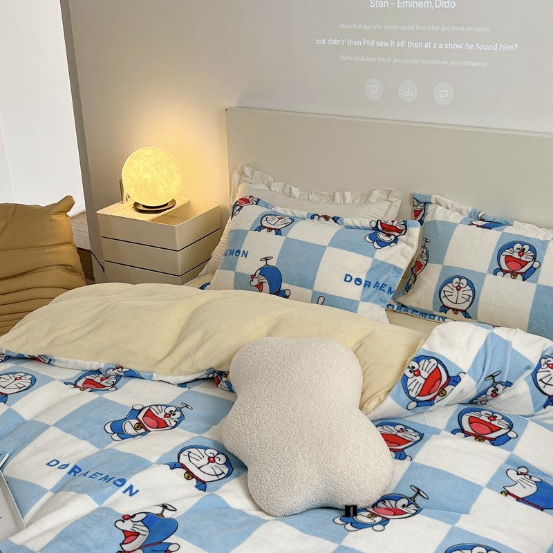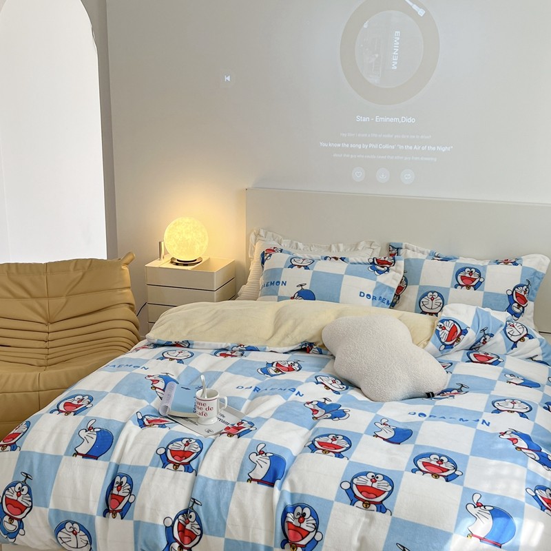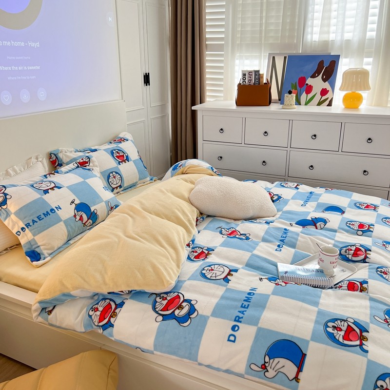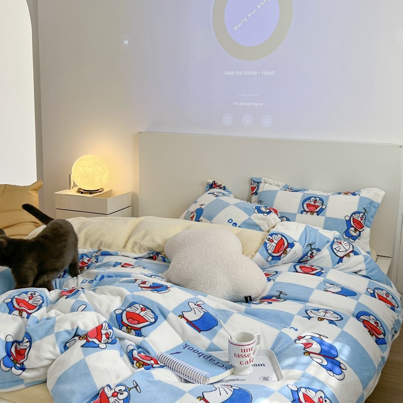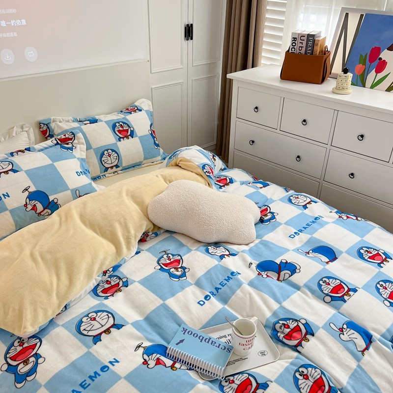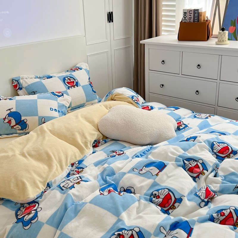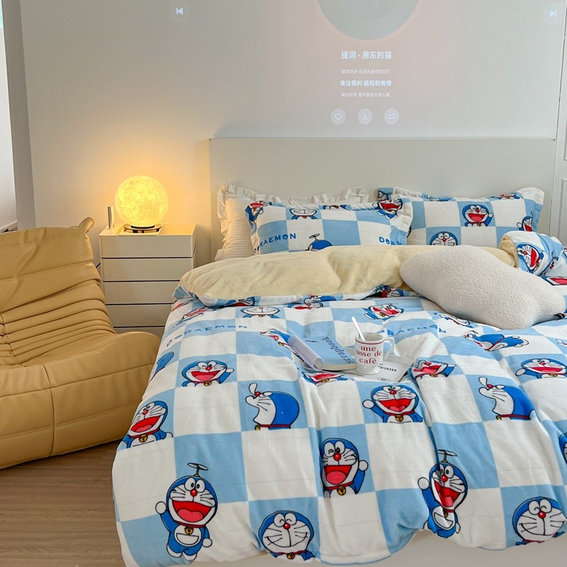 柚子 2022新款正版哆啦A梦牛奶绒四件套 叮当猫拼图