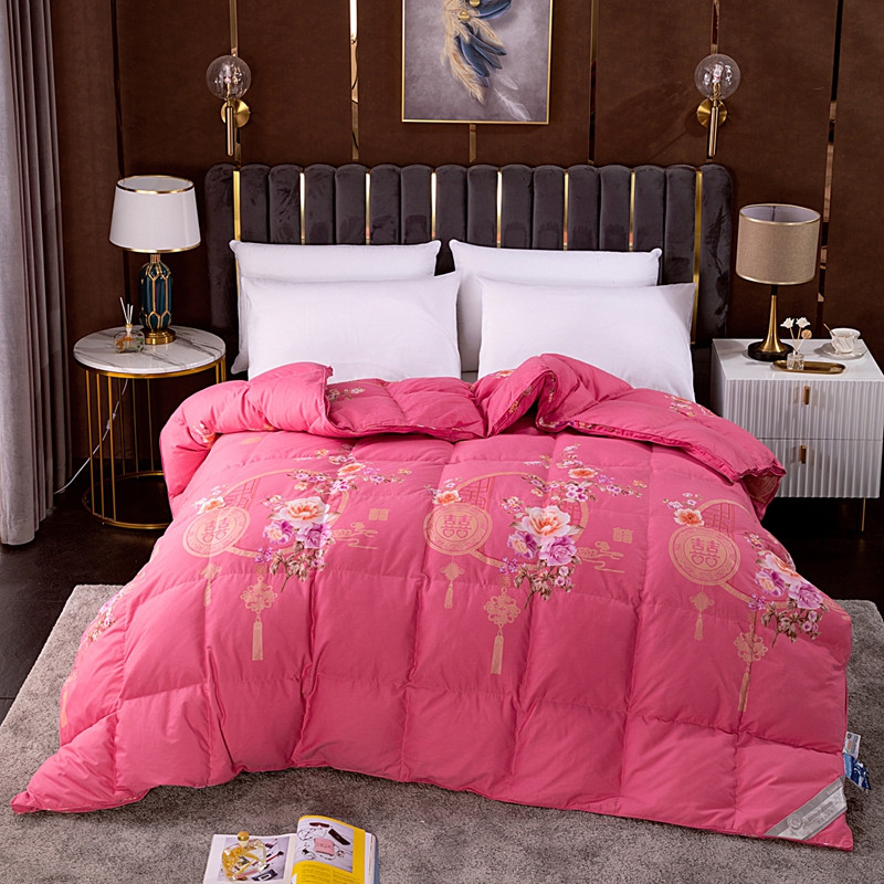 (总)锦瑞羽绒 2024新款全棉婚庆印花羽绒被,大红,粉