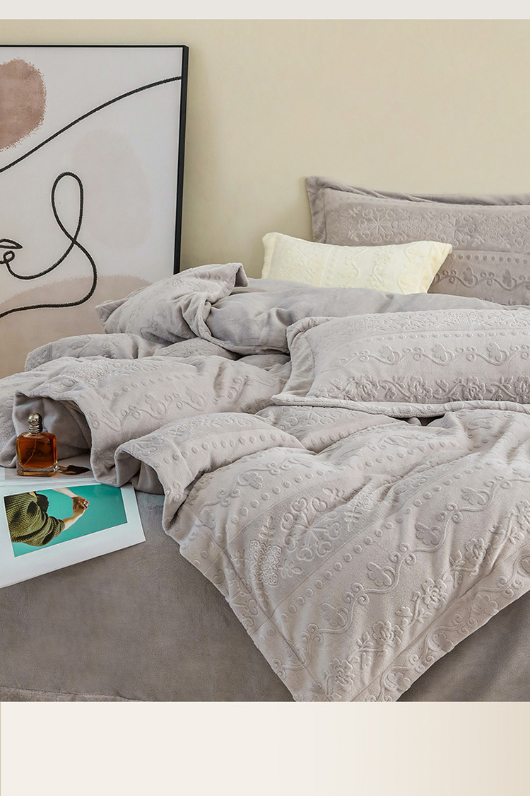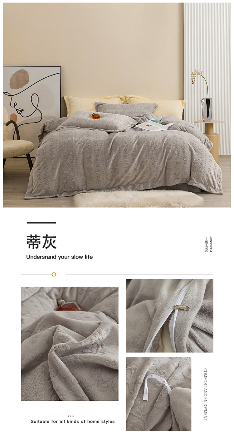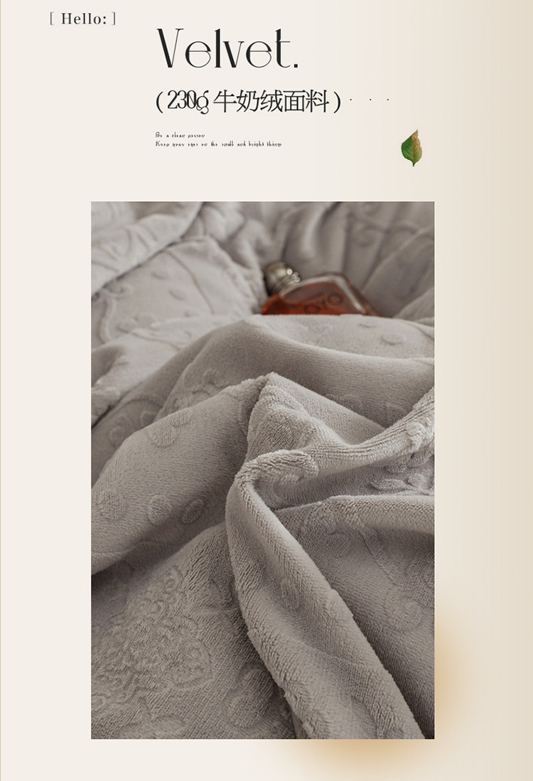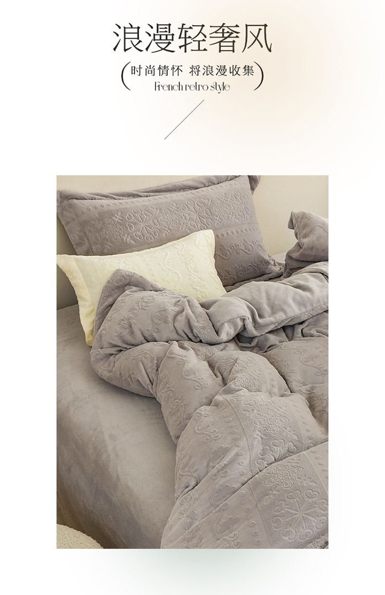名品优仓 2022新款辛西娅系列230g牛奶绒雕花四件套 辛西娅-蒂灰