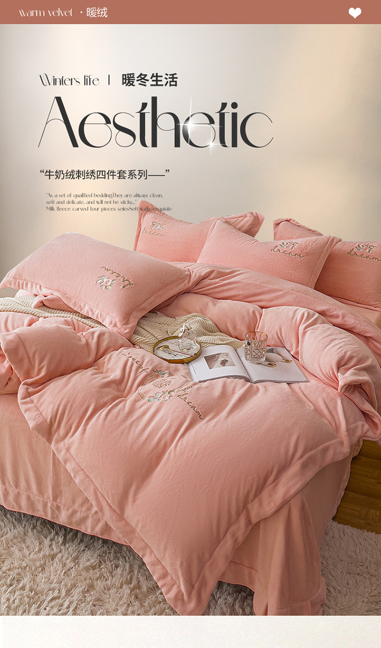 (总)名品优仓 2025新款220克牛奶绒绣花四件套-珊瑚,珊瑚-宝石蓝,珊瑚-粉色,珊瑚-姜黄,珊瑚-米杏,珊瑚-沫粉,珊瑚-杏粉