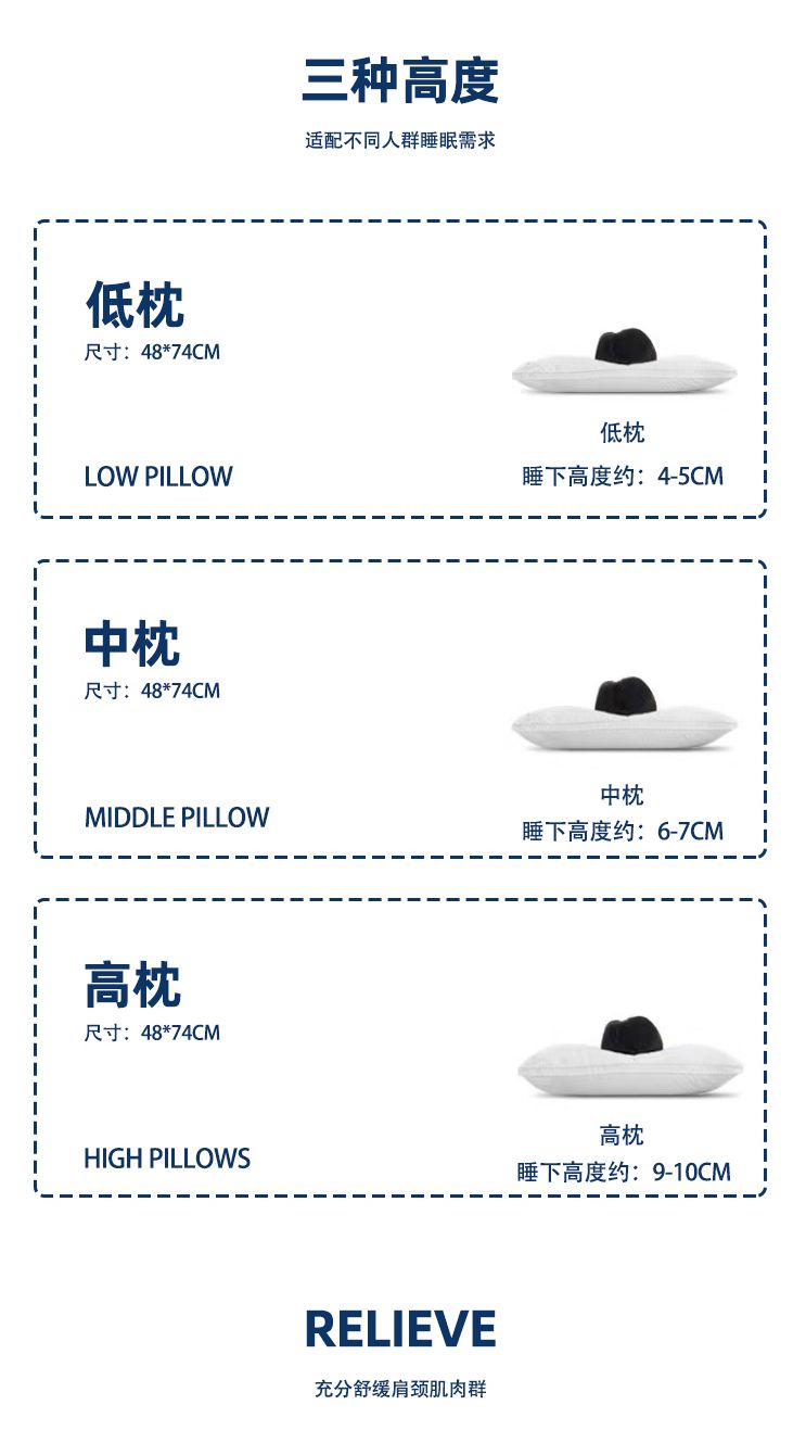 4.枕头有低、中、高三款高度可以选择,适合不同人群。
