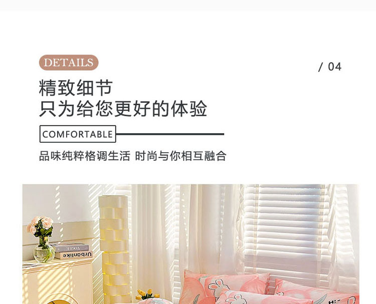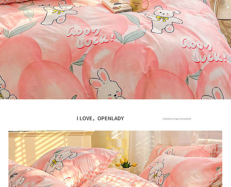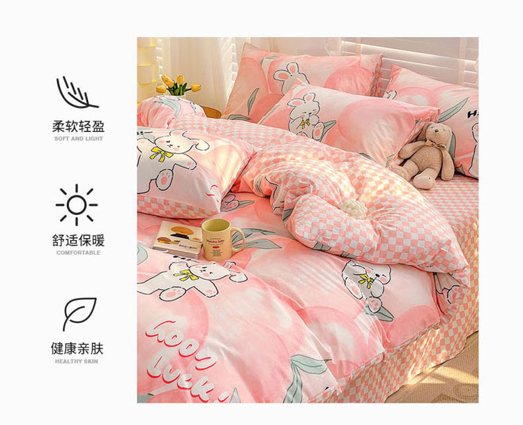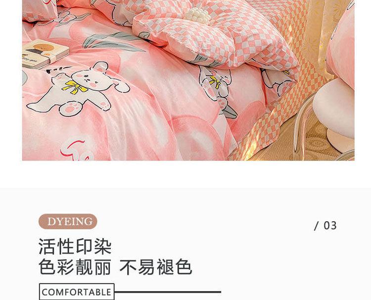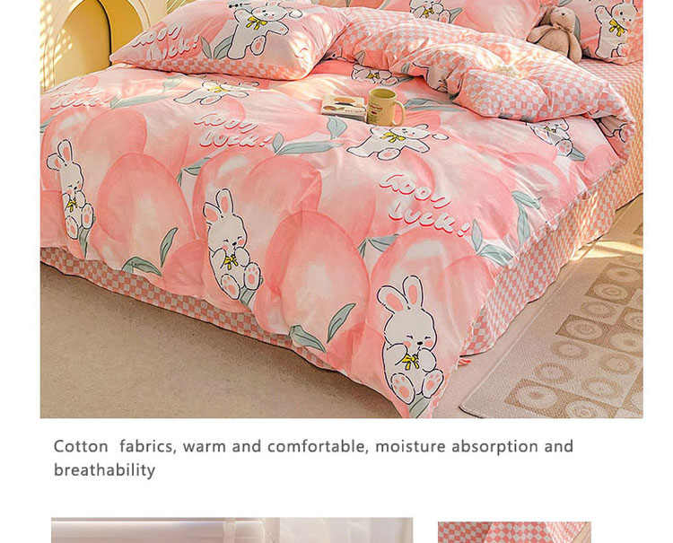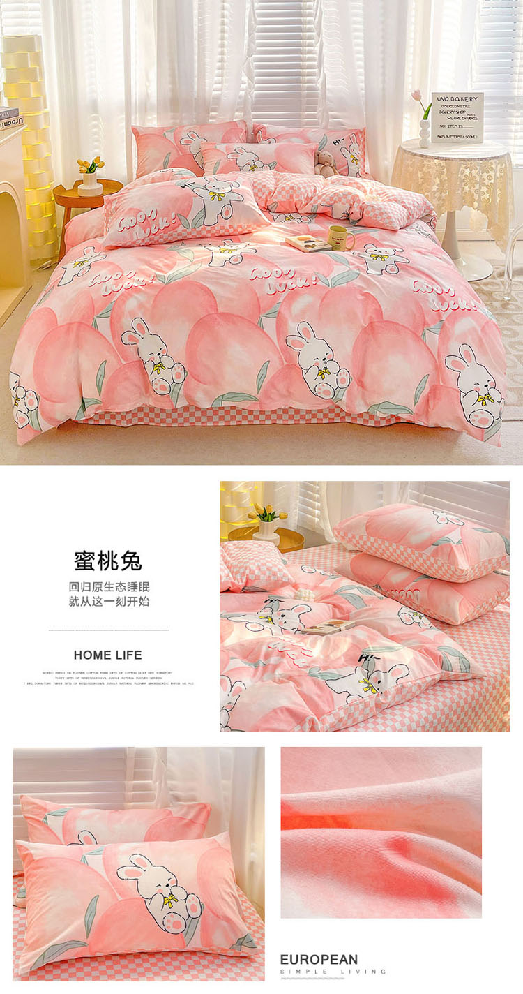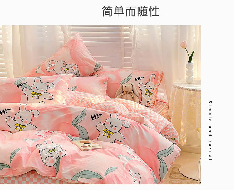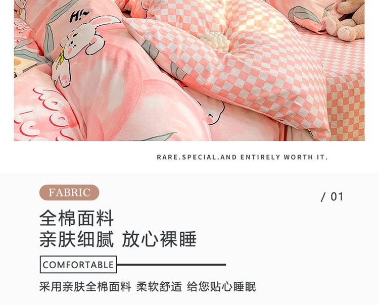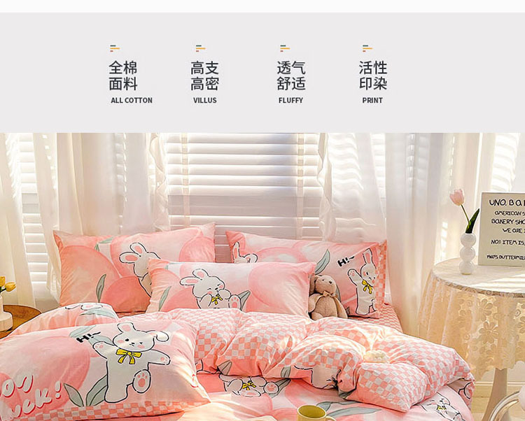 (总)梦家居 2023春季新品小清新系列全棉四件套,幸运兔,爱心兔,铃兰花兔,钱兔柿锦,熊兔乐园,奶咖小兔,西莉娅,魔法小兔,郁金粉兔,郁金紫兔,草莓兔,蜜桃兔,黛西,南瓜小兔,郁金花兔