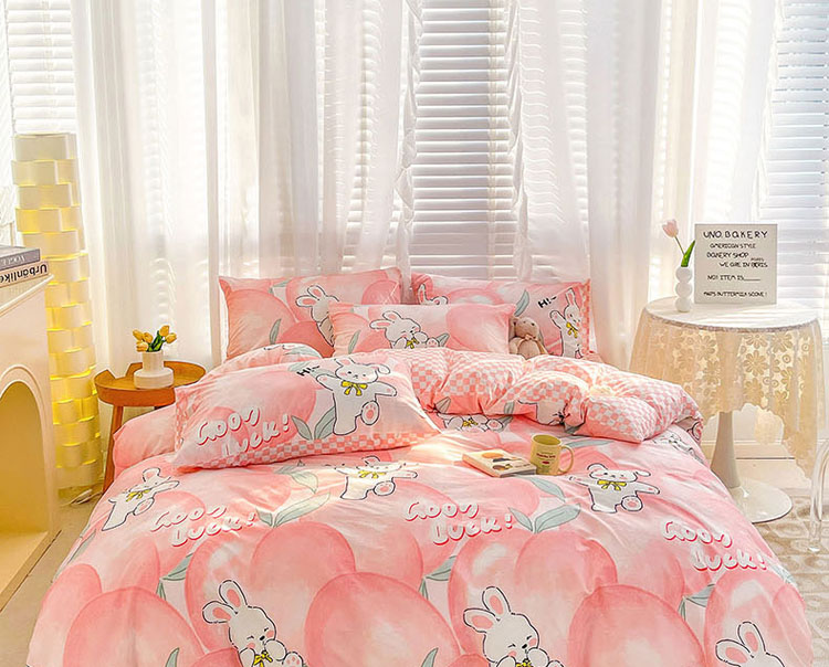 梦家居 2023春季新品小清新系列全棉单被套 蜜桃兔