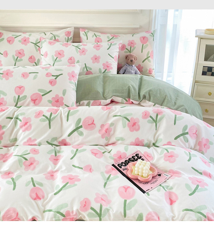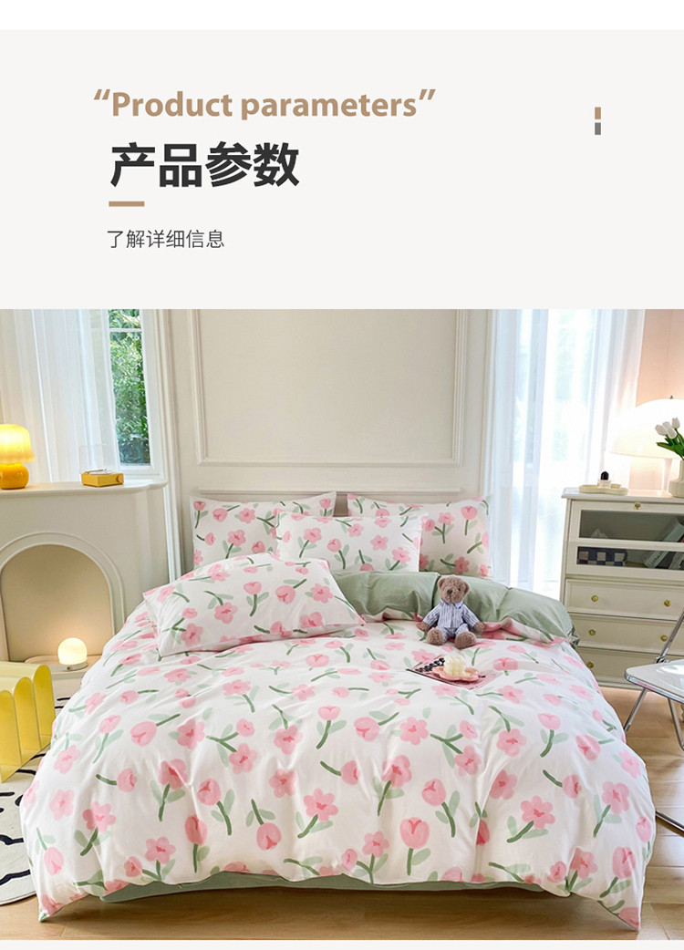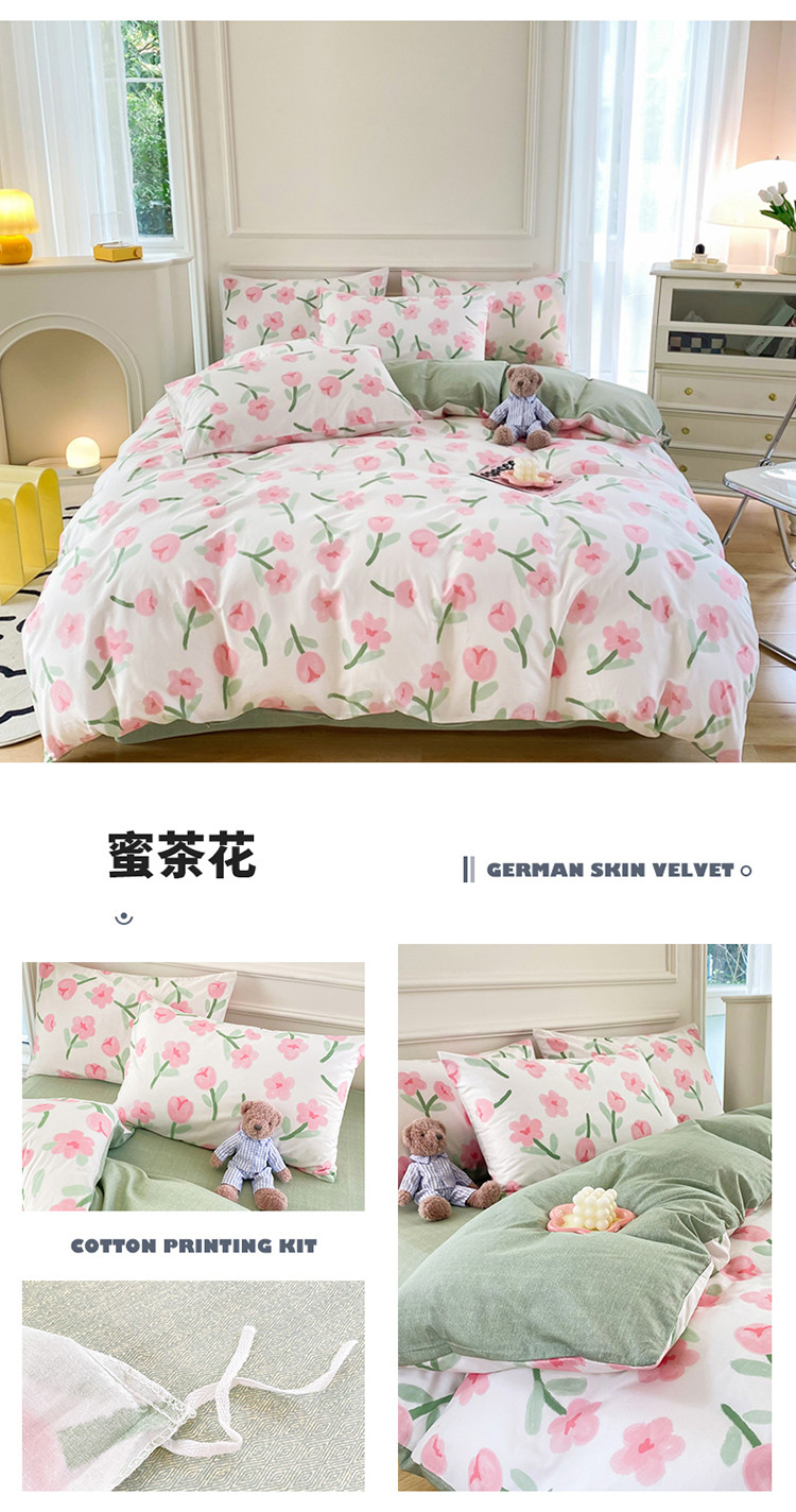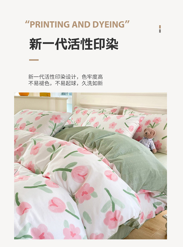 星巴k家纺 2023全棉13372花卉印花简约四件套蜜茶花