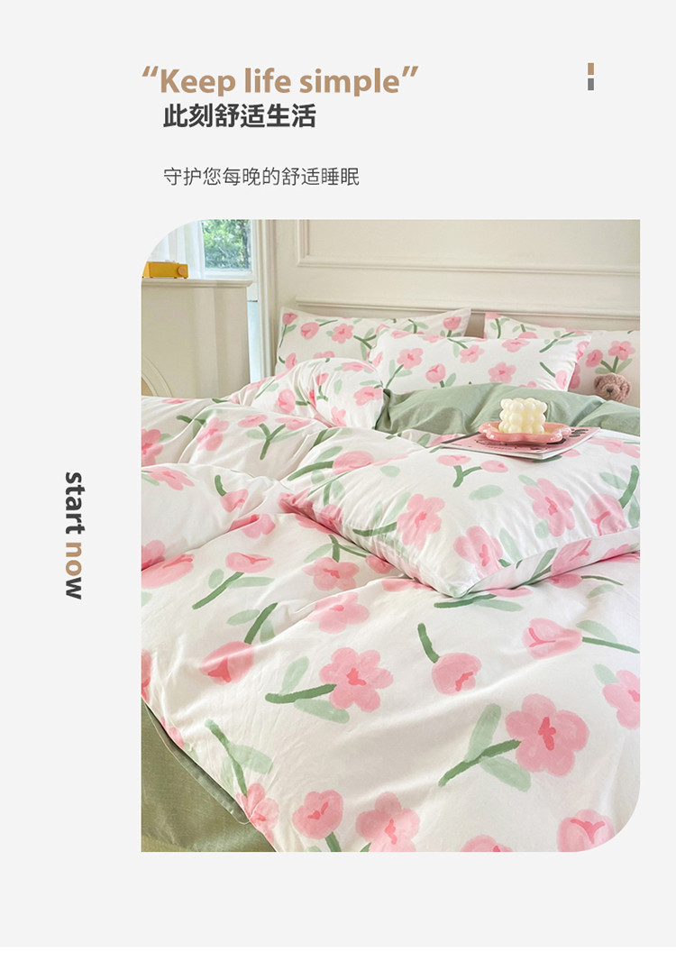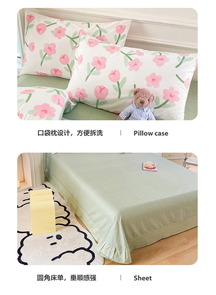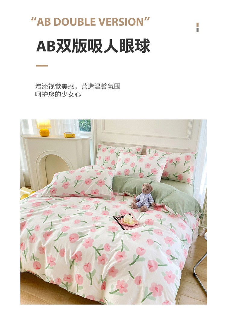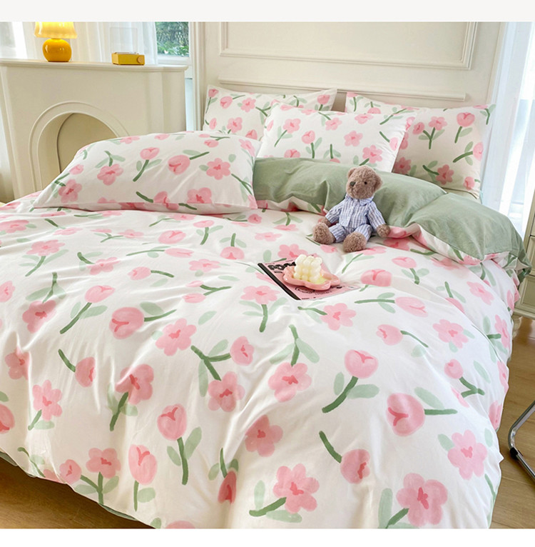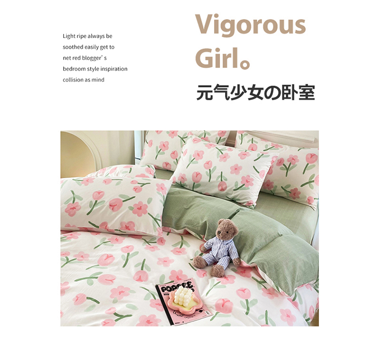星巴k家纺 2023全棉13372花卉印花简约四件套蜜茶花