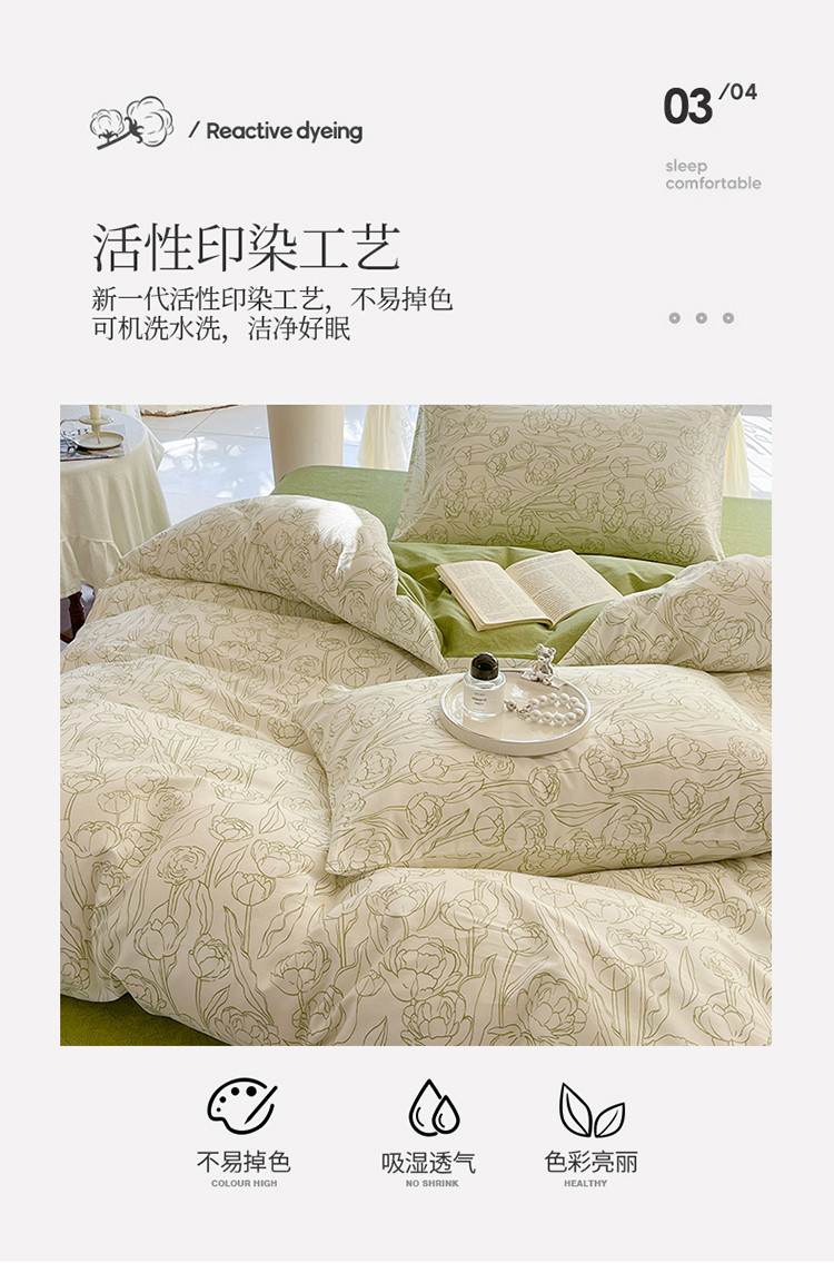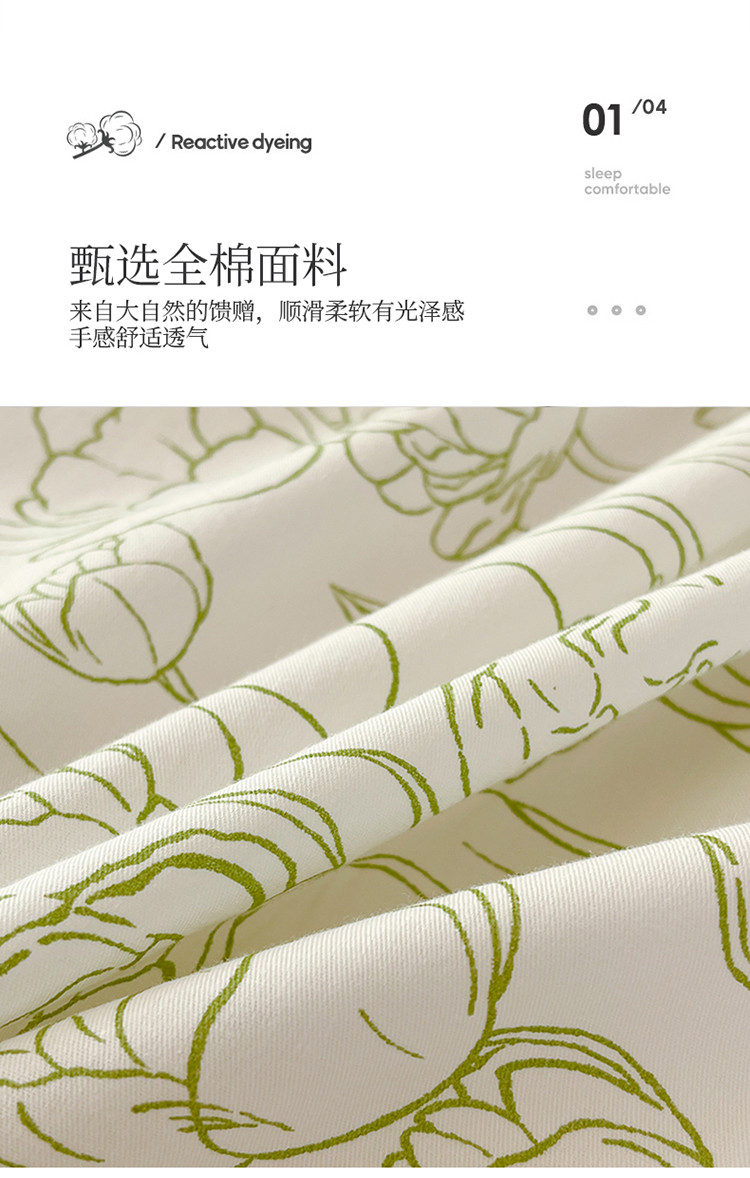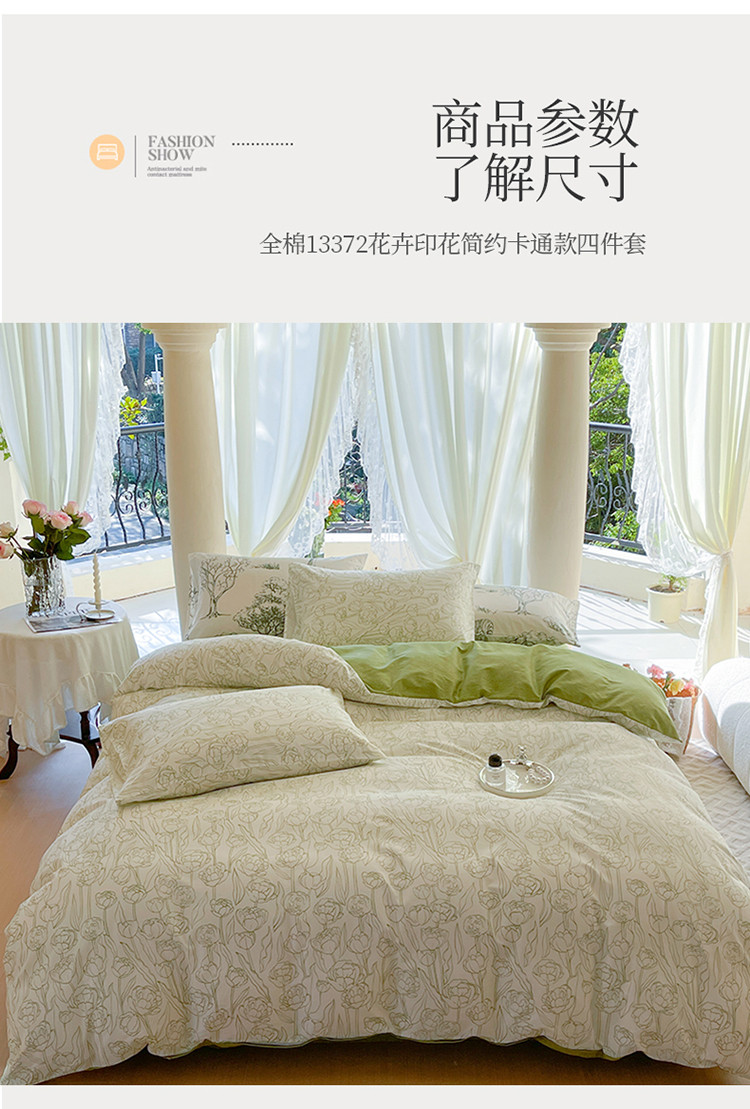 商品名称:星巴k家纺2023新款全棉13372花卉印花简约卡通款多规格四件套晚风