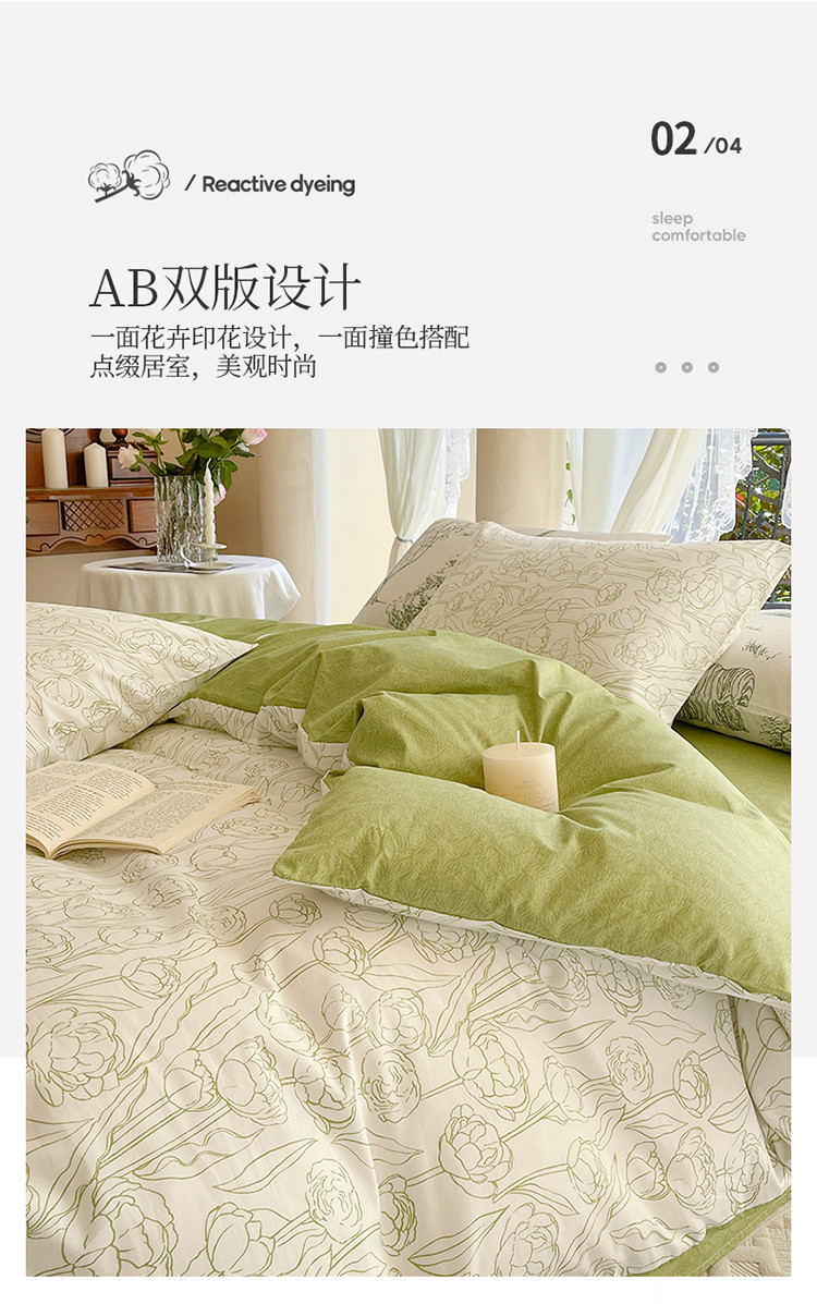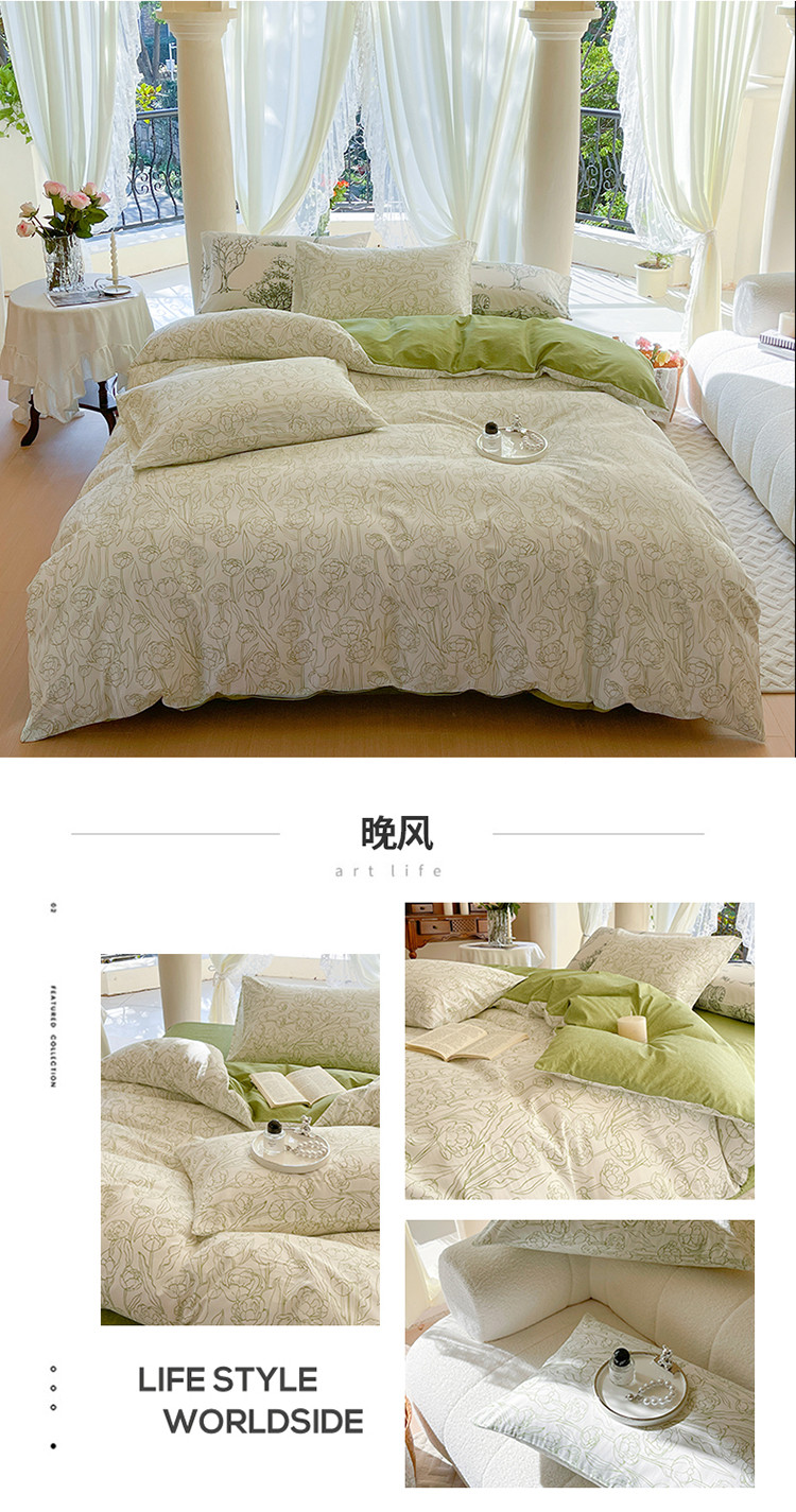 星巴k家纺2023新款全棉13372花卉印花简约卡通款多规格四件套晚风