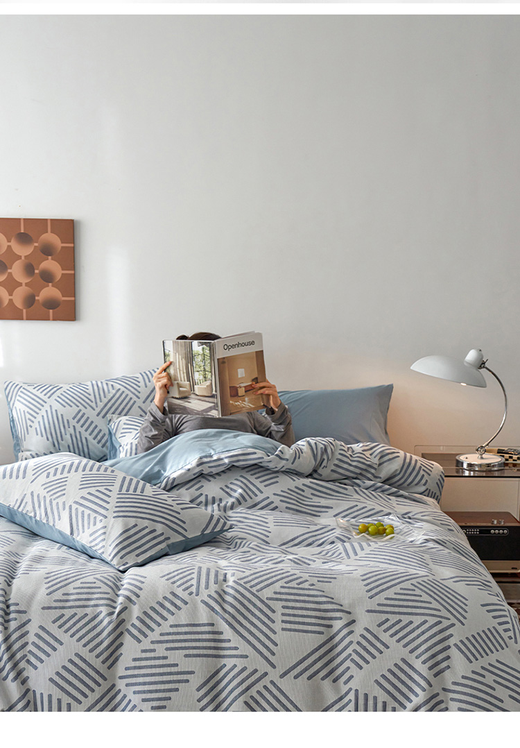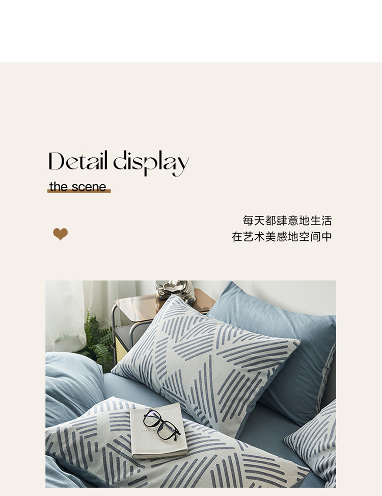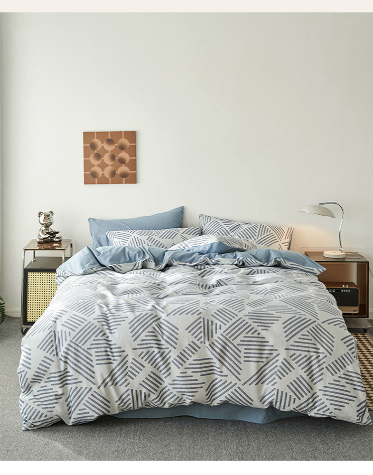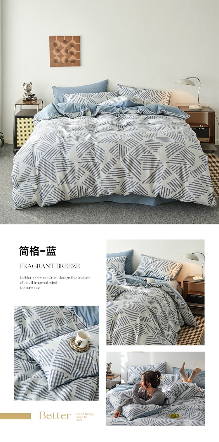商品名称:雅居纺 2023新款全棉三层纱提花四件套 简格-蓝