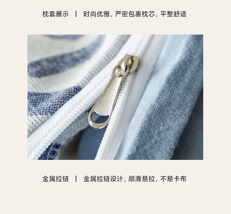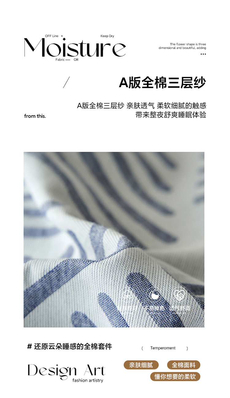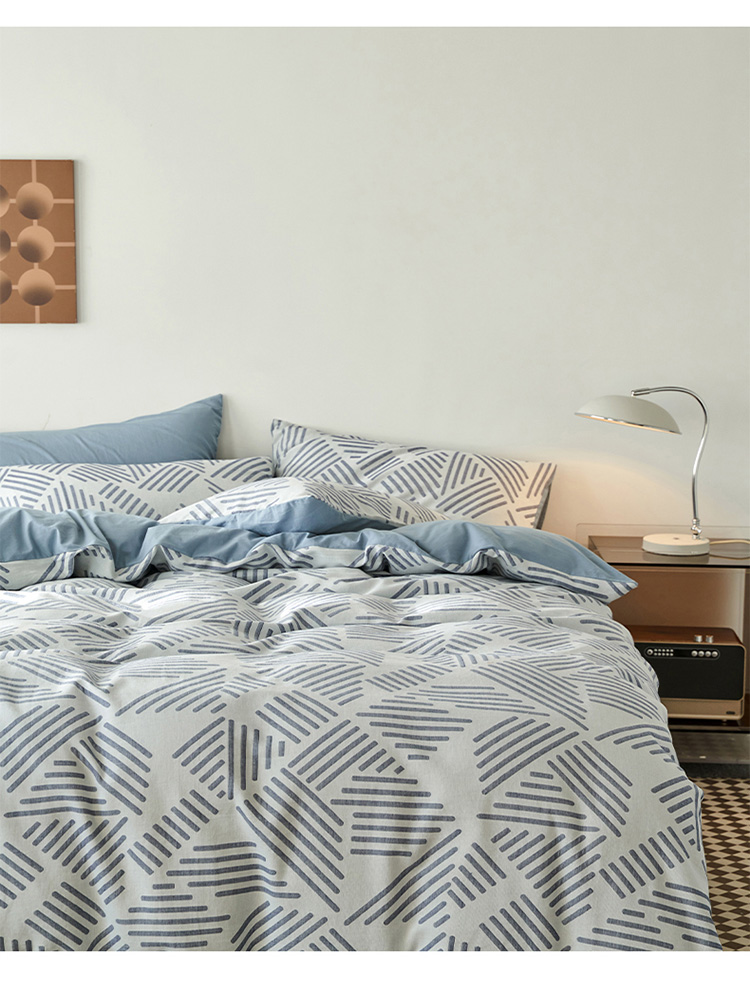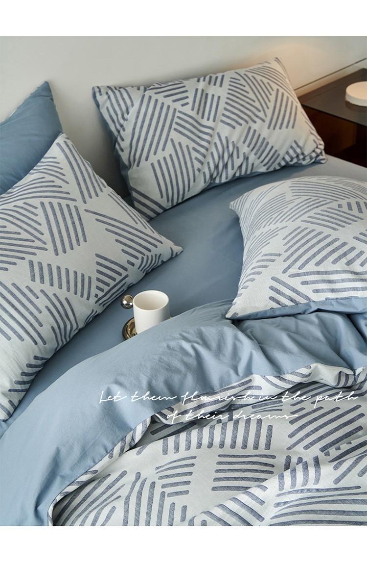 商品名称:雅居纺 2023新款全棉三层纱提花四件套 简格-蓝