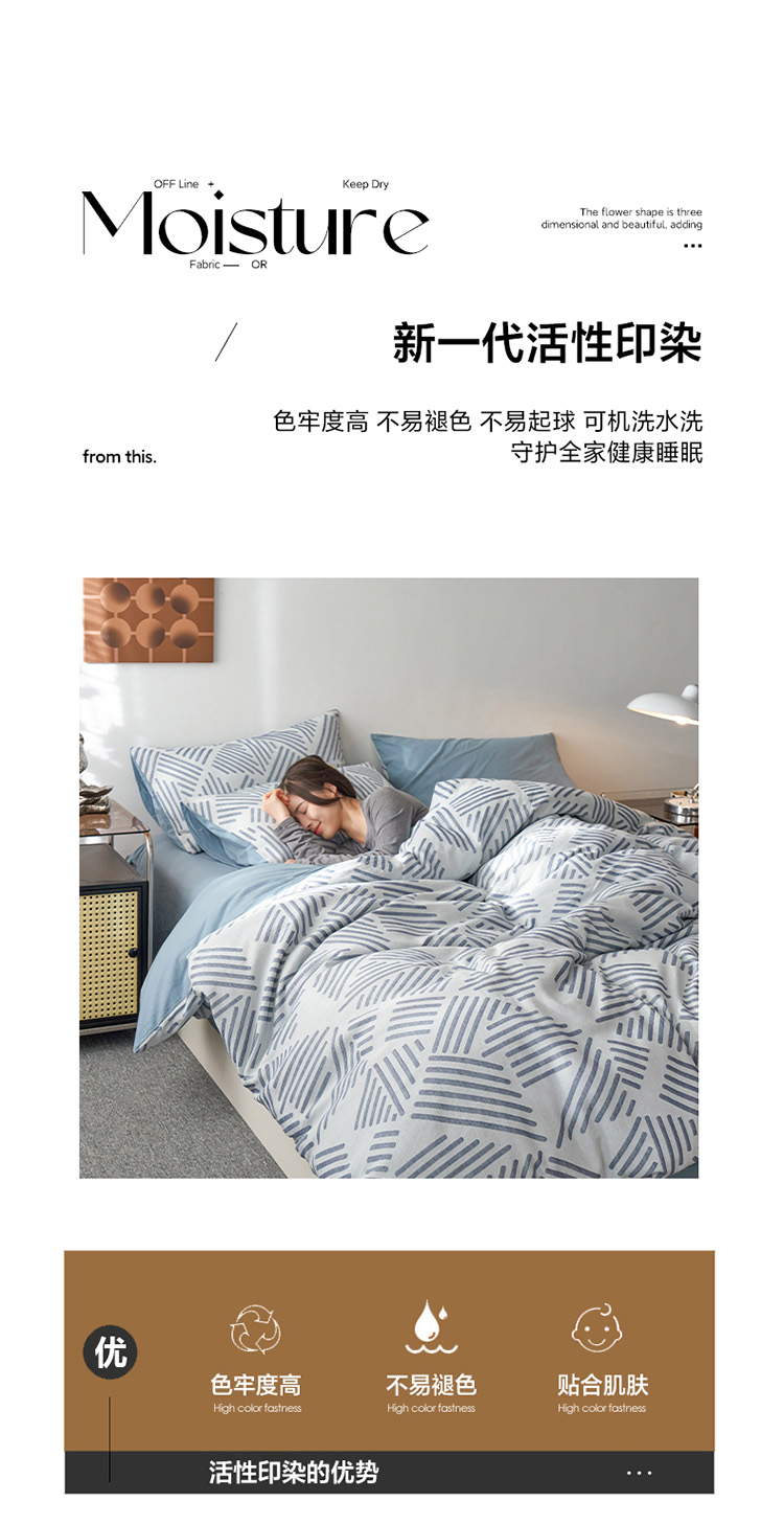 (总)雅居纺家纺 2022新款13070全棉印花四件套,波纹,多彩,简笔画,莓关系,奶油绿豹纹,倾心,数字