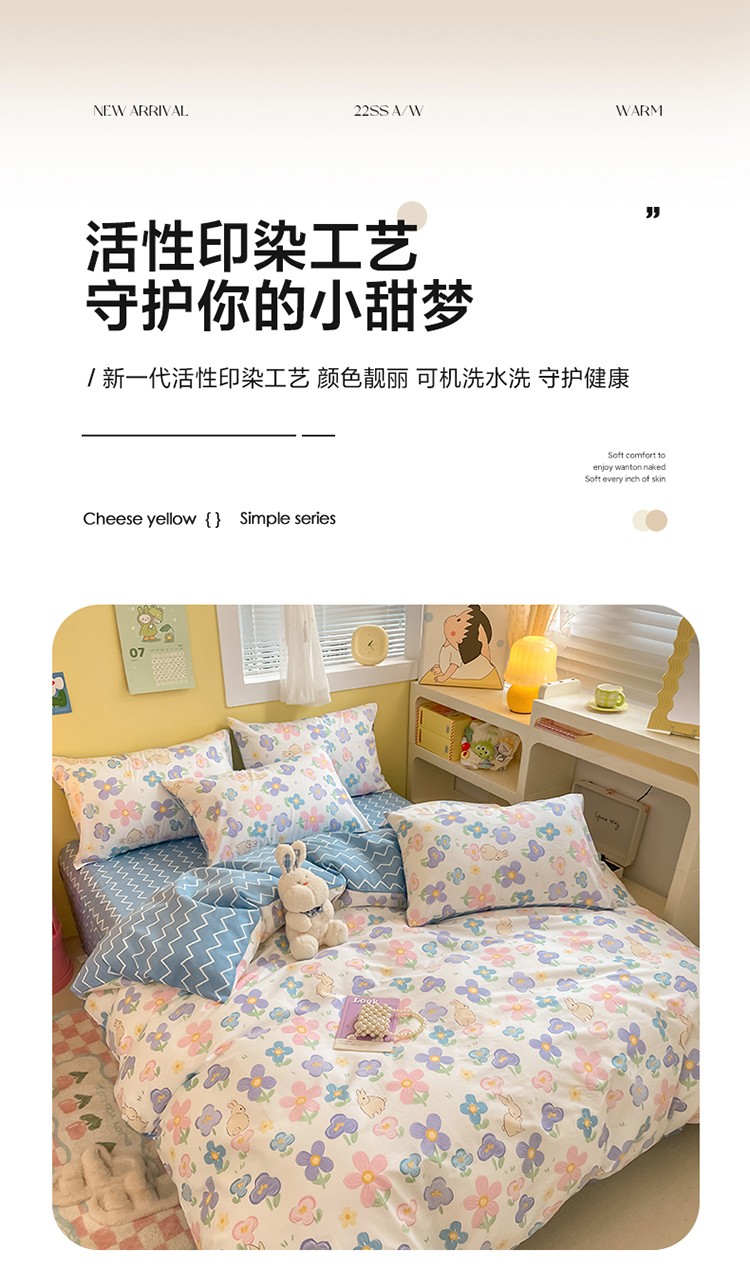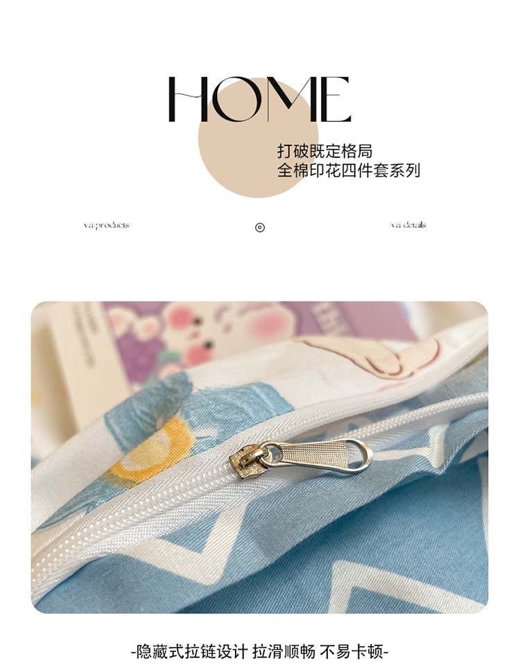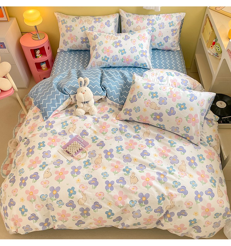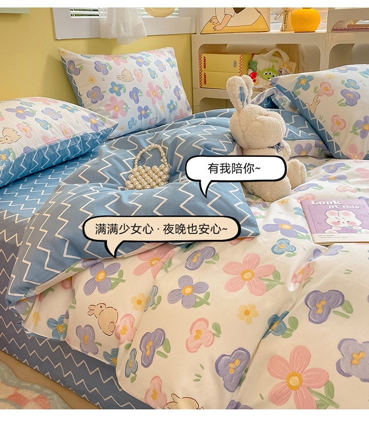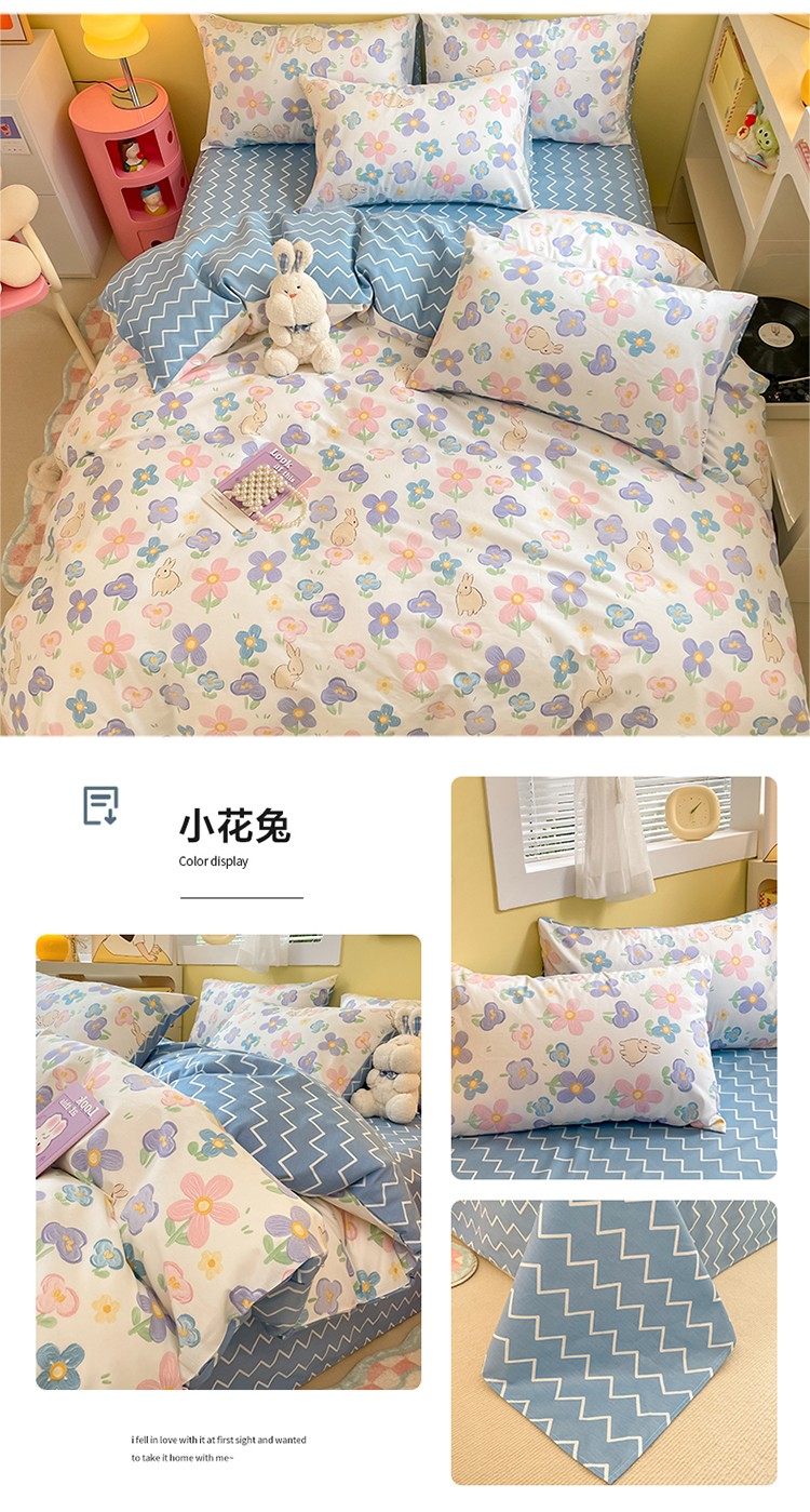 商品名称:雅居纺 2023新款全棉13070小清新四件套 小花兔