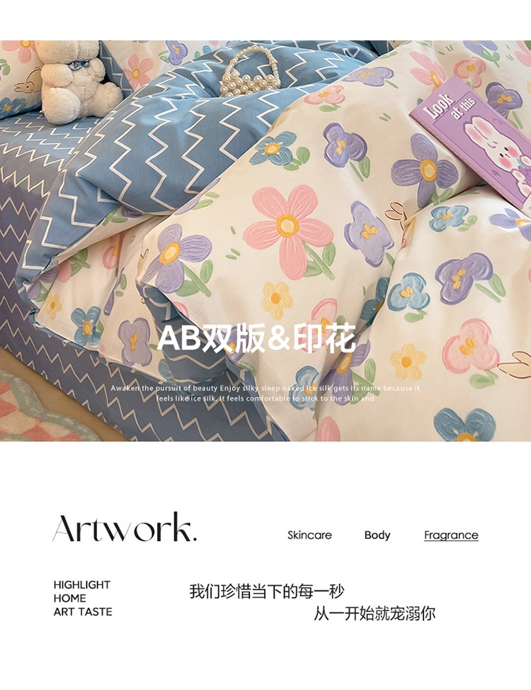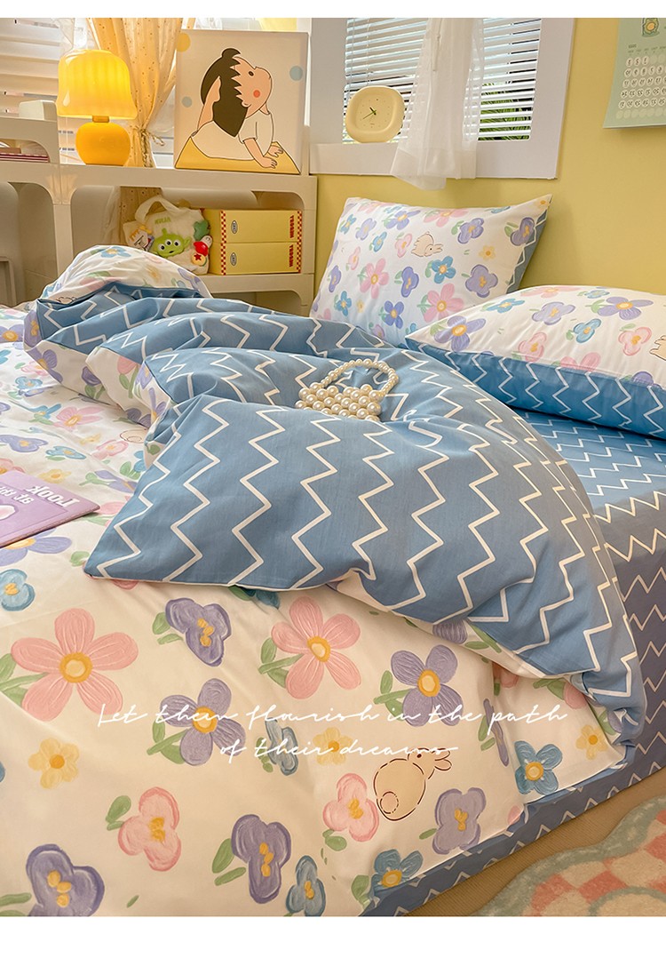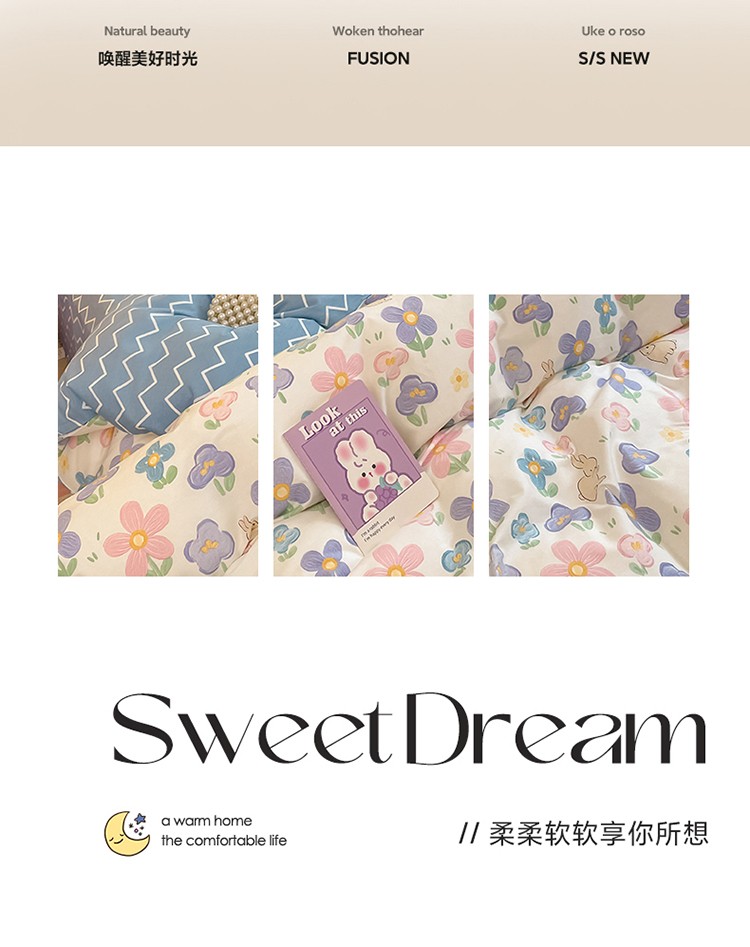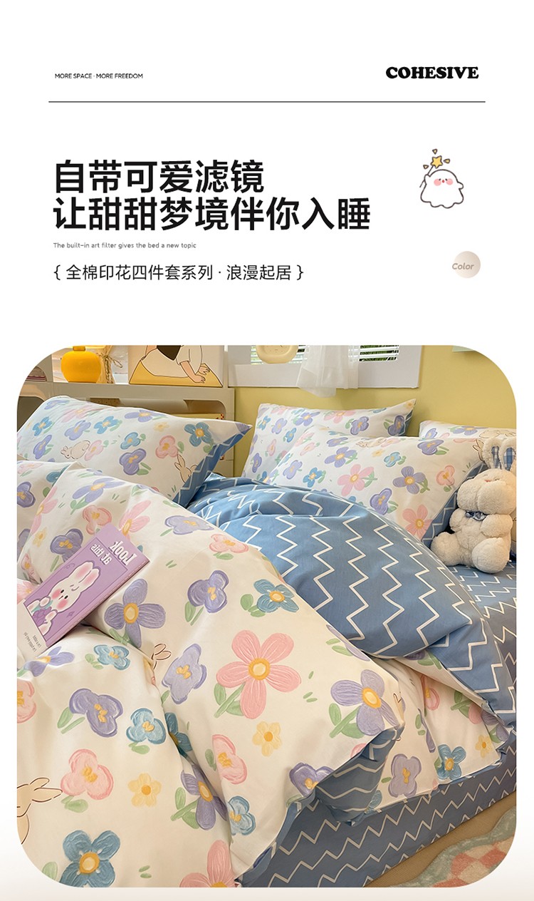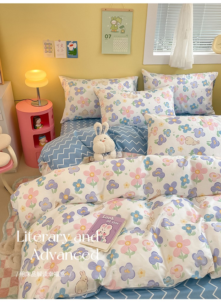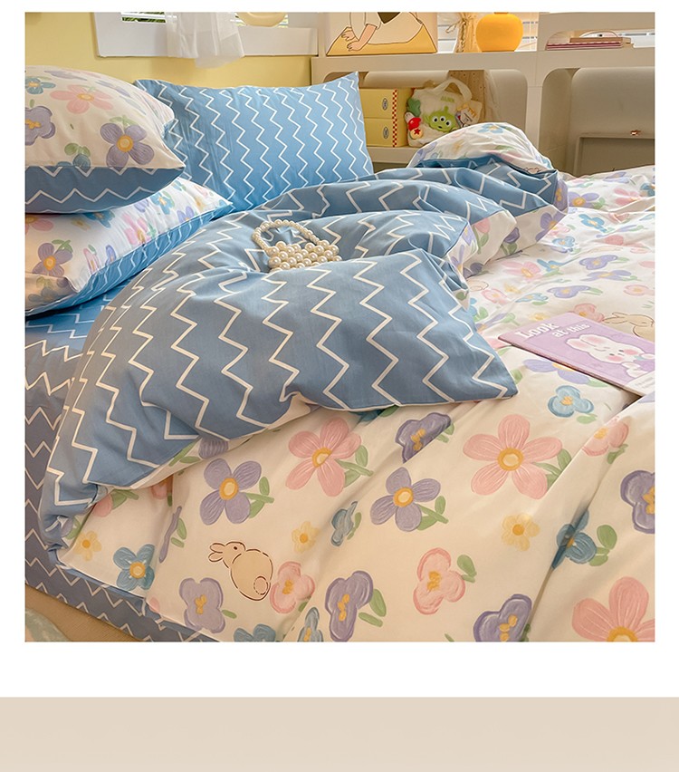 商品名称:雅居纺 2023新款全棉13070小清新四件套 小花兔