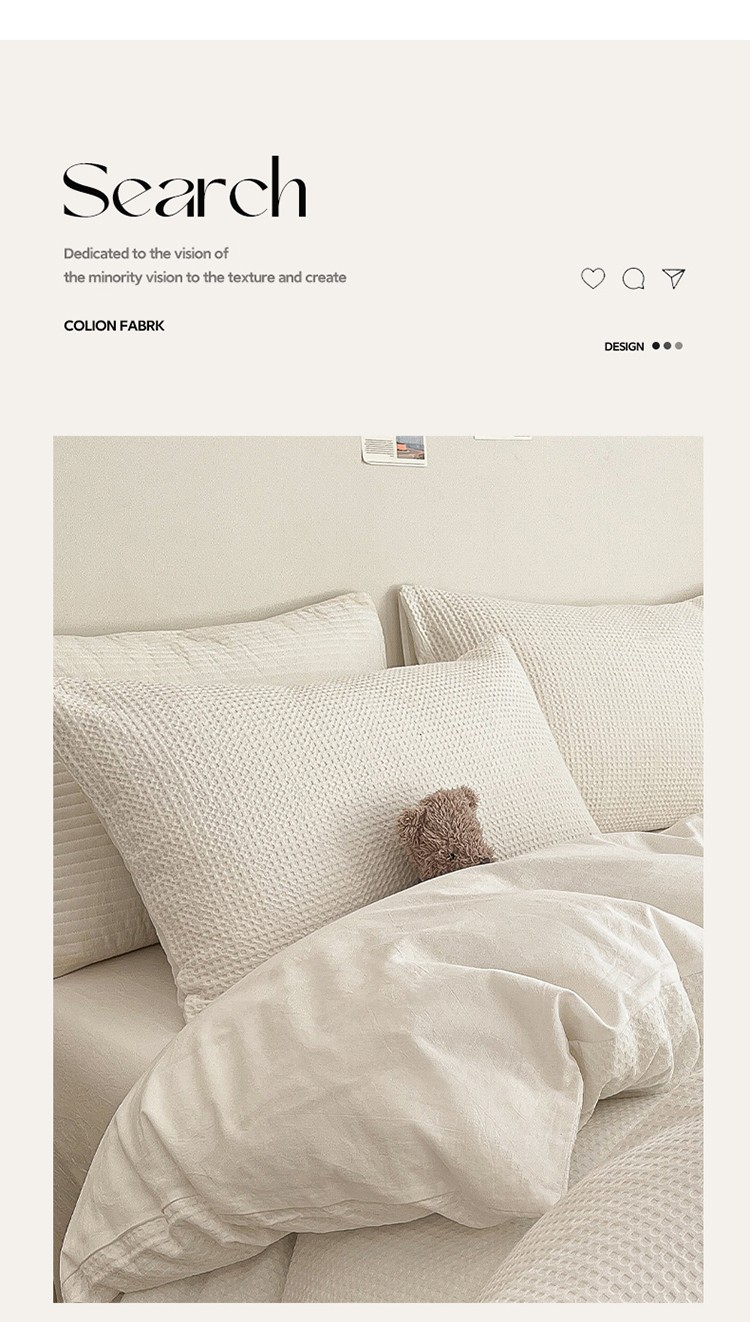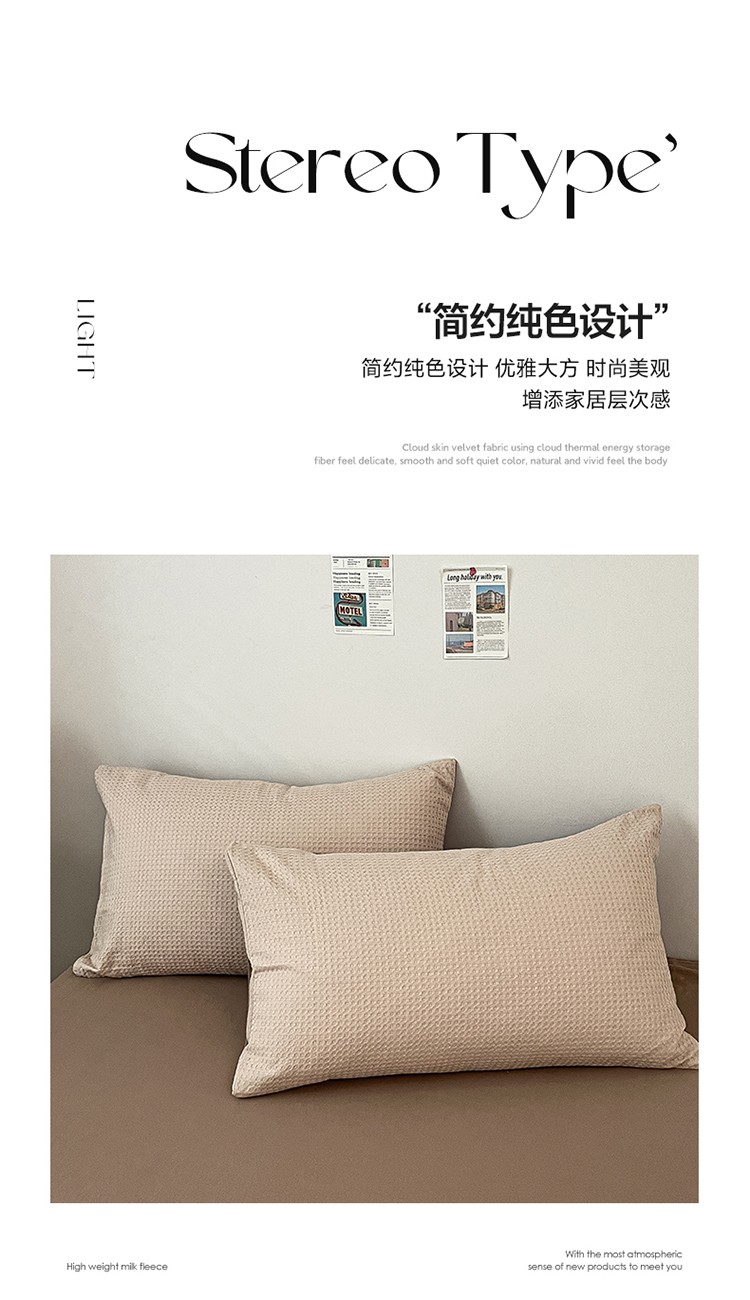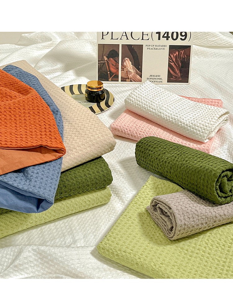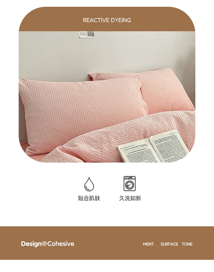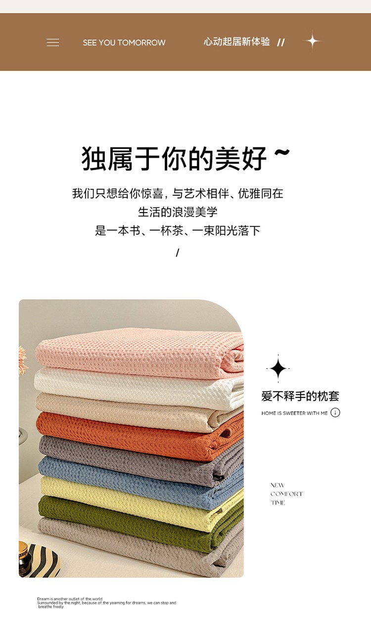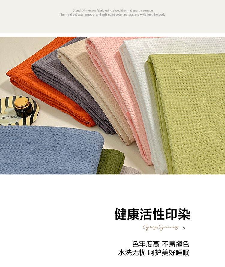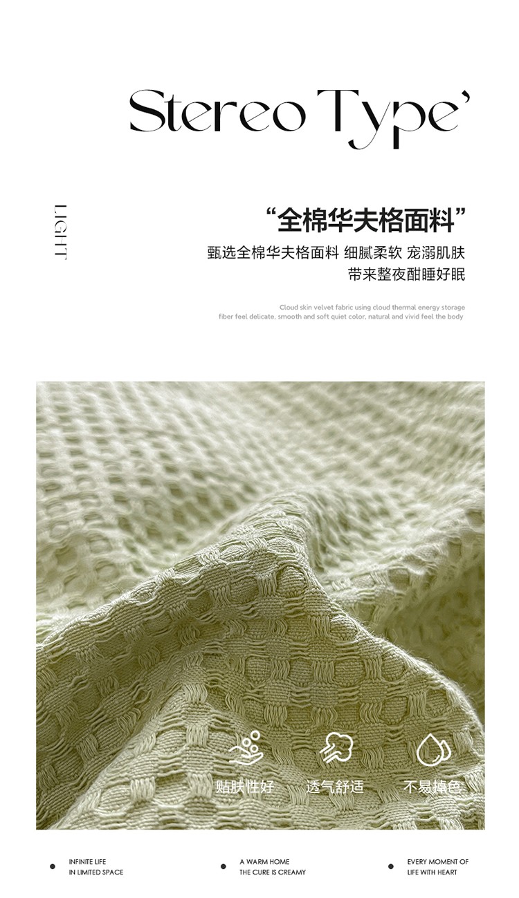 (总)雅居纺家纺 2022新款全棉华夫格普通款四件套,焦糖,米驼,奶油白,柔粉,深灰,雾蓝,月灰