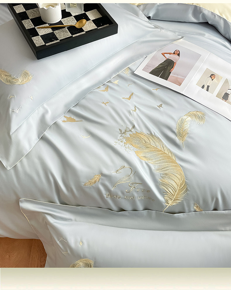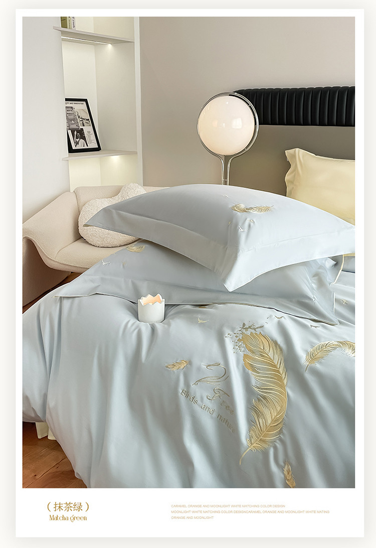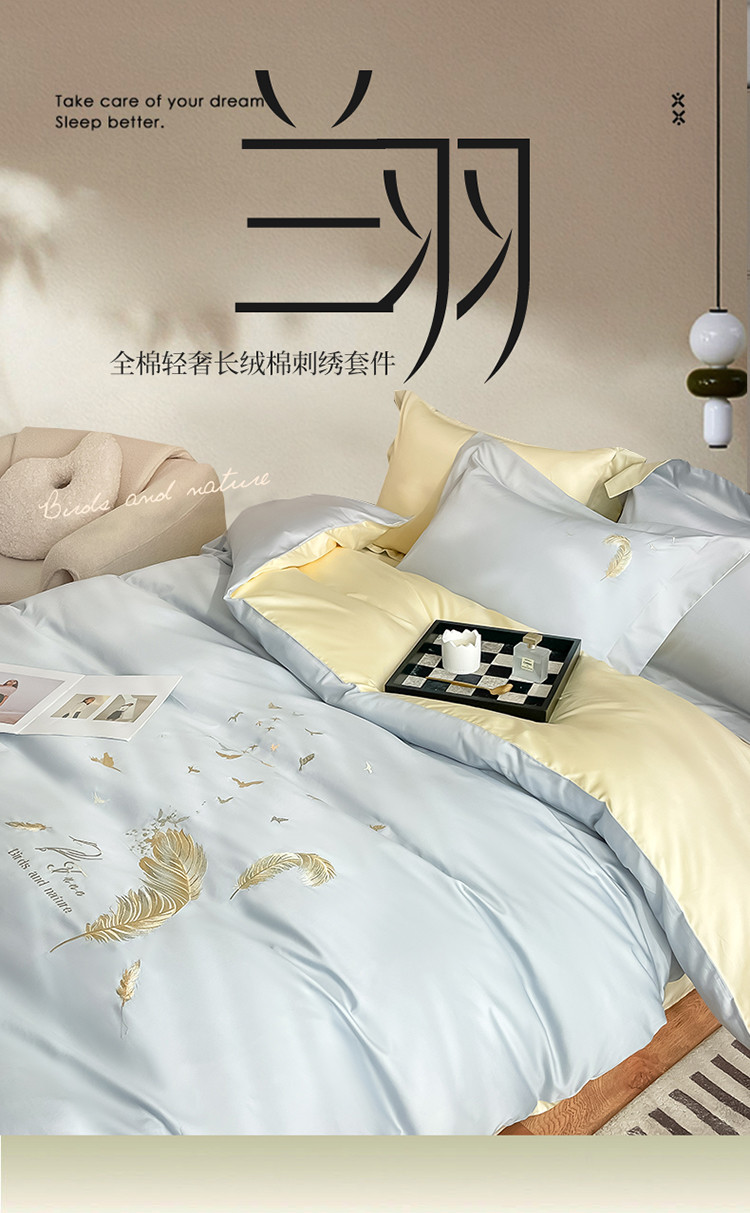 蓝米卡夫2024新全棉高级感长绒棉刺绣四件套兰羽系列 兰羽-海澜奶黄