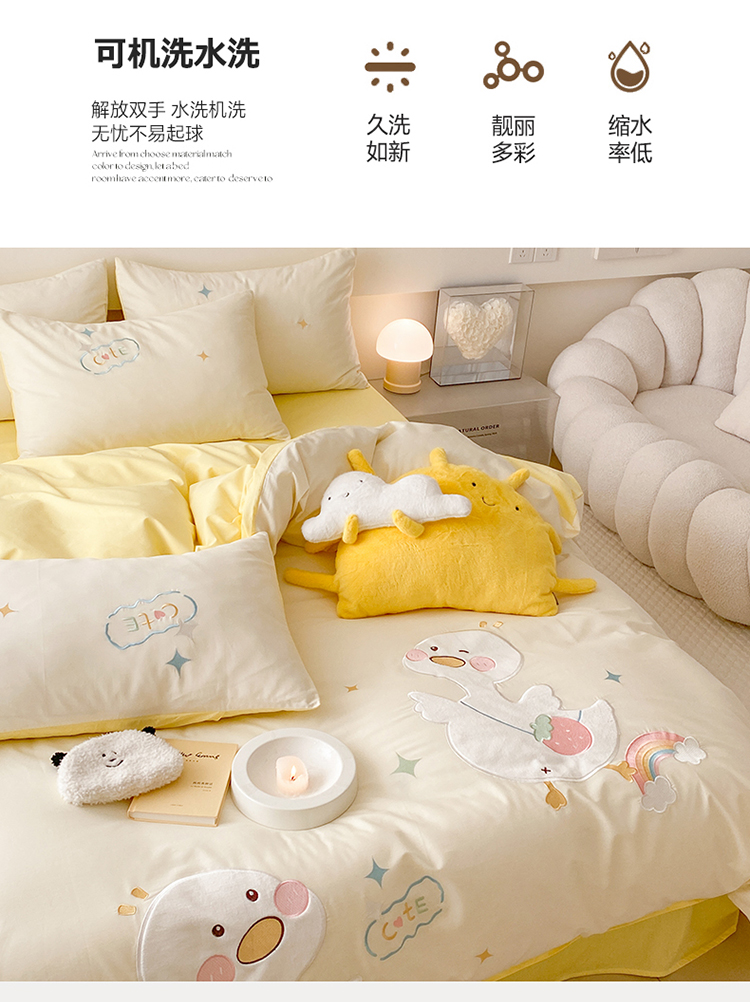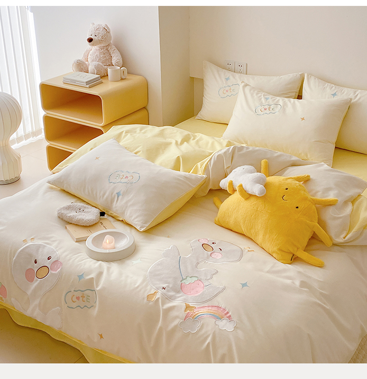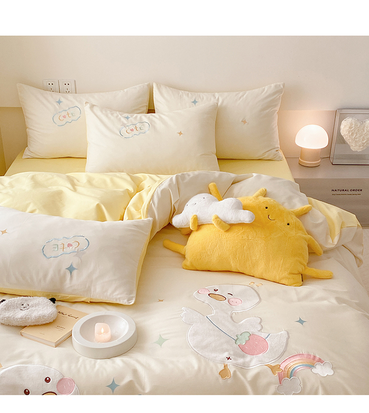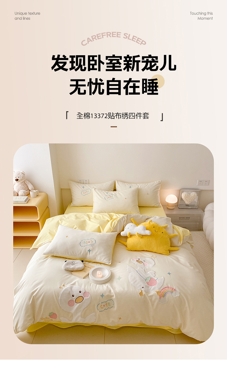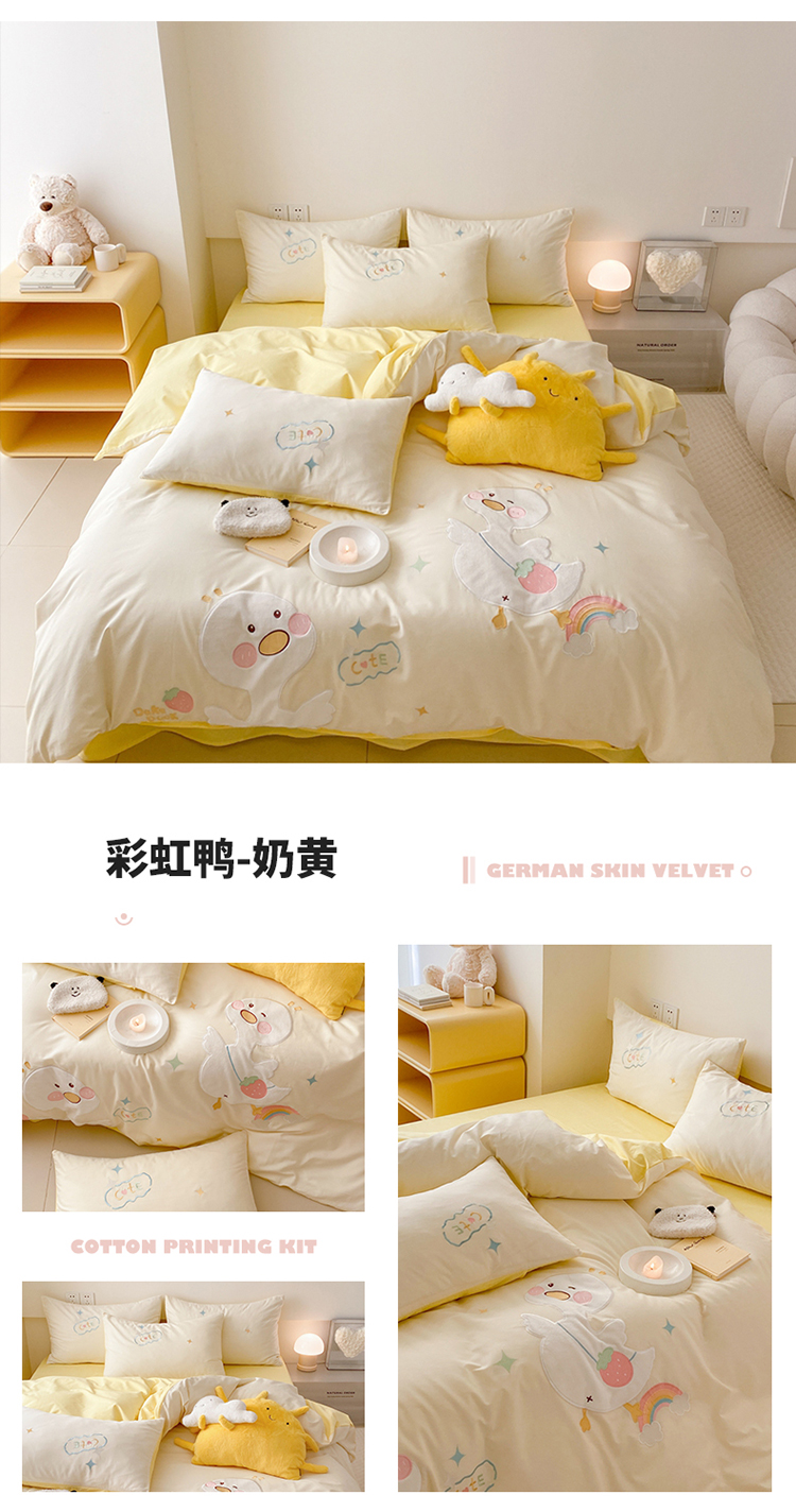 商品名称:蜜柚 2024新款全棉贴布绣四件套 彩虹鸭-奶黄