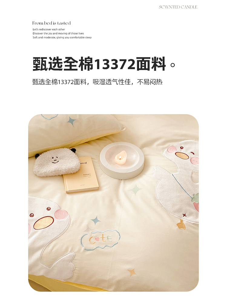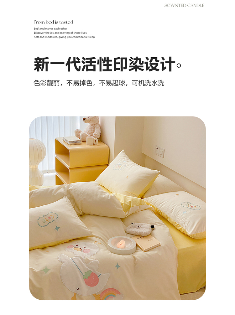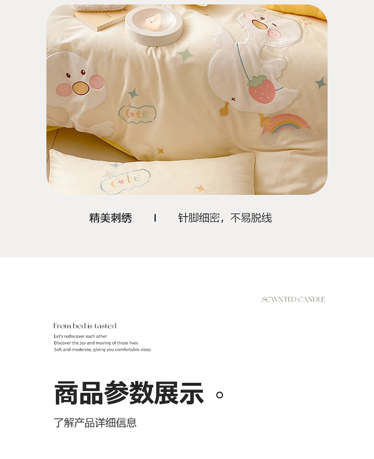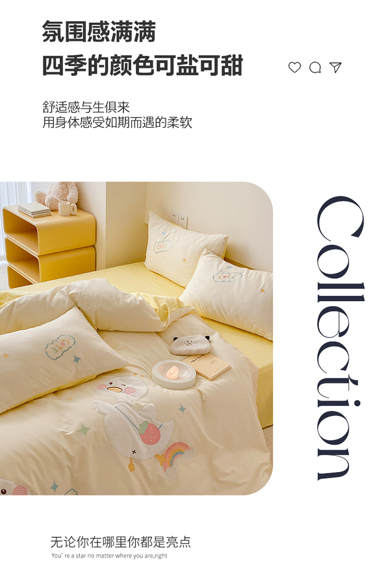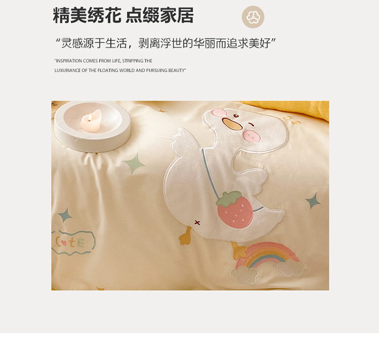 商品名称:蜜柚 2024新款全棉贴布绣四件套 彩虹鸭-奶黄