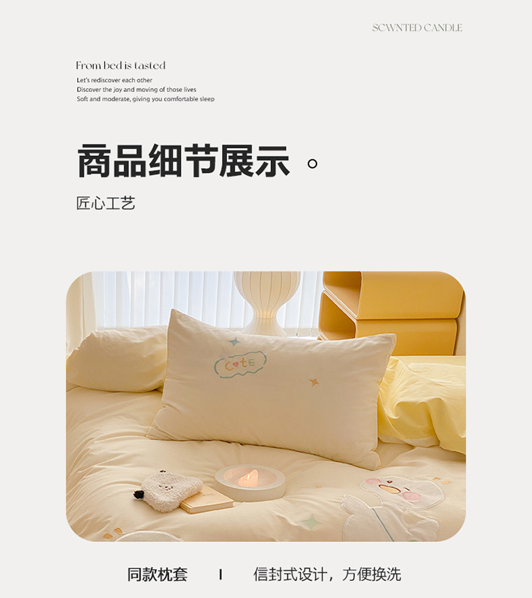 (总)蜜柚 2025秋冬新款色织水洗棉贴布花边款四件套,童趣-浅玉,童趣-卡其,童趣-洋气红