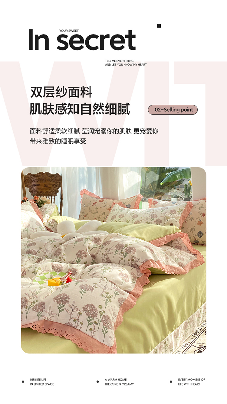 (总)艾米家居 2025新款A类天丝棉冰丝法式花边褶皱款四件套,绿野仙踪褶皱款,秘密花园皱褶款