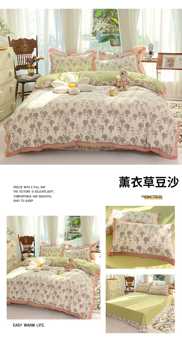 (总)艾米家居 2025秋冬新款牛奶绒泡泡印花花边四件套,豆沙条纹粉,蝴蝶花,太阳花