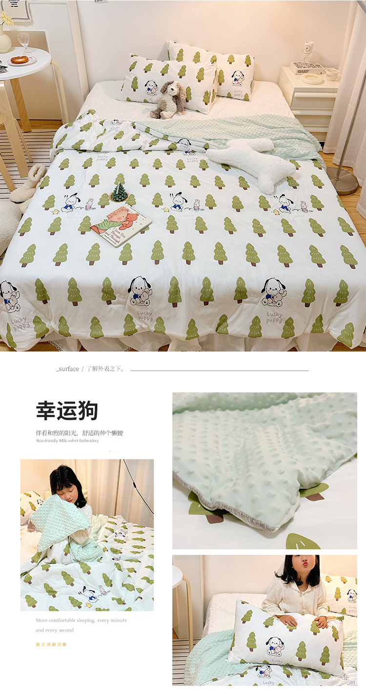商品名称:有货2023爆款春夏夏凉被小清新春秋被卡通针织棉豆豆被 幸运狗