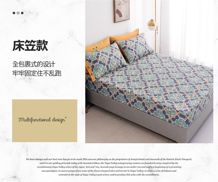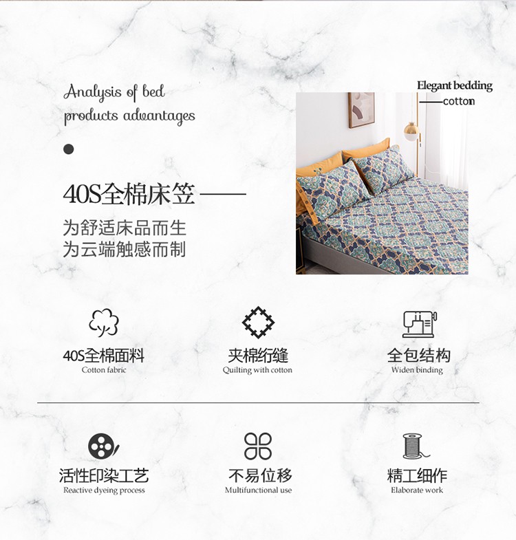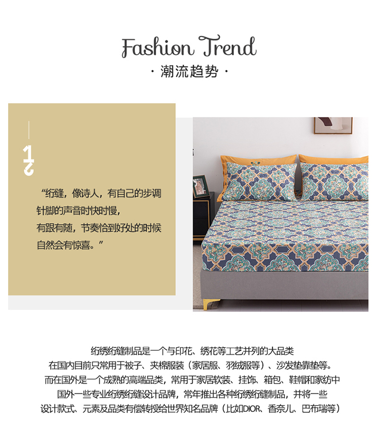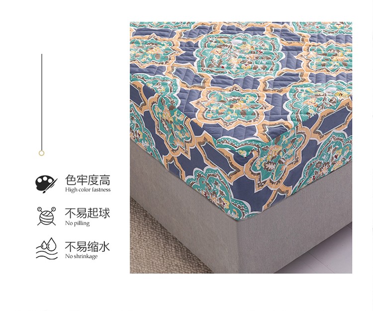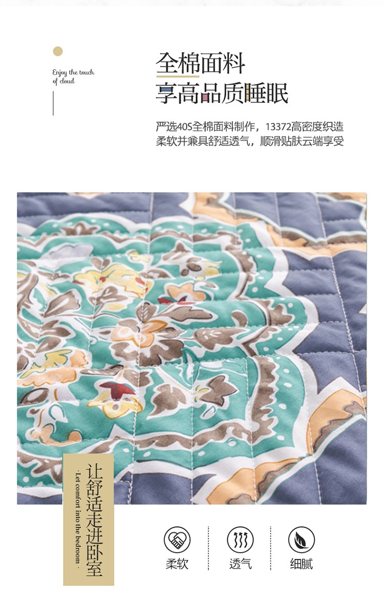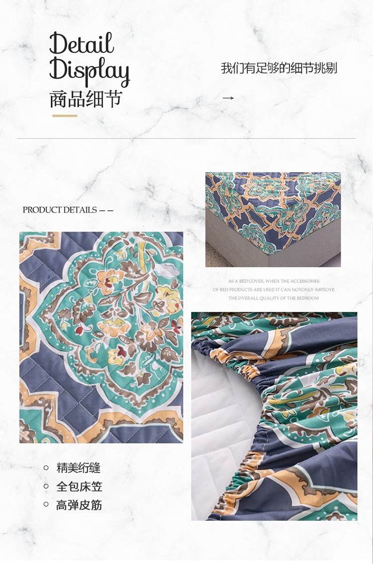 • 91家纺网 家纺一手货源 找家纺 优乐家纺 2023新款全棉印花绗绣系列2 单床笠 时光印记-蓝