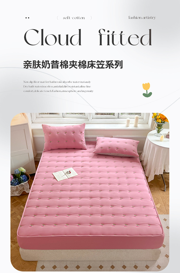 尊康家纺(原磊科) 2024新款亲肤奶昔棉夹棉床裙-风雅 风雅-黛粉,风雅-黛粉