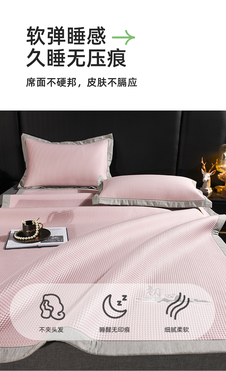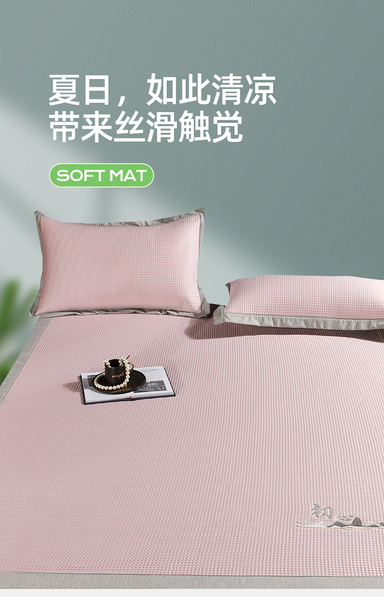 商品名称:席佬大2025新款淳朴风华夫格绣花冰感软席 初心-粉
