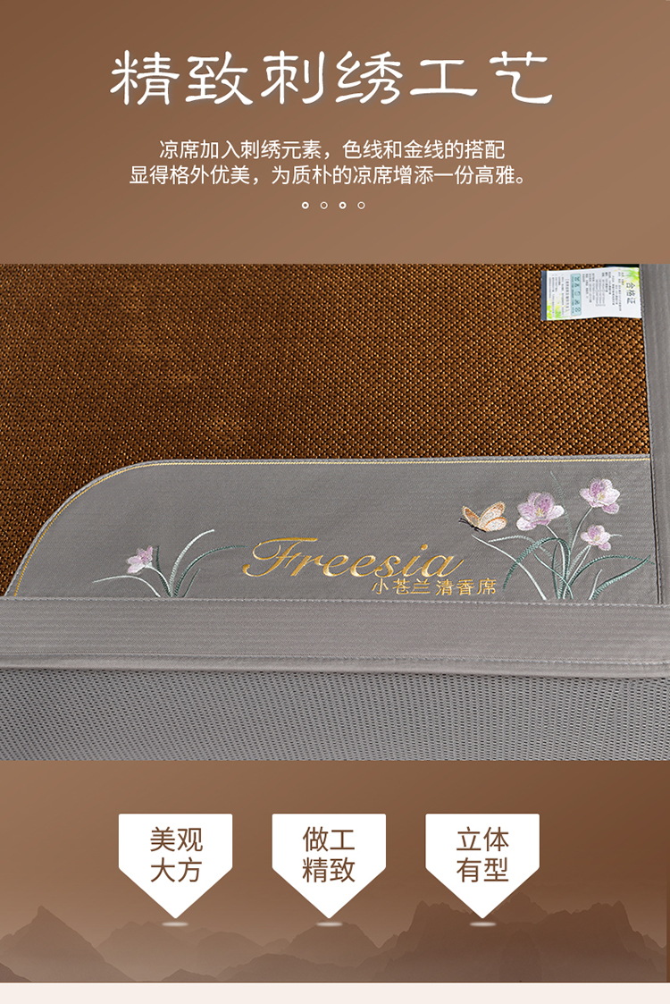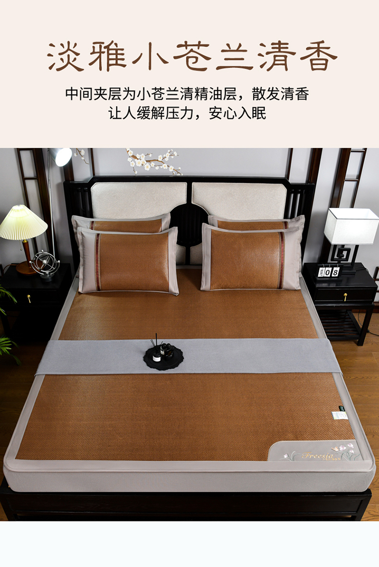 (总)小牛席业2023新款小苍兰清香冰藤席系列凉席竹席冰丝席乳胶席,黑咖,金色,绿色,浅蓝,香槟,银灰