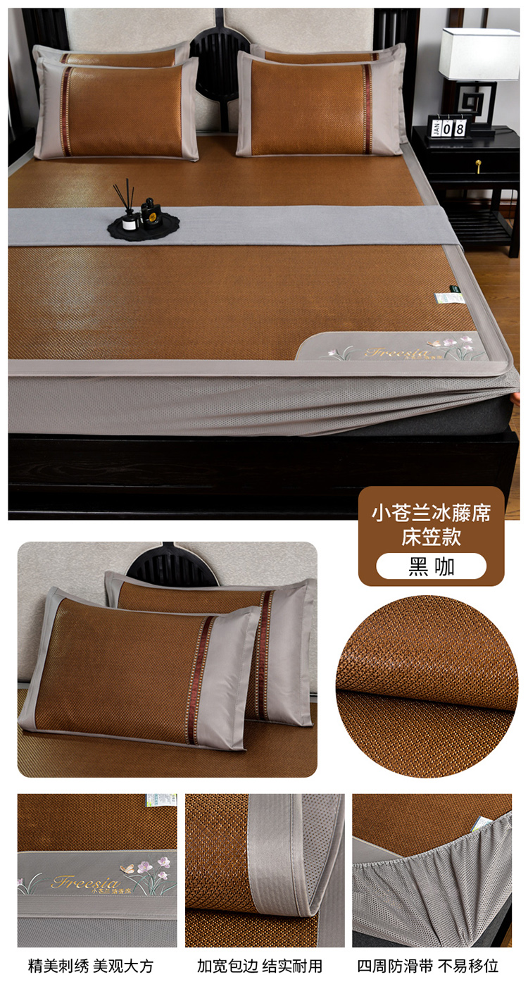 小牛席业2023新款小苍兰清香冰藤席-床笠款 黑咖