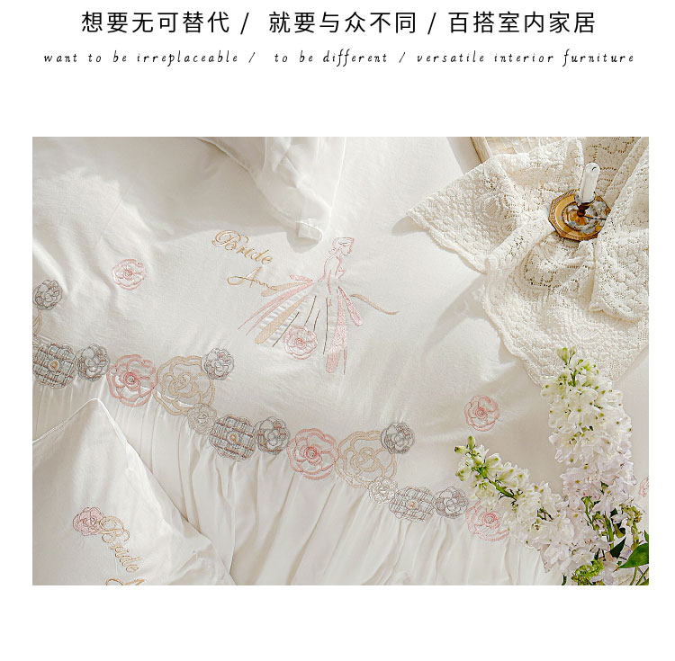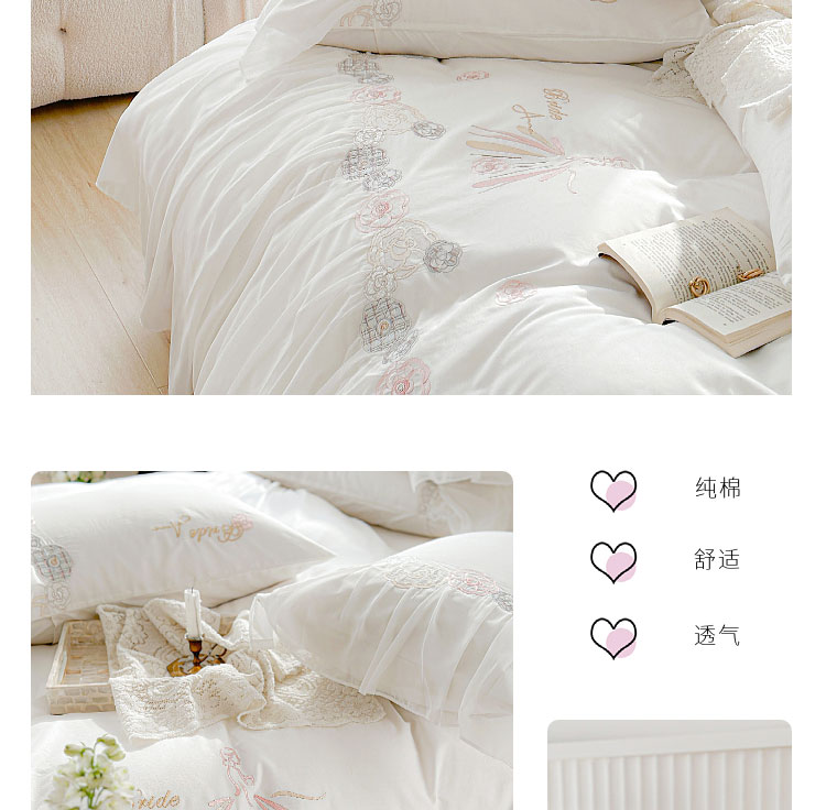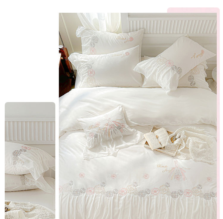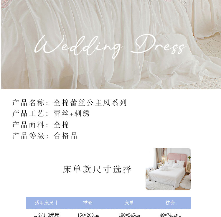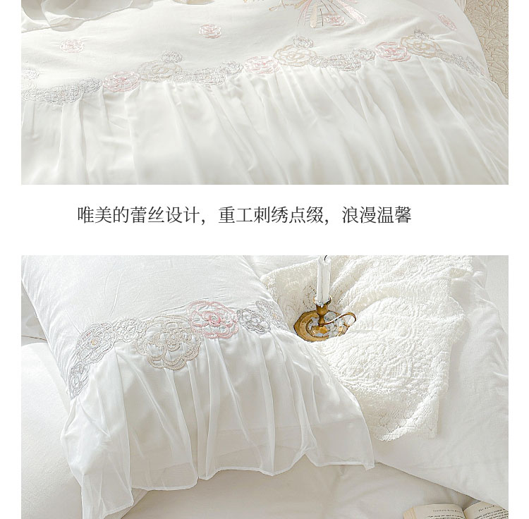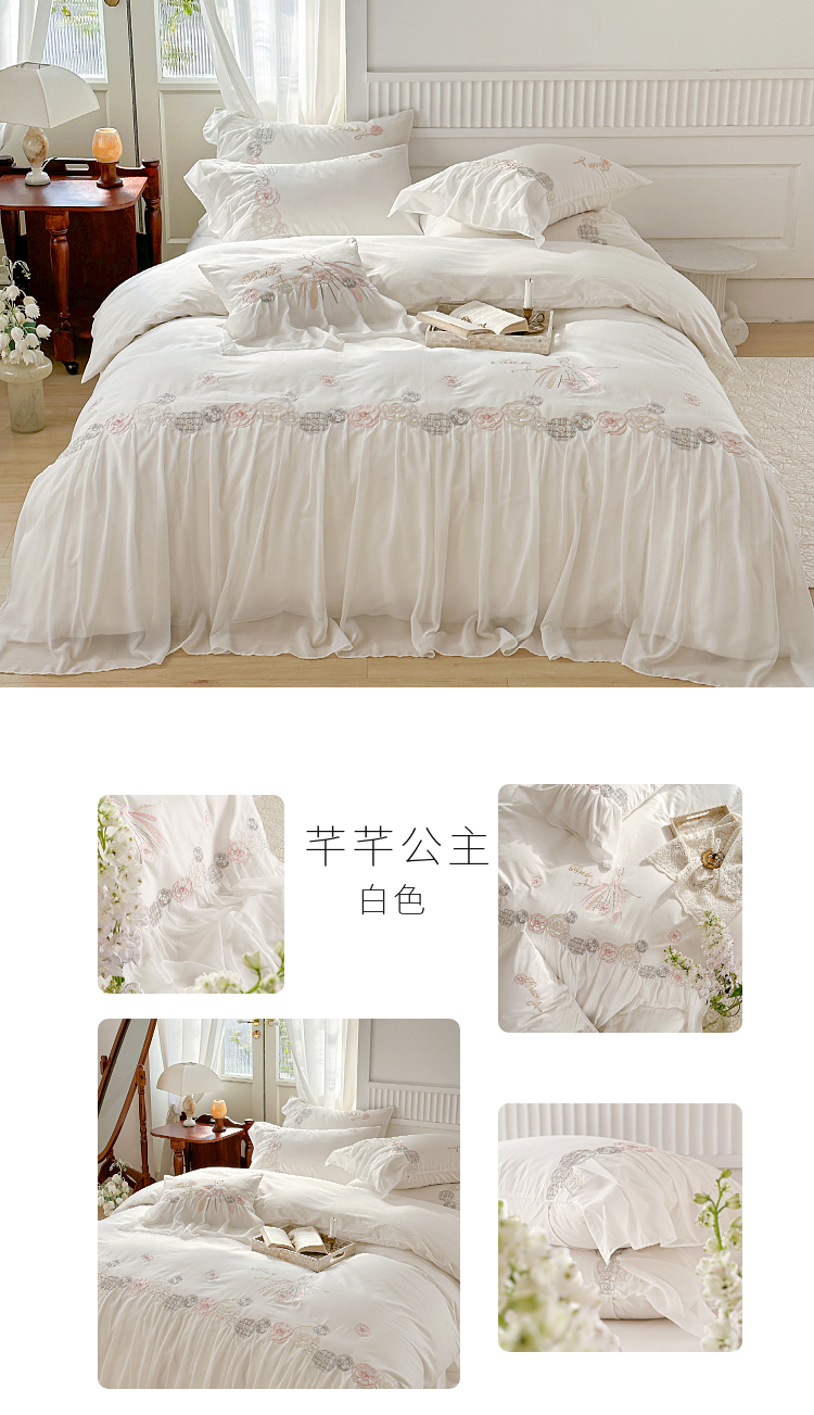 当前位置: 91家纺网 > 商品网购 > 床品套件 > 四件套 > 全棉普通四件套 > 亲亲公主 2025新款全棉蕾丝公主风四件套-芊芊公主 白色