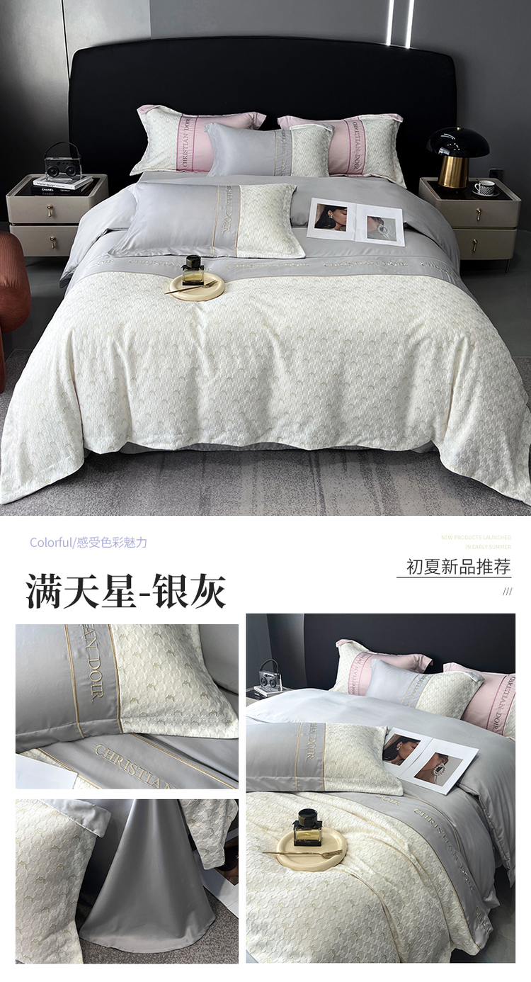 优悦 2023新款刺绣款冰丝四件套-满天星 满天星-银灰