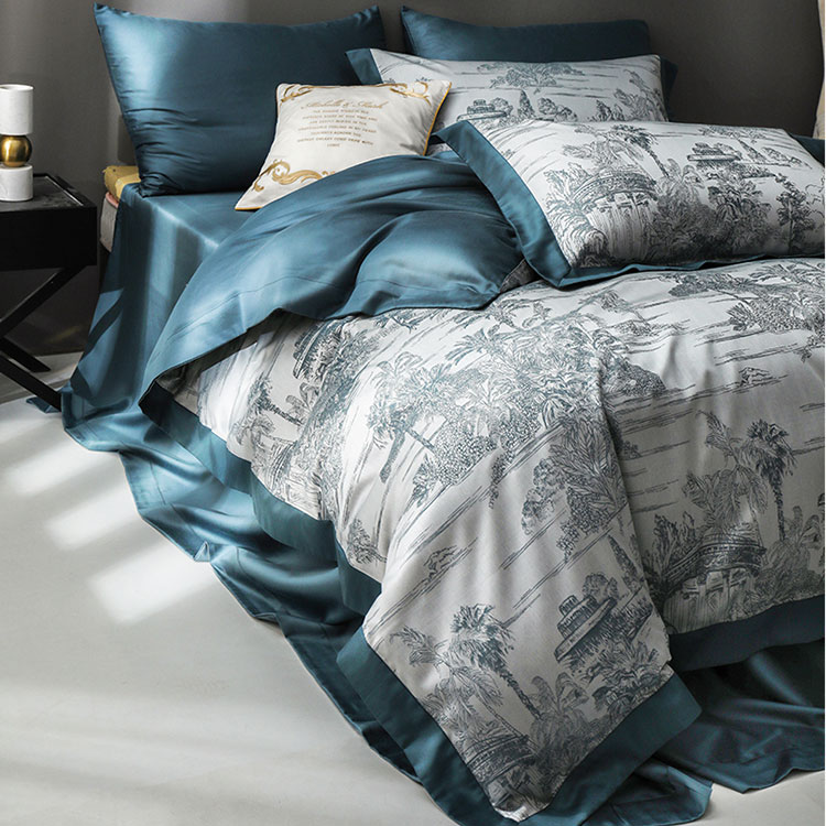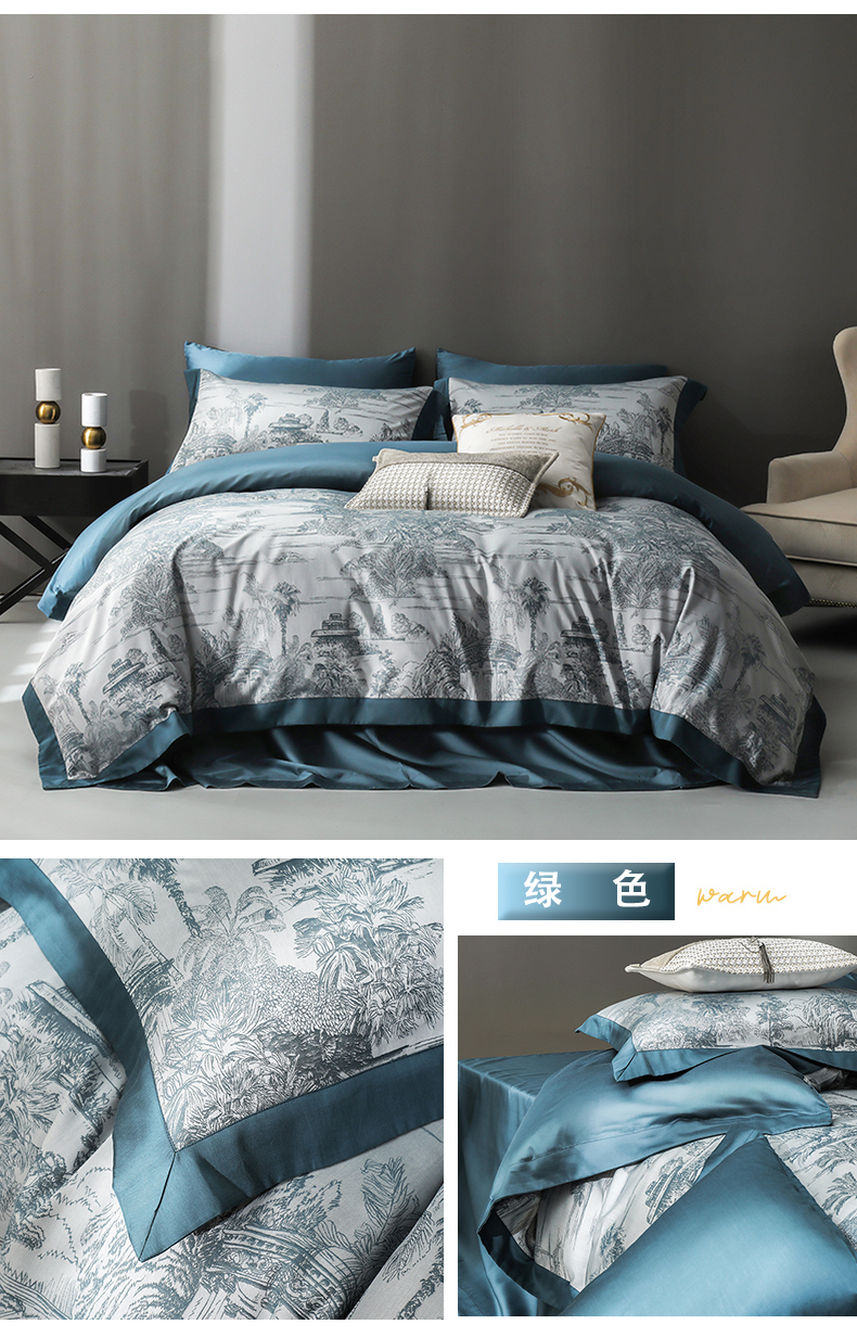 网客家纺 2024新款天丝色织大提花四件套 绿色