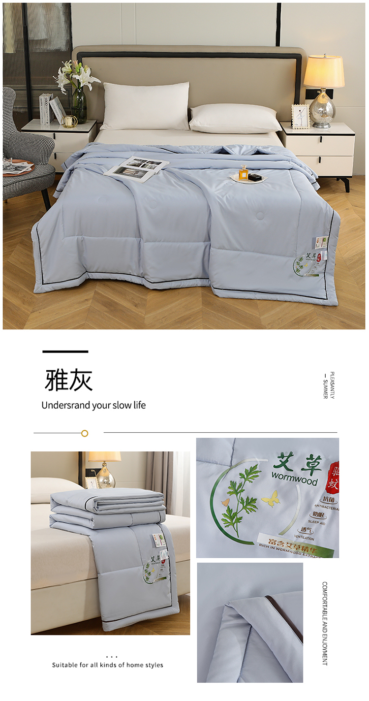 好欣怡 2026新款水洗天丝凉感艾草驱蚊夏被工艺款直播 雅灰